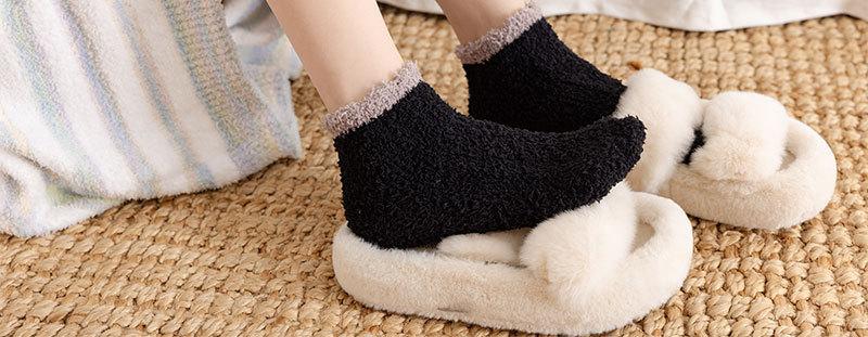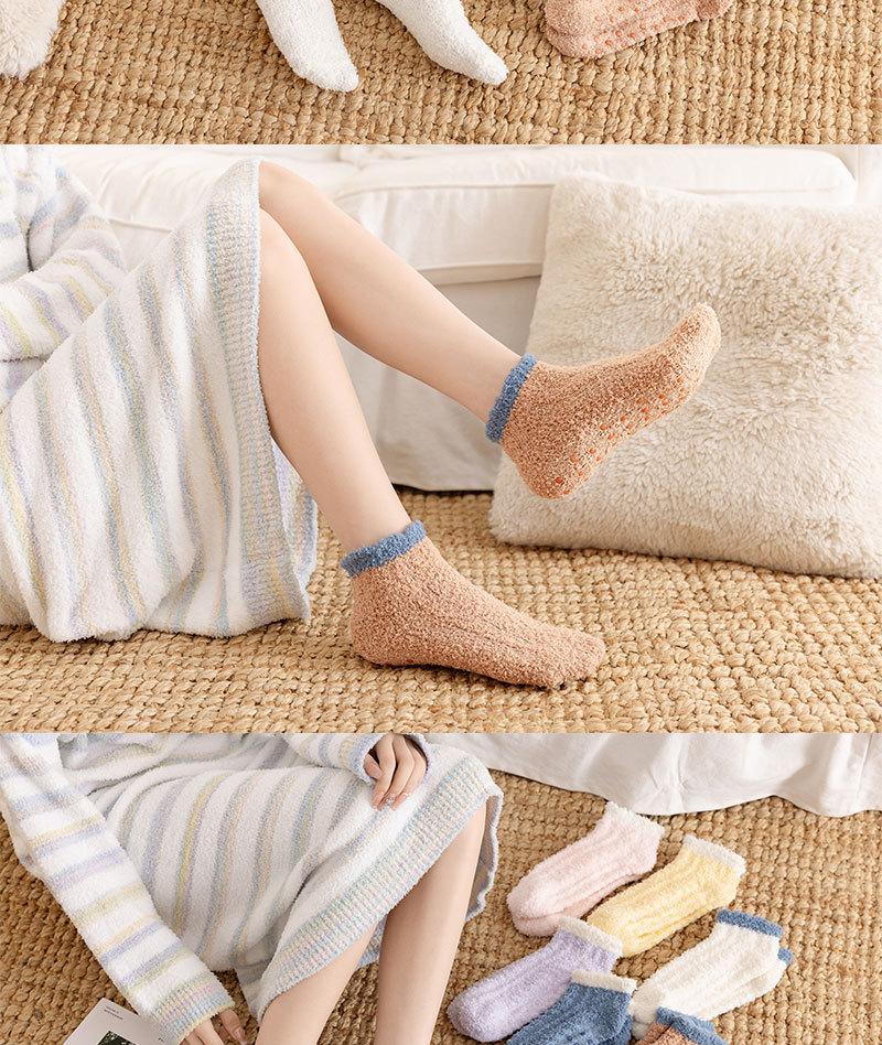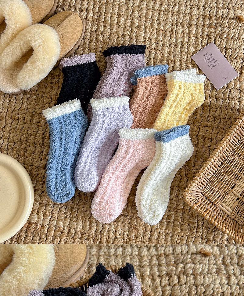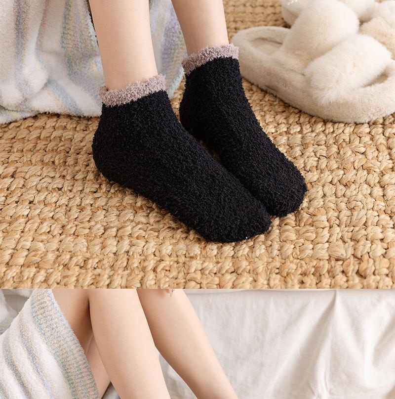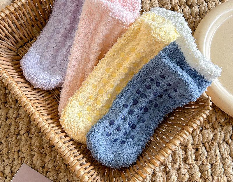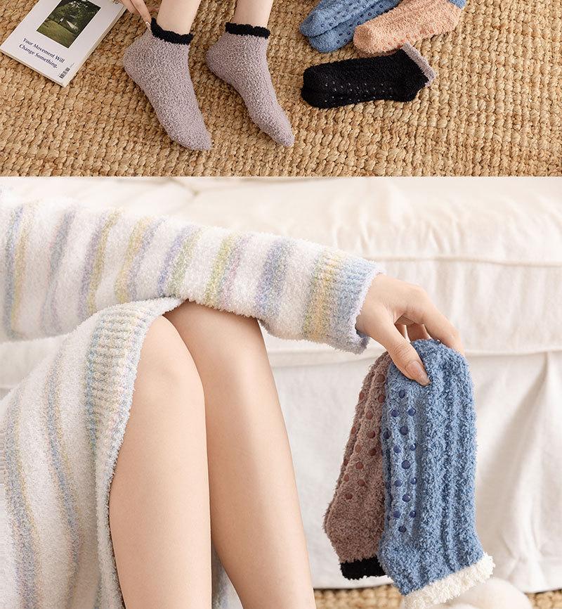 Calcetines de lana coral gruesos y cálidos para mujer, para otoño e invierno, para dormir en casa, informales, antideslizantes, de comercio exterior