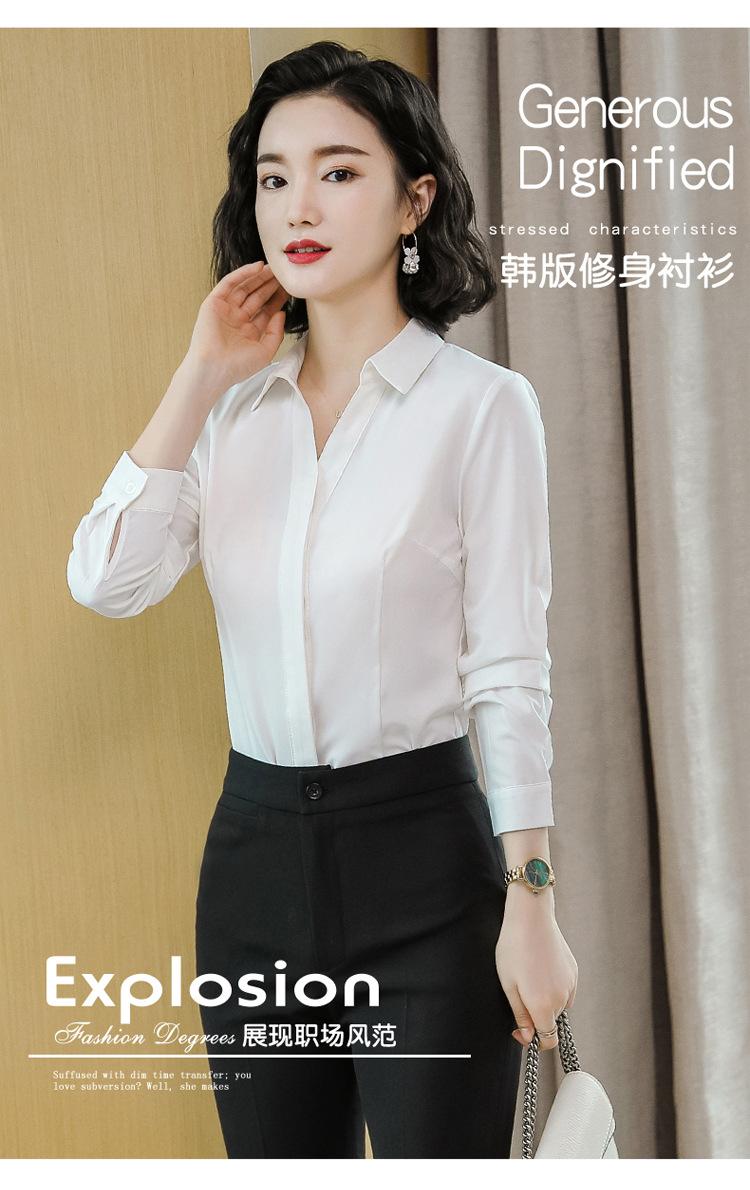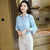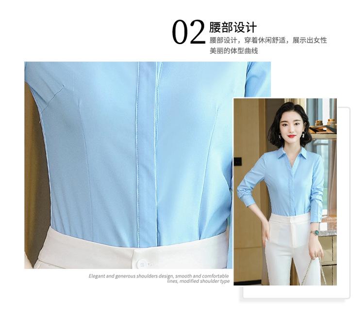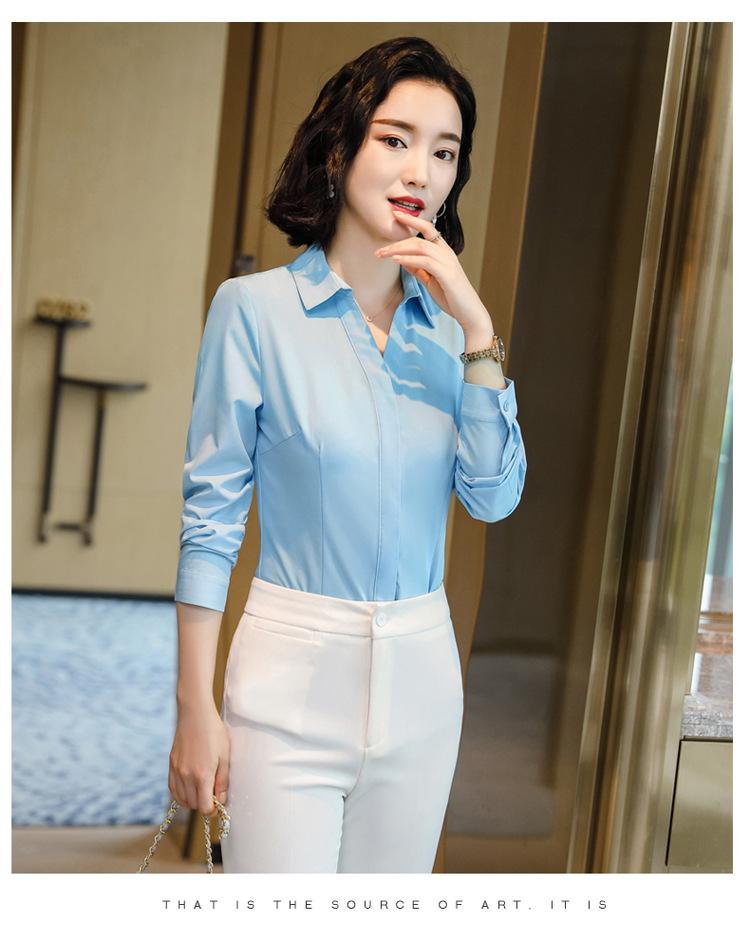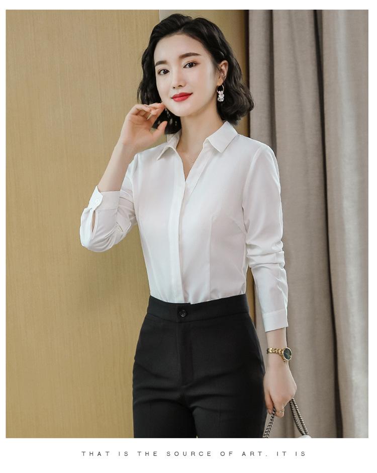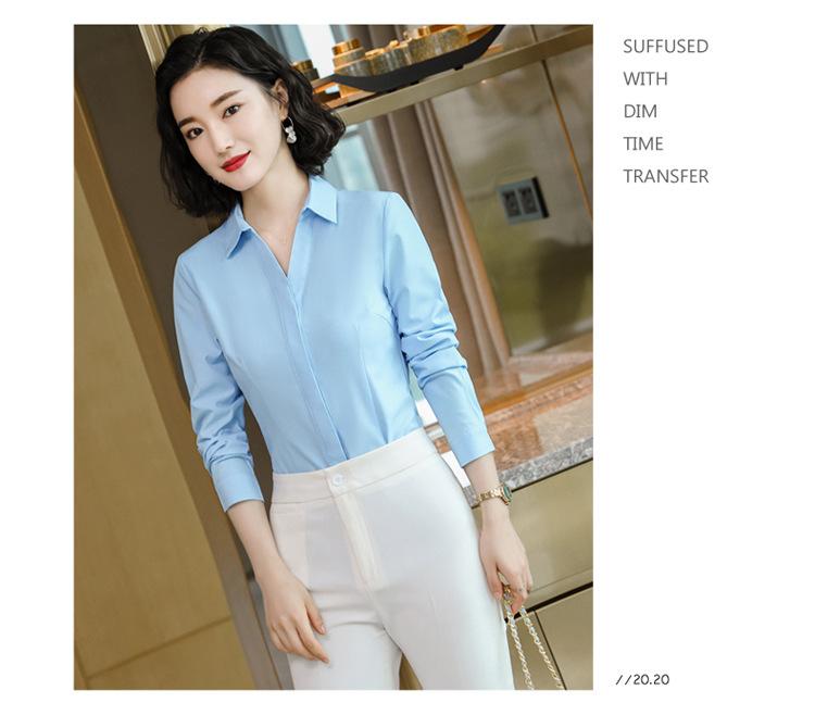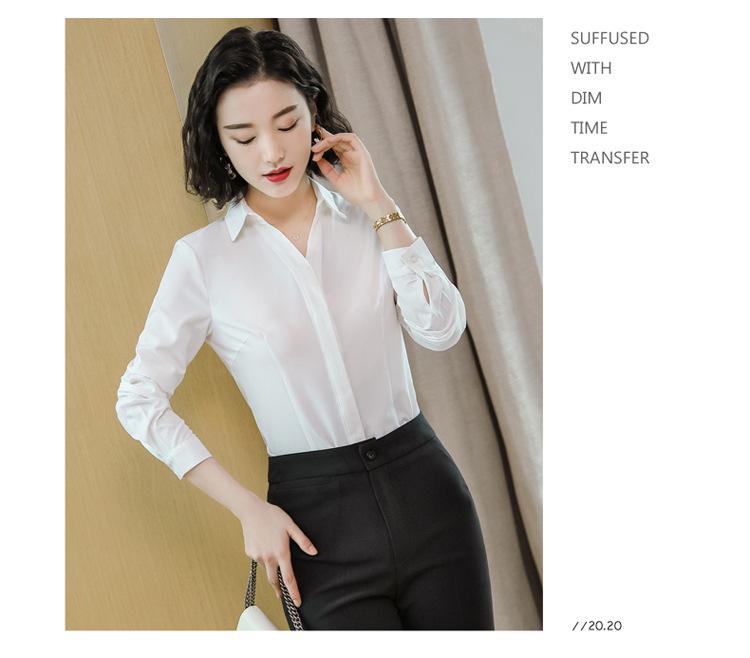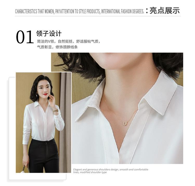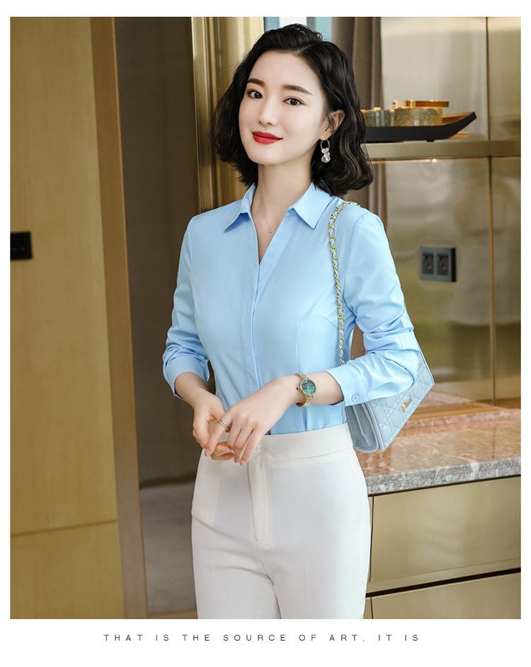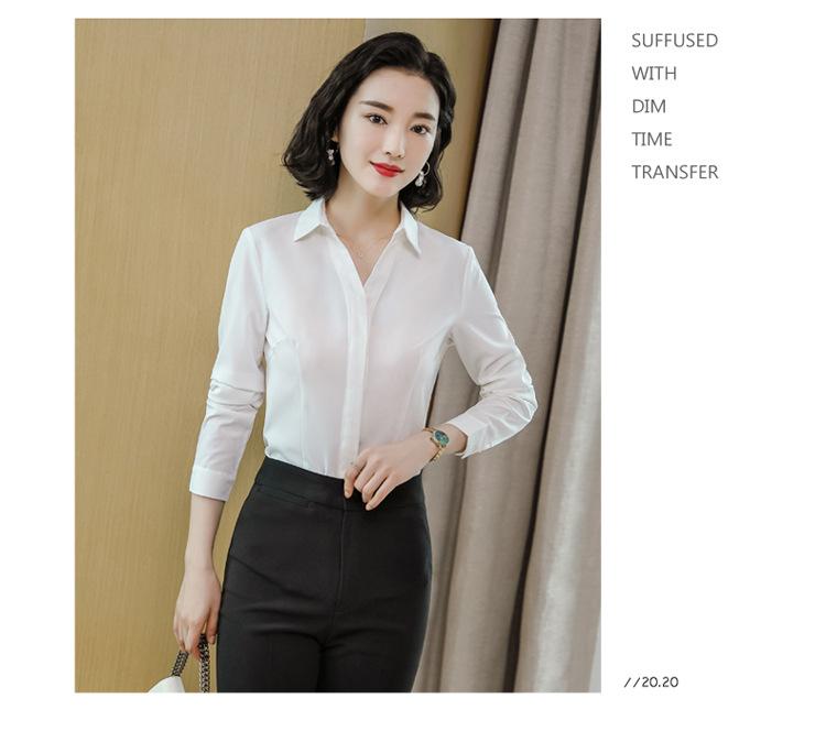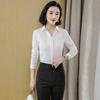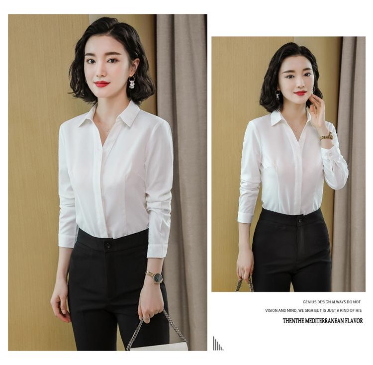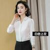 Camisa Blanca Profesional para Mujer Primavera y Otoño Manga Larga Temperamento Drapeado Moda Slim-fit Cuello en V Ropa de Trabajo Otoño