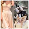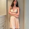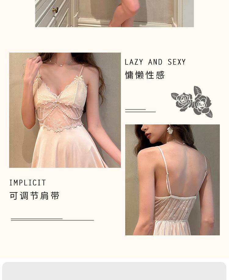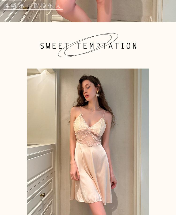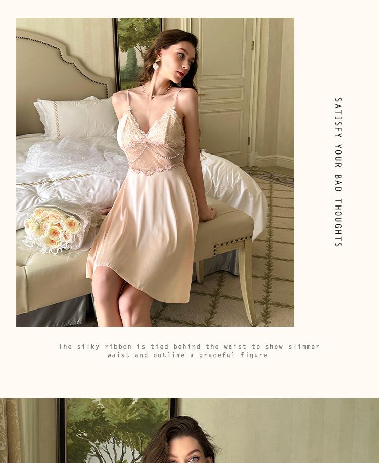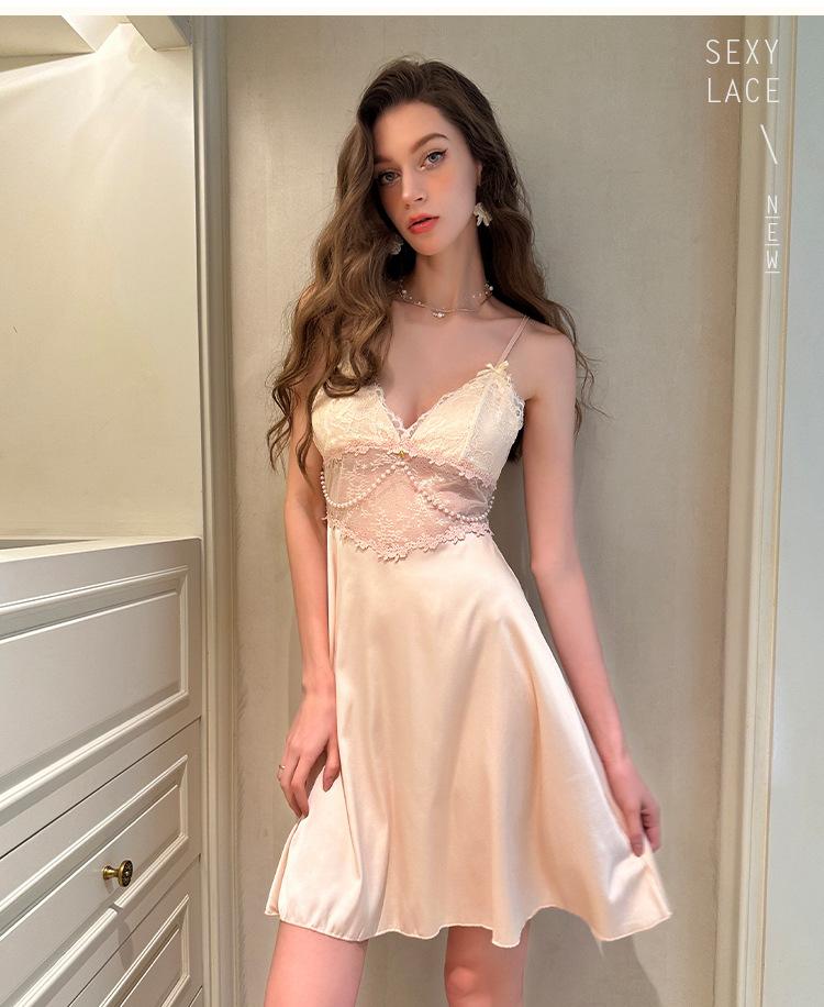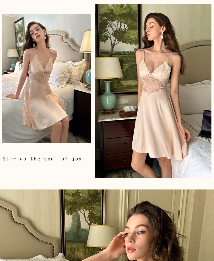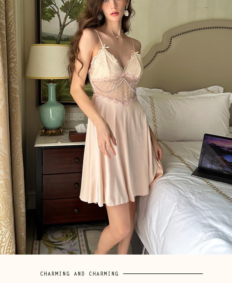 Camisón de Lencería Sexy con Encaje Transparente y Escote en V Profundo con Almohadillas en el Pecho y Tirantes para Mujer