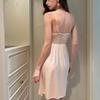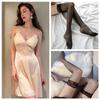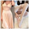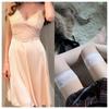 Champagne color suspender skirt, Champagne suspender skirt + white stockings, Champagne suspender skirt + whit...