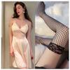 Champagne suspender skirt + white stockings + white fishnet stockings