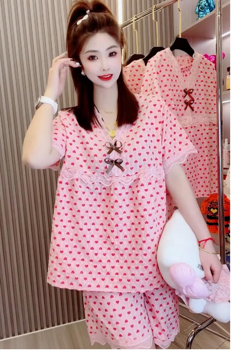 Pijama explosivo para mujer, con escote en V y encaje, estilo occidental, dulce, bonito, holgado, informal, para el hogar.