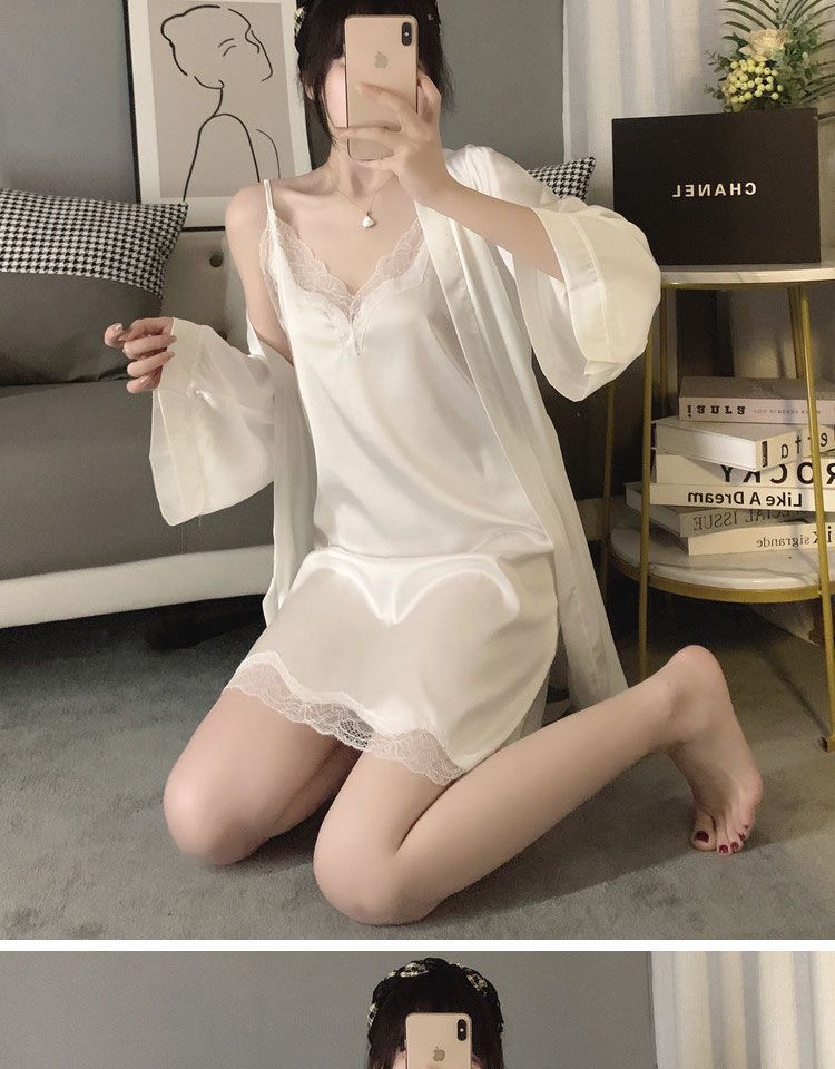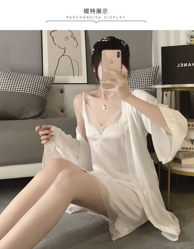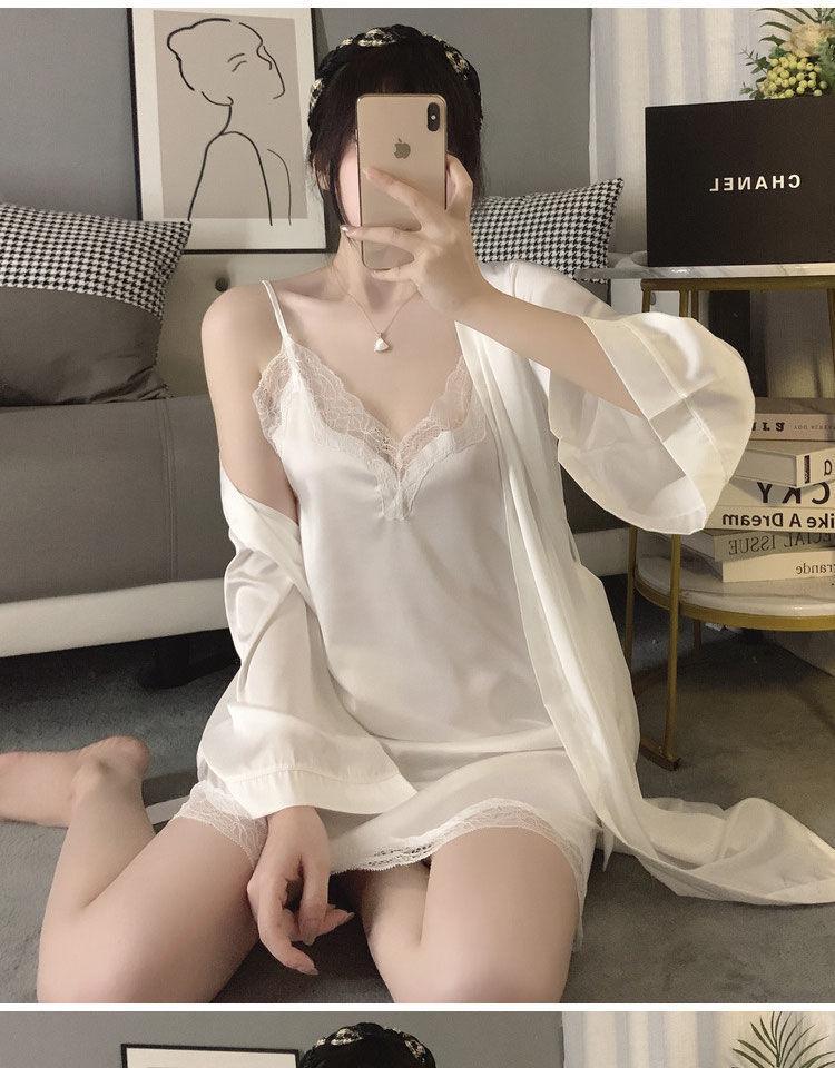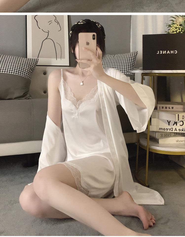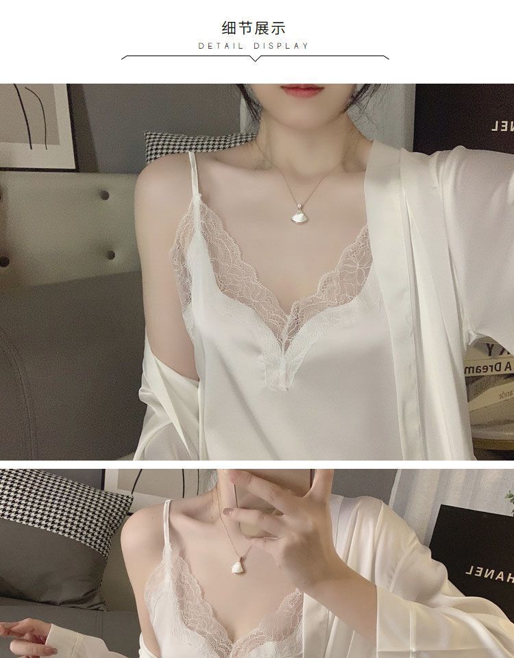 Nuevo pijama de seda helada de Simon Lina para mujer, bonito y veraniego camisón de encaje con tirantes, conjunto de dos piezas para el hogar de mujer.