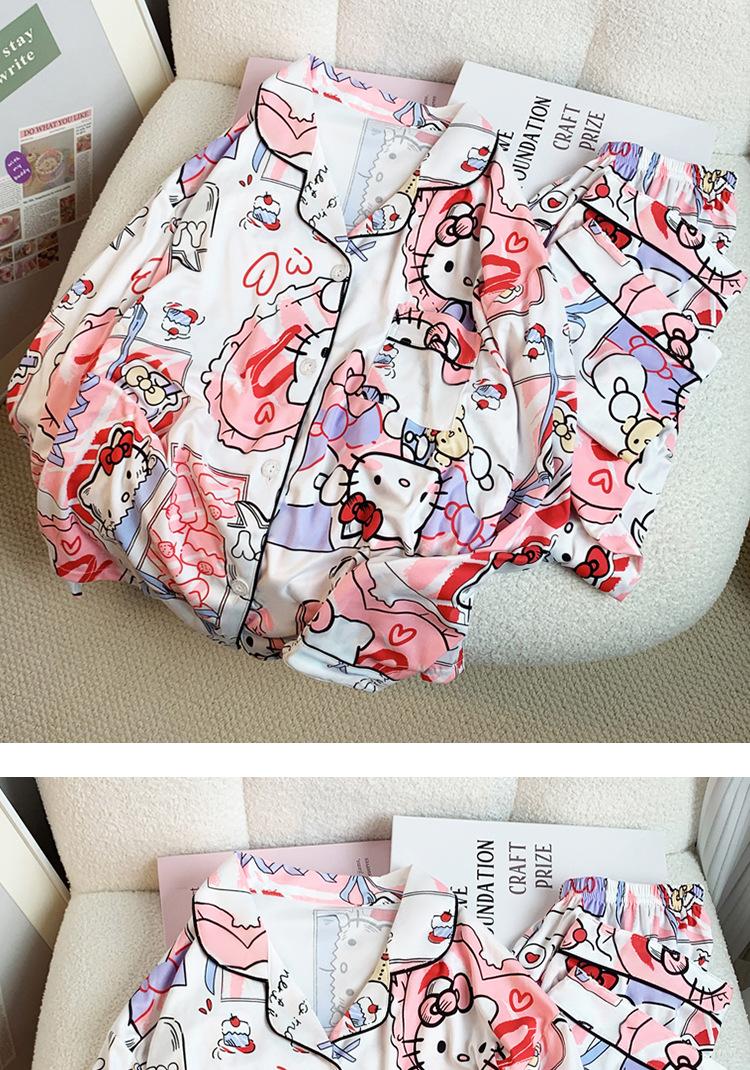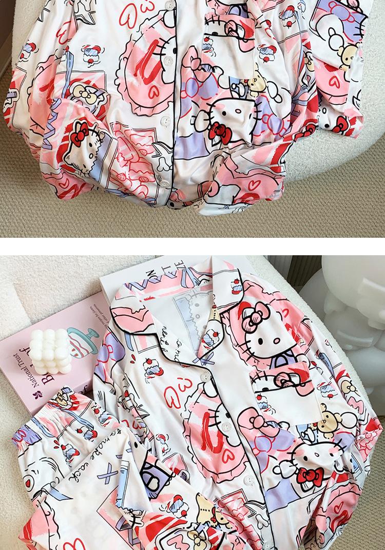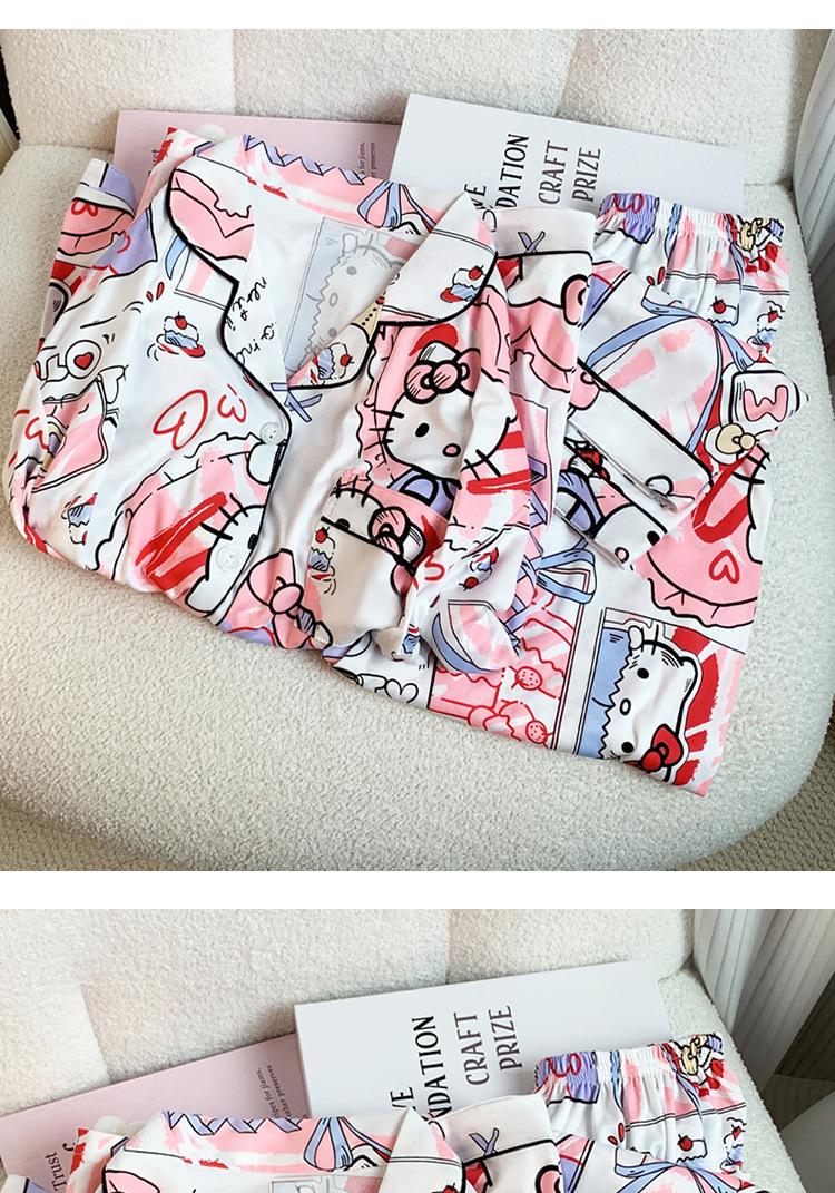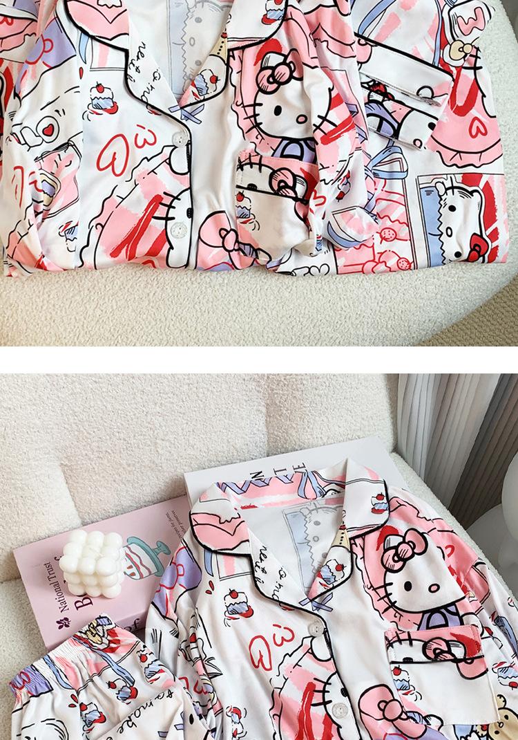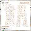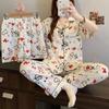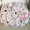 Pijama de Solapa de Otoño con Diseño de Graffiti de Dibujos Animados de Estilo Interesante para Mujer, Traje de Pantalón de Manga Larga, Ropa para el Hogar, Foto Real al por Mayor
