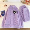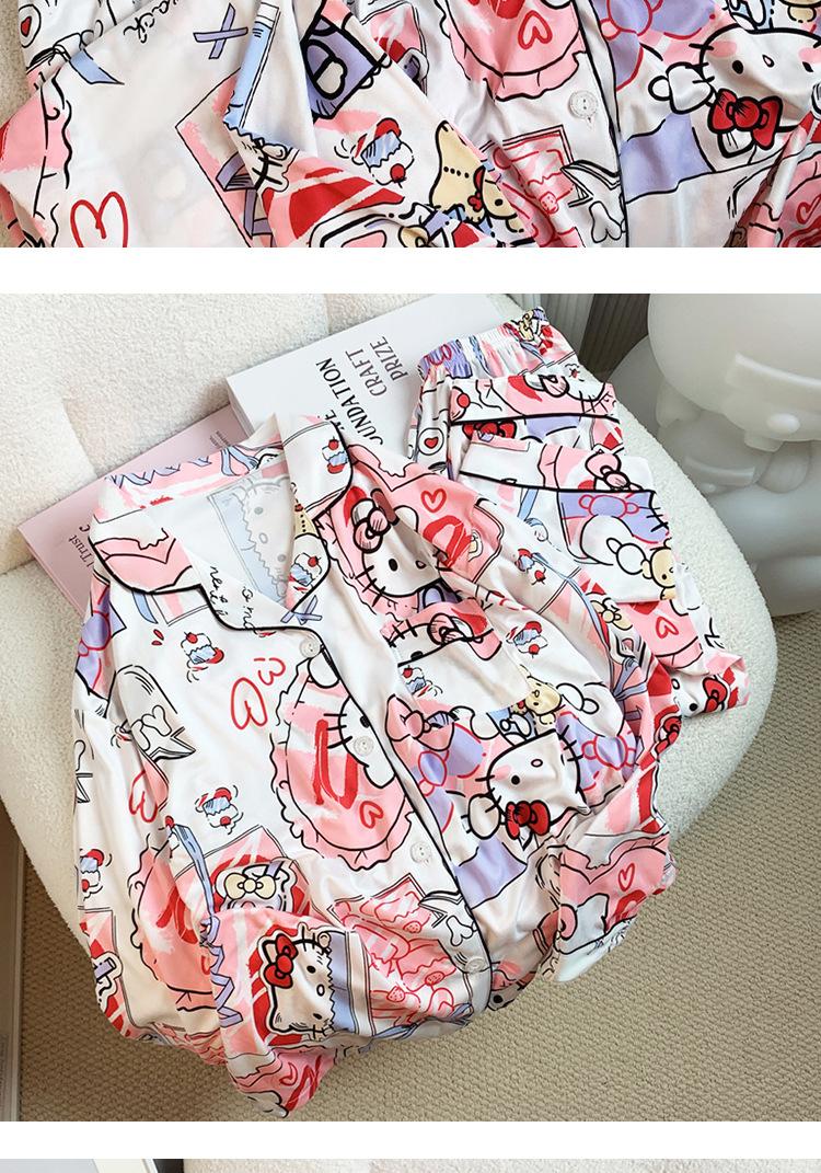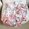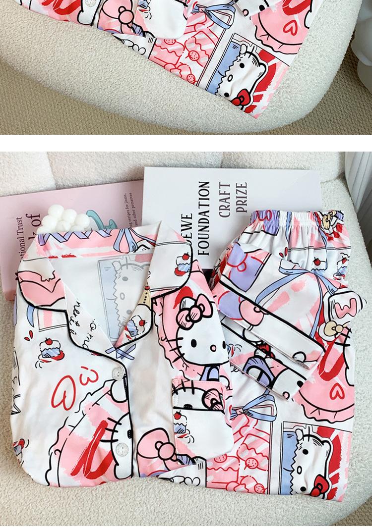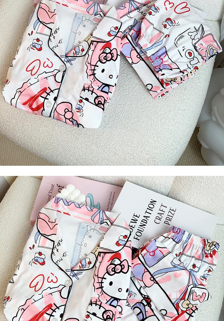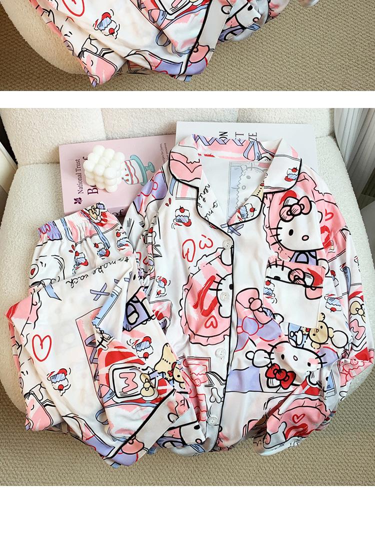 Pijama de Solapa de Otoño con Diseño de Graffiti de Dibujos Animados de Estilo Interesante para Mujer, Traje de Pantalón de Manga Larga, Ropa para el Hogar, Foto Real al por Mayor