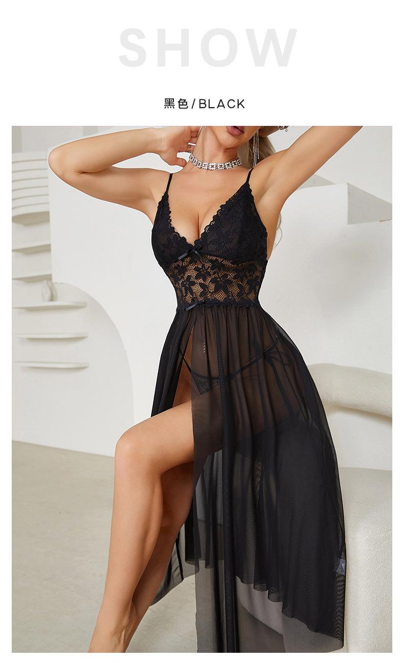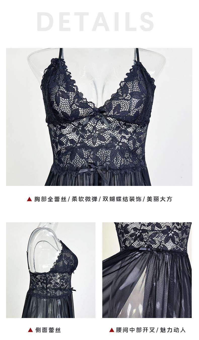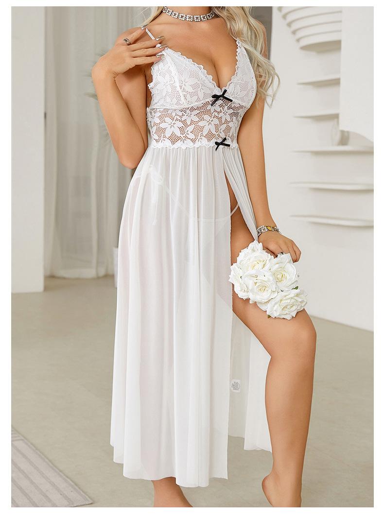 Comercio Exterior Tallas Grandes Lencería Sexy Malla Encaje Pijamas Falda Dividida Ropa de Casa Camisón Largo 681