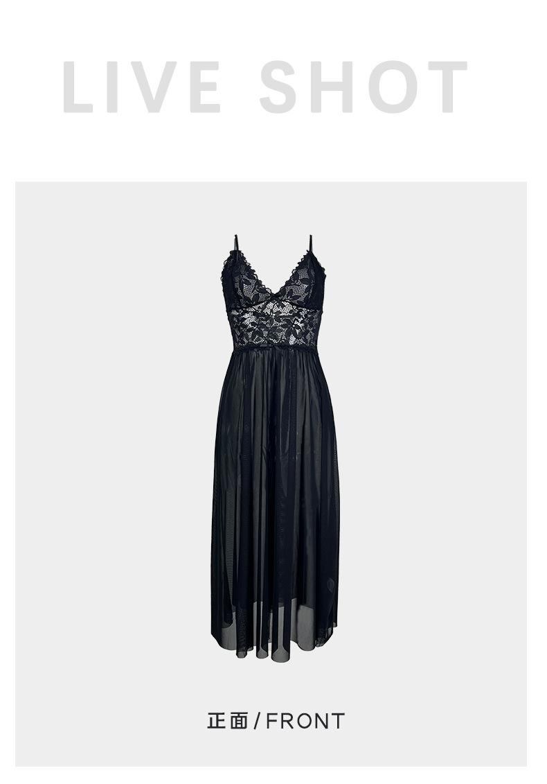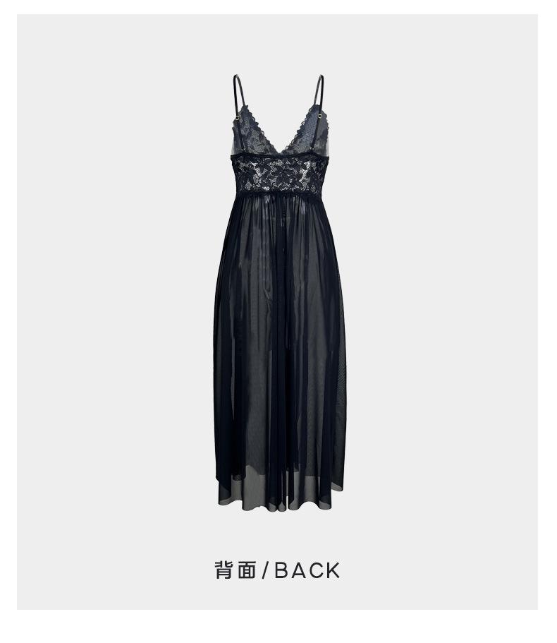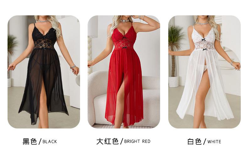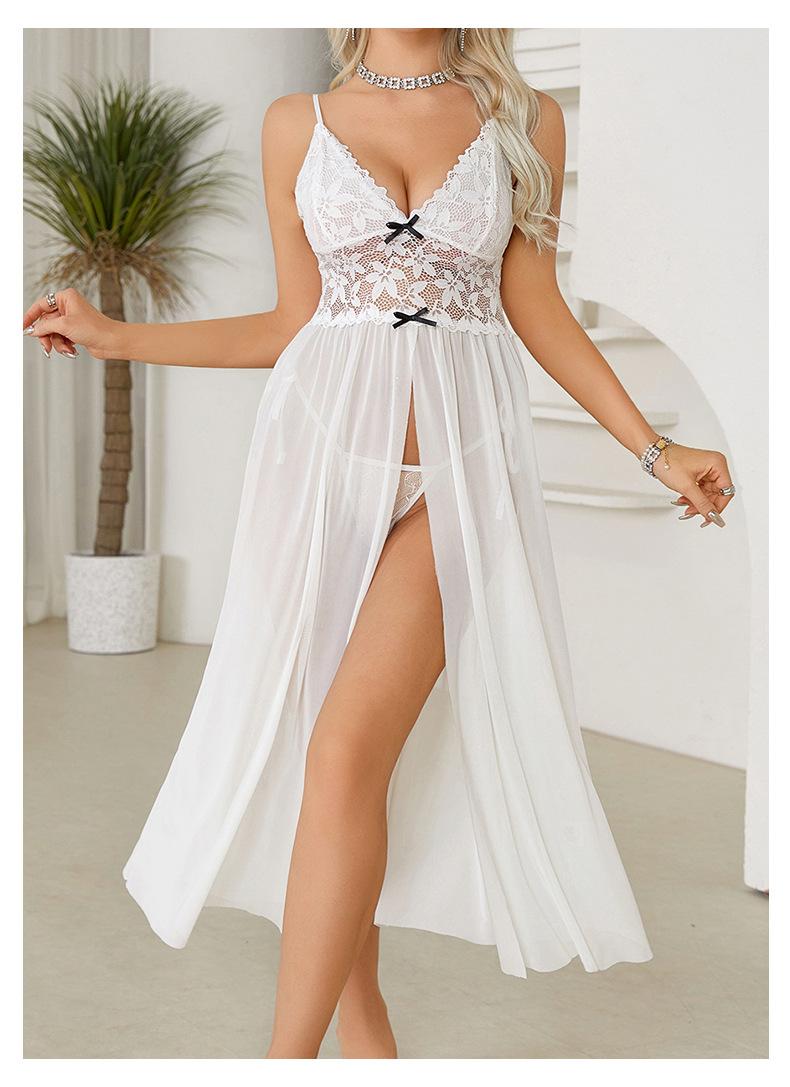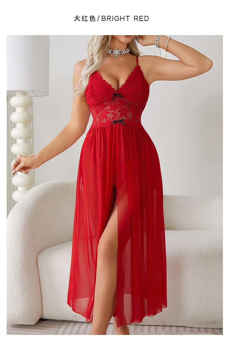 Comercio Exterior Tallas Grandes Lencería Sexy Malla Encaje Pijamas Falda Dividida Ropa de Casa Camisón Largo 681