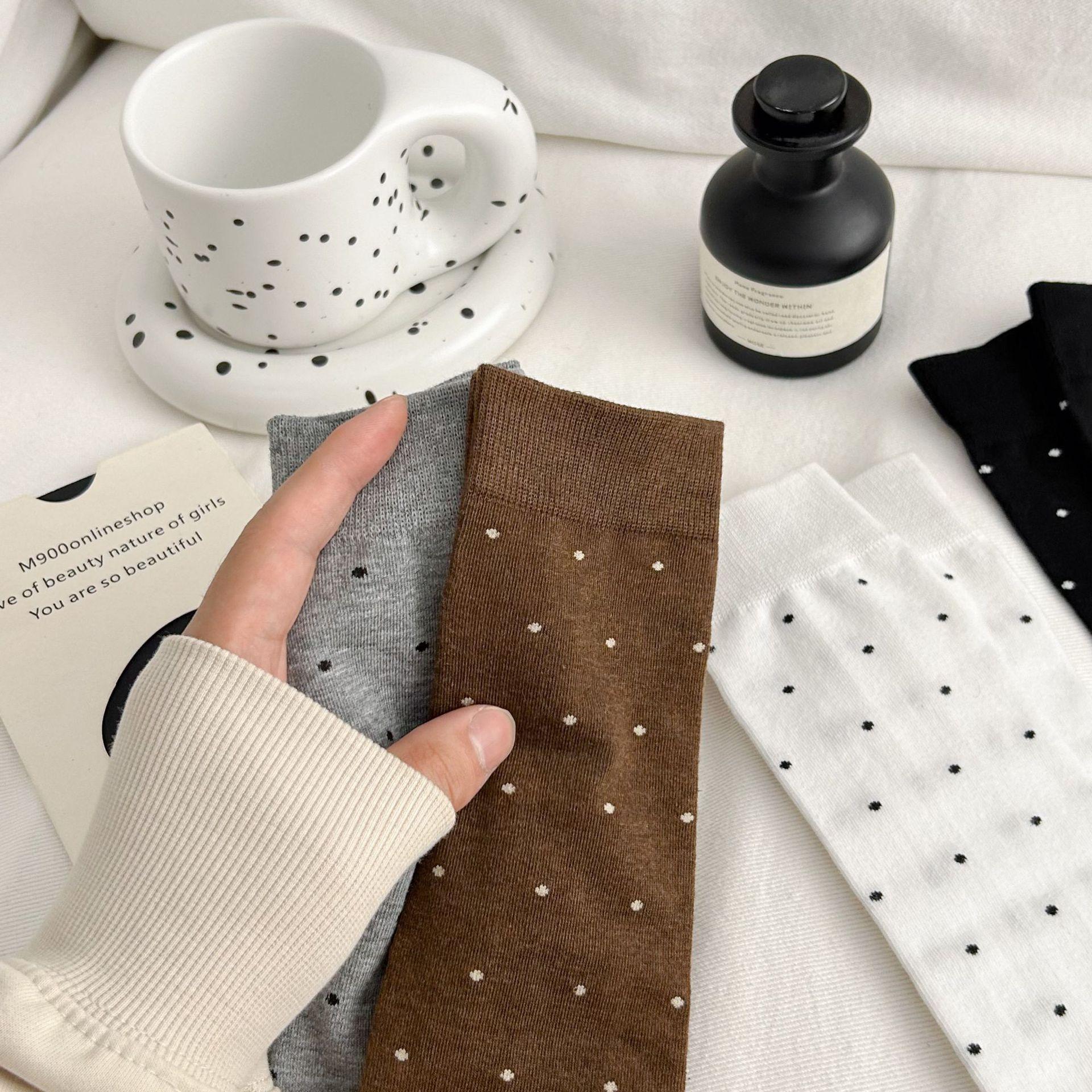 Calcetines de pantorrilla con puntos ondulados para mujer, de otoño e invierno, absorbentes del sudor, desodorante antideslizante, que no se caen con los calcetines de pila de niñas estudiantes