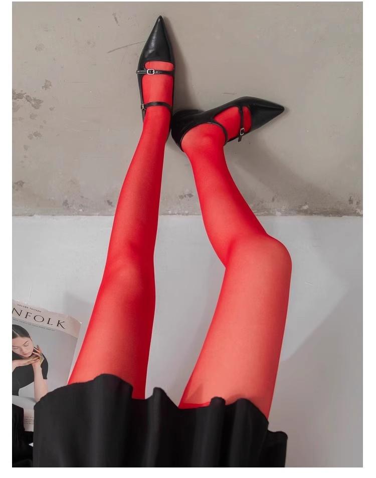 2024 nuevos calcetines de malla roja mate para mujer, para Navidad, bodas, primavera y verano, una generación de cabello