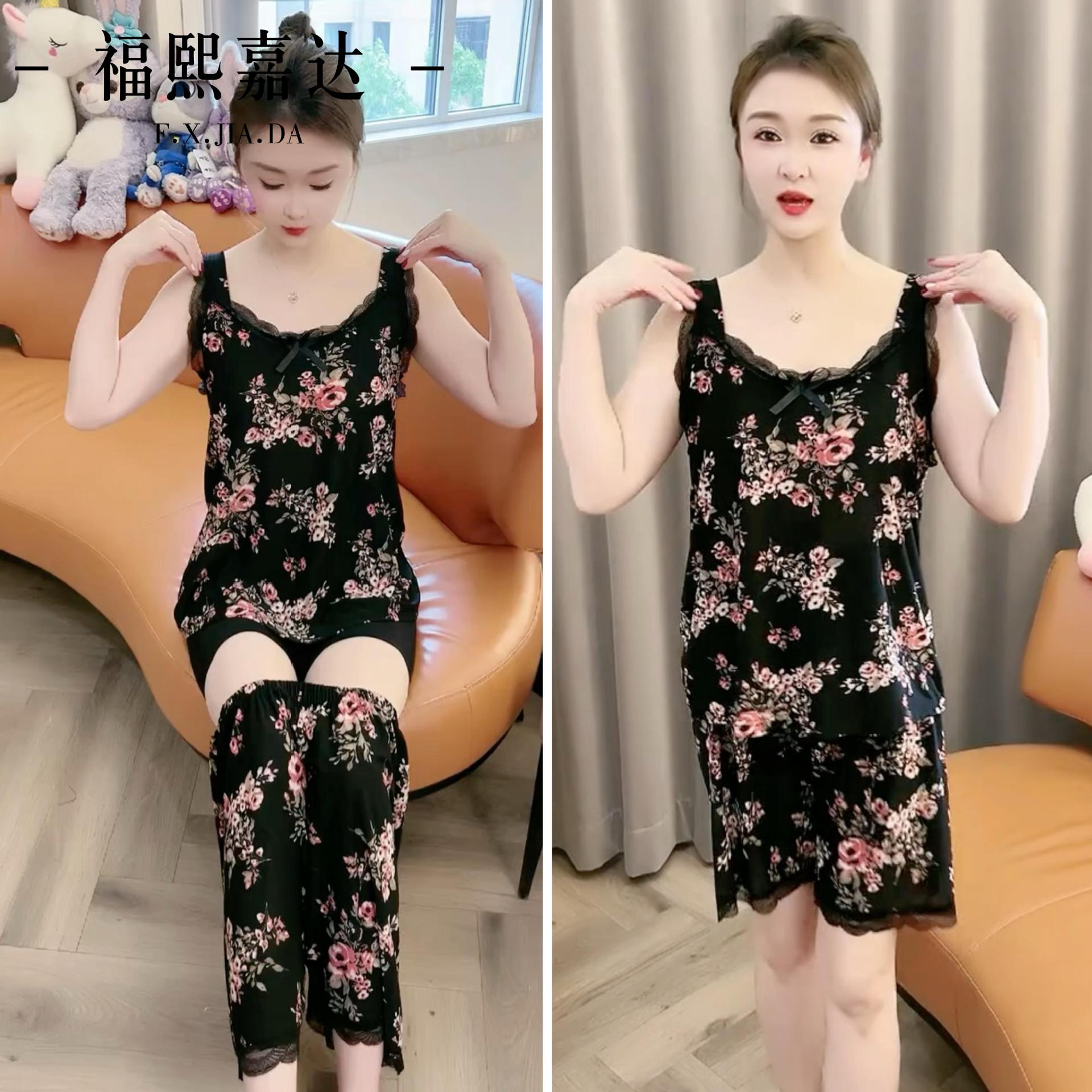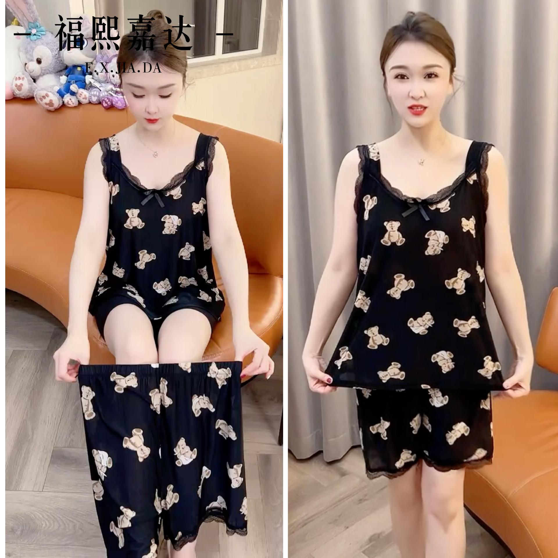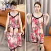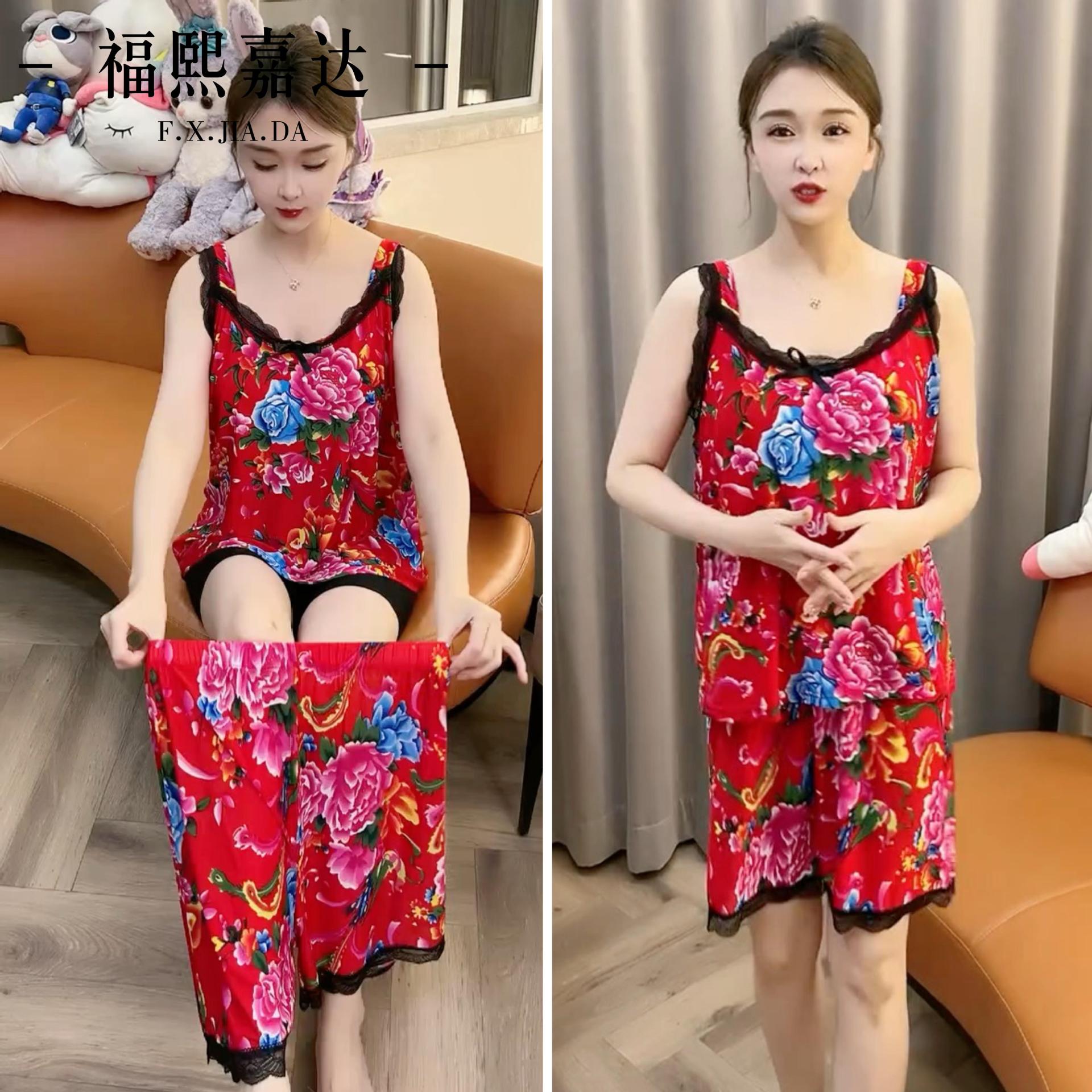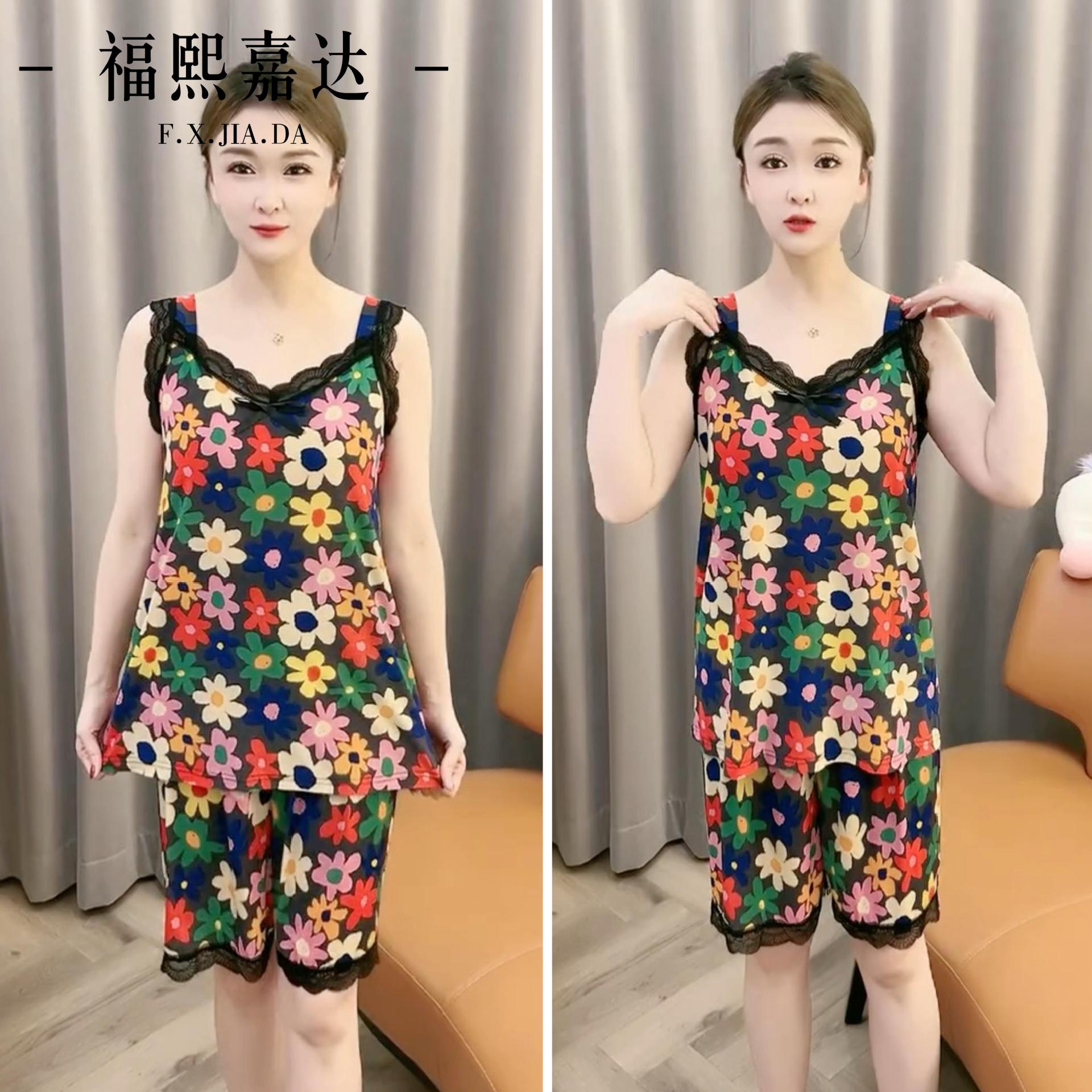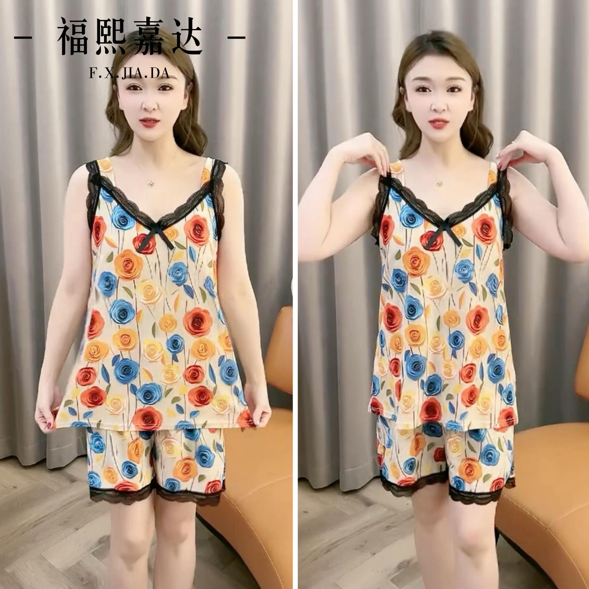 Pijamas de verano para mujer, novedad, de seda de hielo, pantalones cortos finos con tirantes, traje de moda para jóvenes, ropa de casa de talla grande delgada