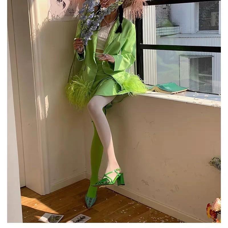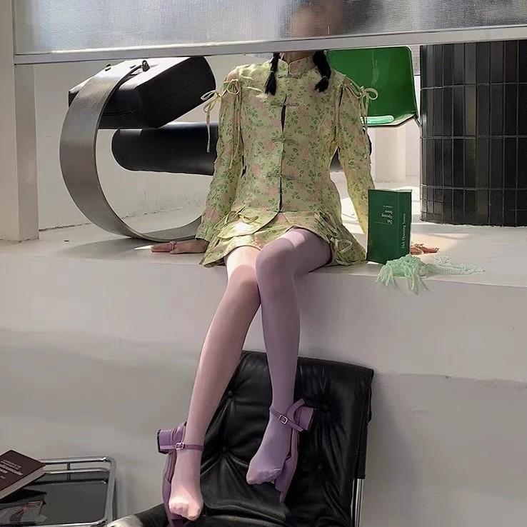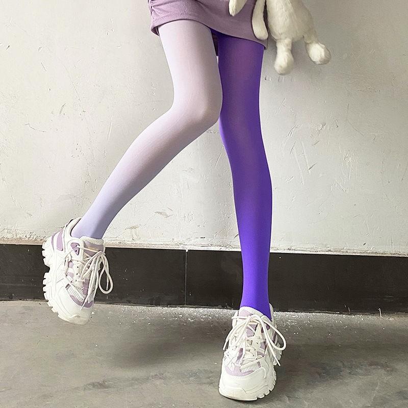 Calcetines básicos de terciopelo para primavera y otoño para mujer, medias empalmadas izquierda y derecha, pantimedias de estudiante bicolor AB, calcetines de pato mandarín para mujer