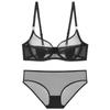 Lencería sexy transfronteriza de verano súper delgada de malla transparente con bordado lencería para busto grande hace que se vea más pequeño sujetador anticacique y set de bragas