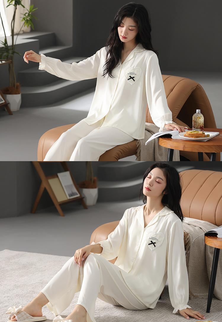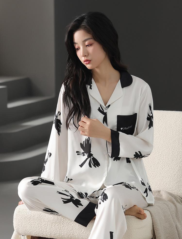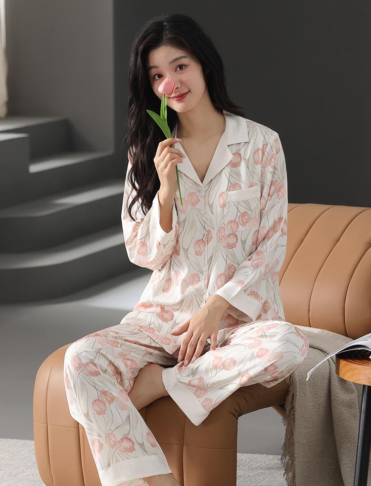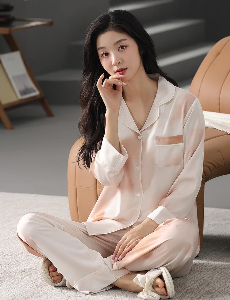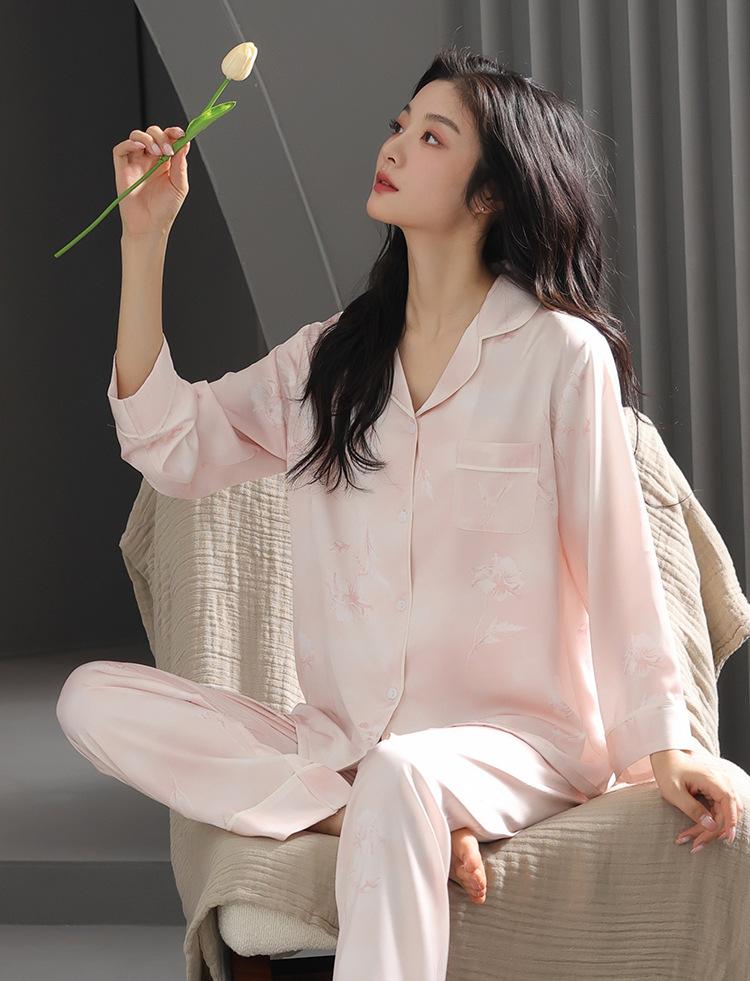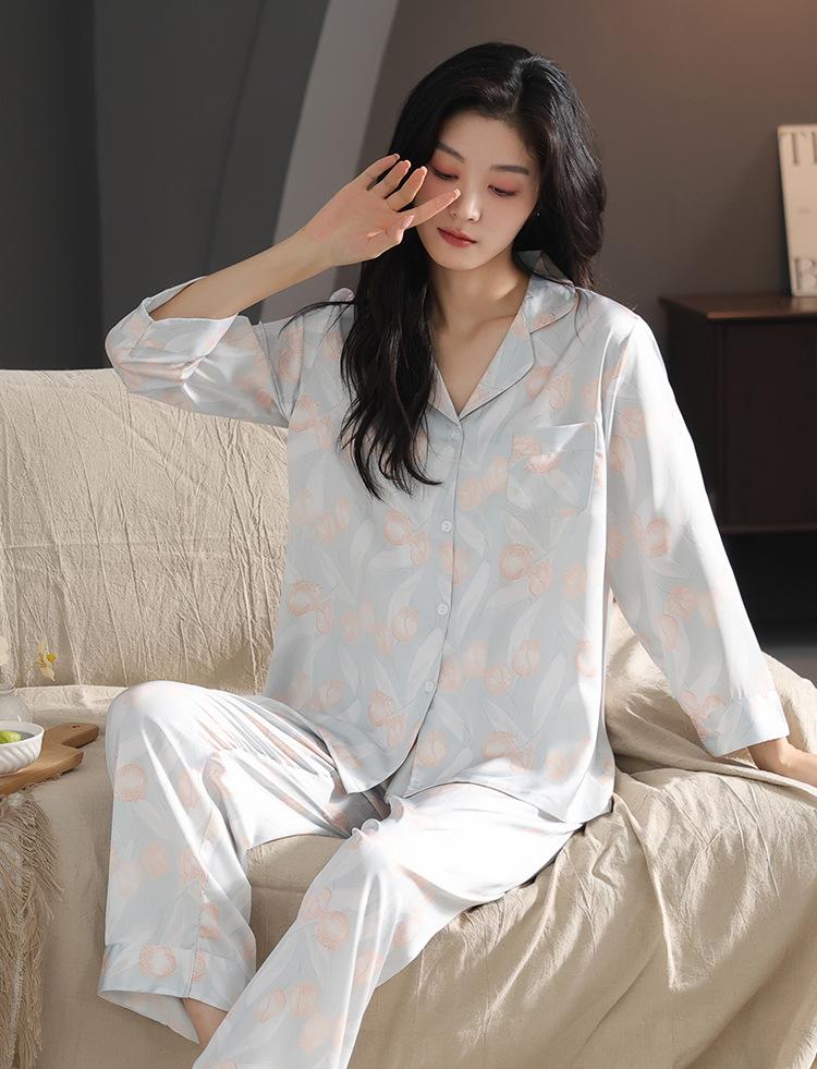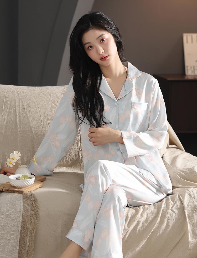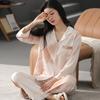 Pijamas de mujer primavera/verano seda hielo manga larga fina seda artificial ropa de hogar de alta calidad traje de moda coreana