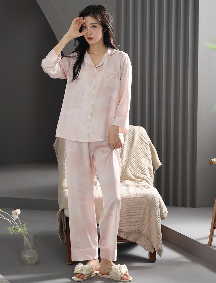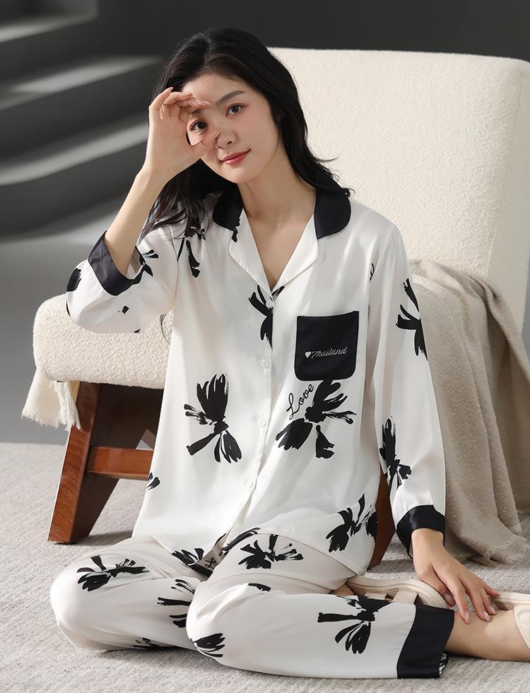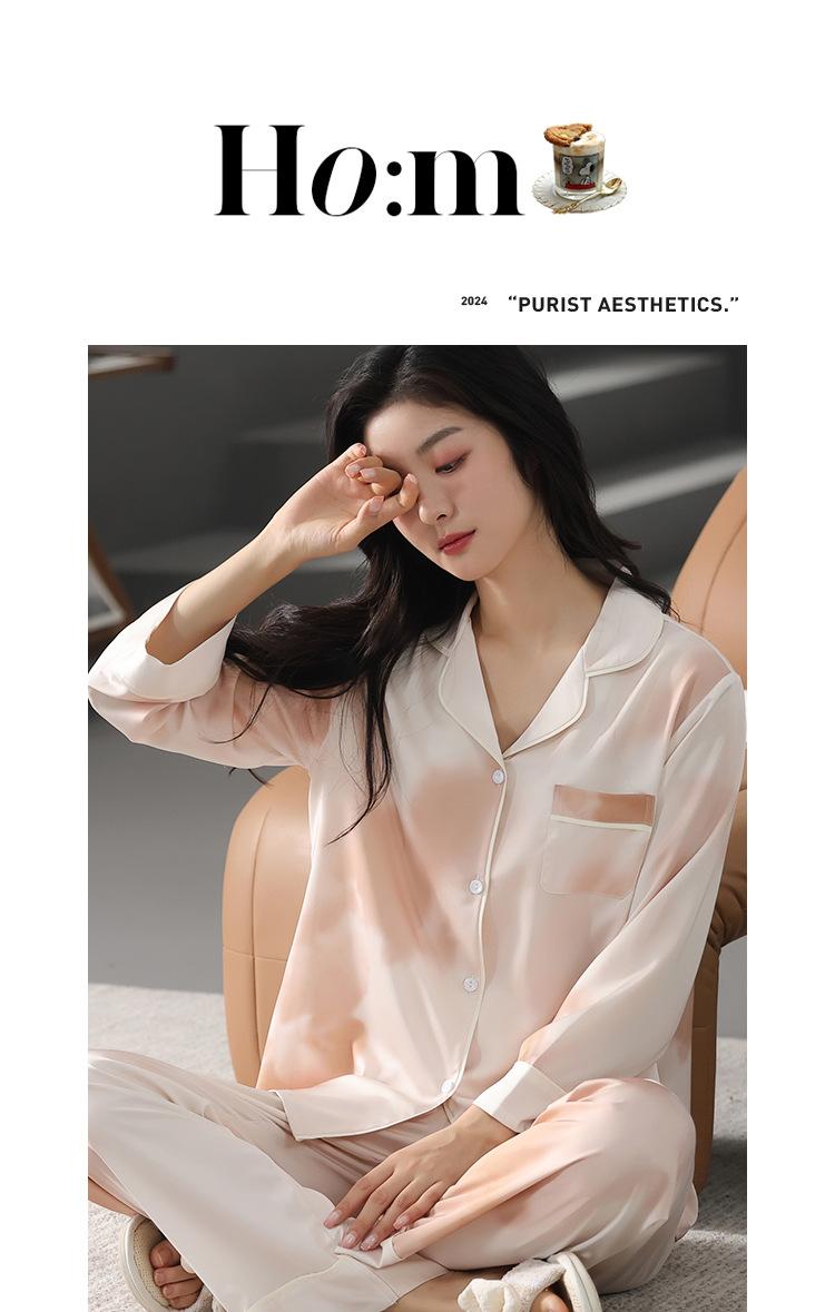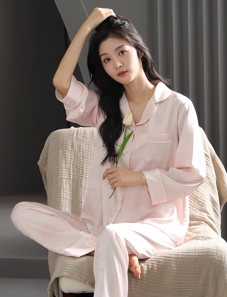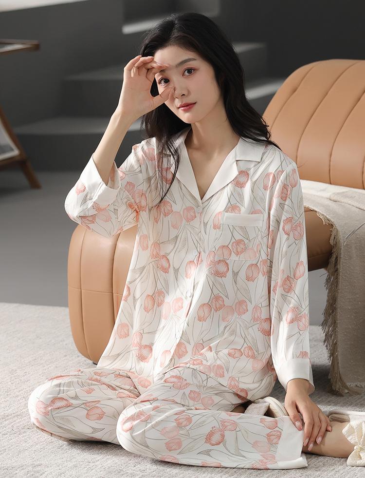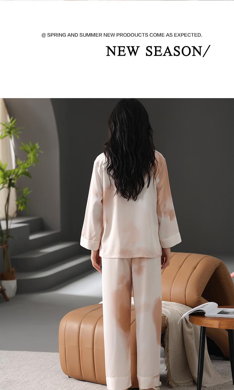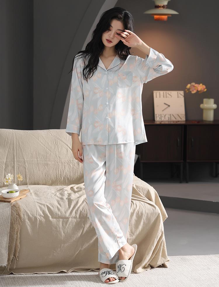 Pijamas de mujer primavera/verano seda hielo manga larga fina seda artificial ropa de hogar de alta calidad traje de moda coreana