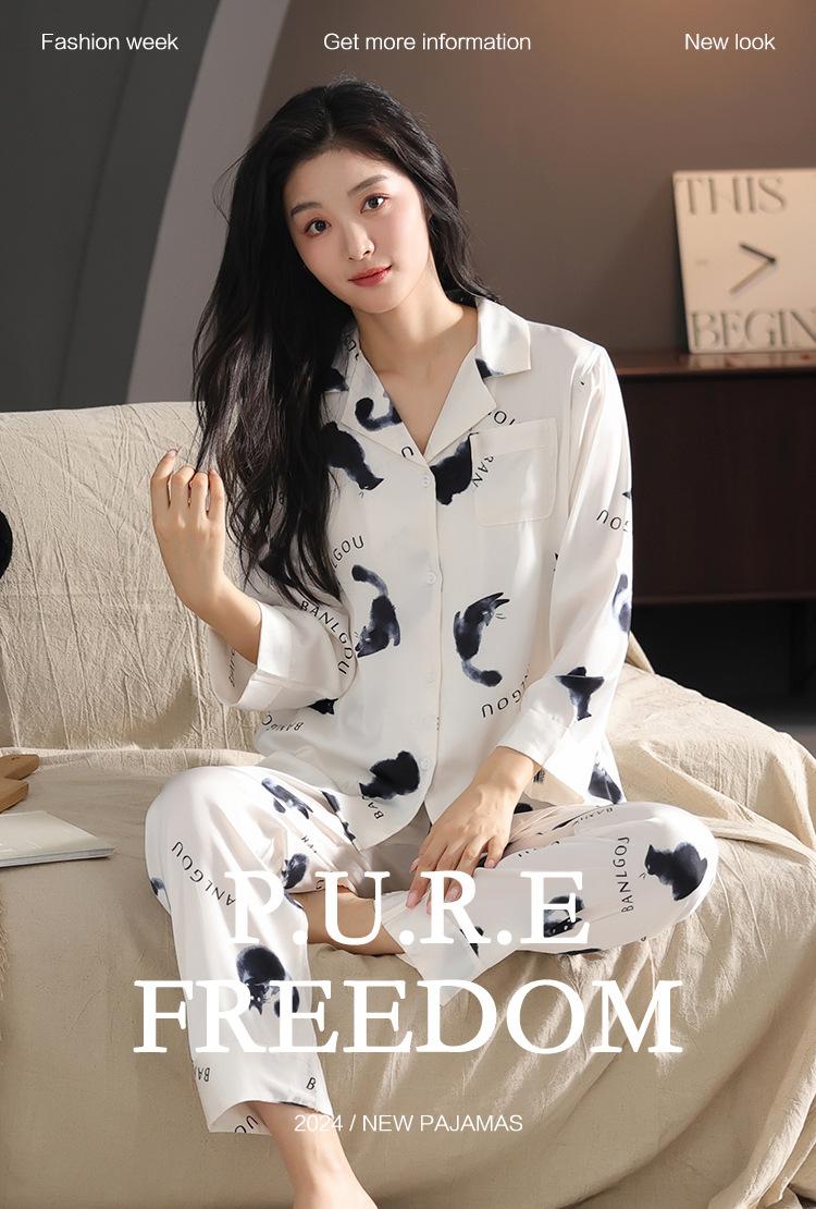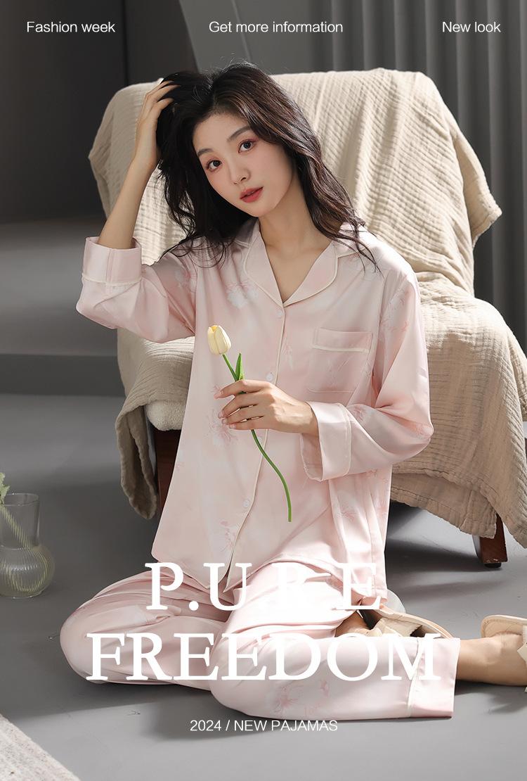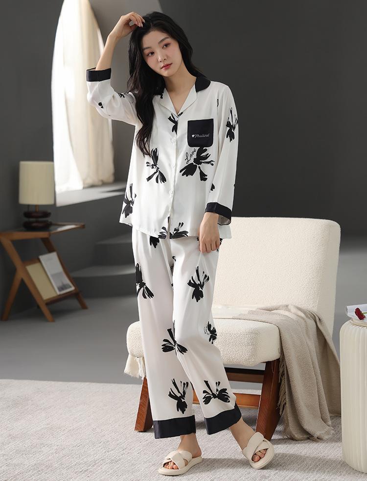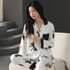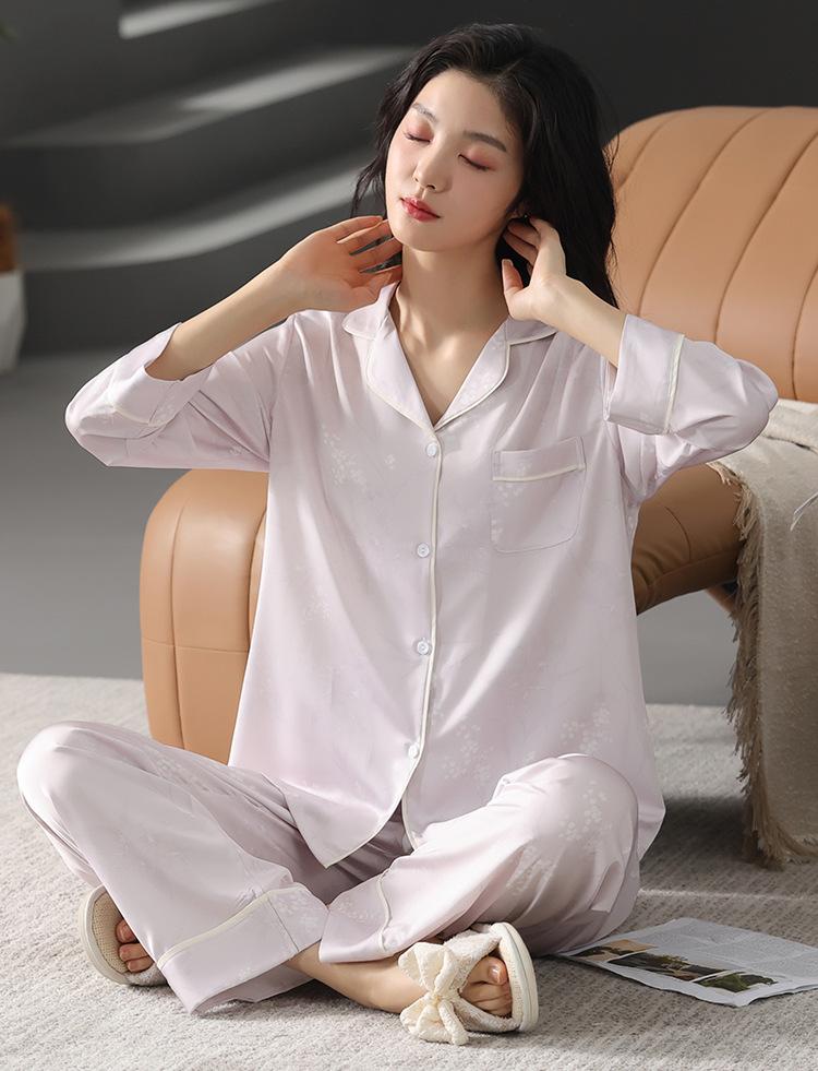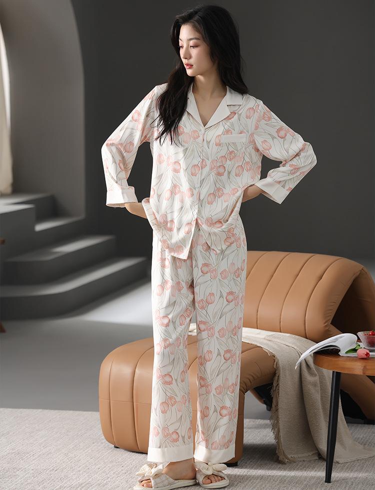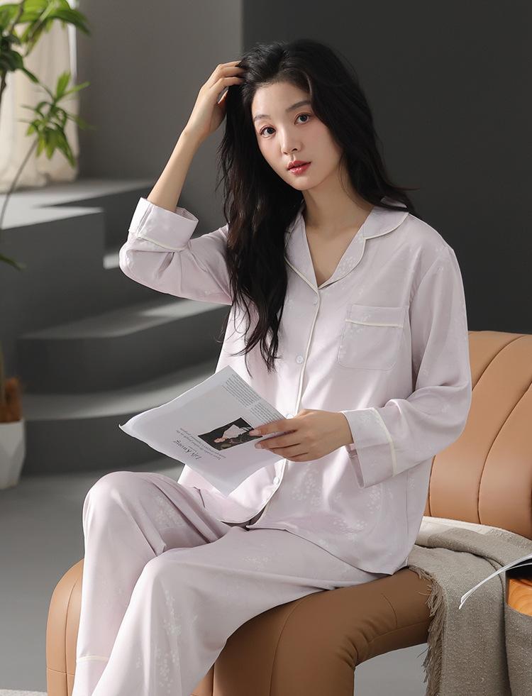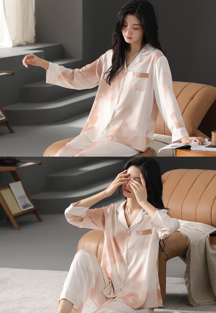 Pijamas de mujer primavera/verano seda hielo manga larga fina seda artificial ropa de hogar de alta calidad traje de moda coreana