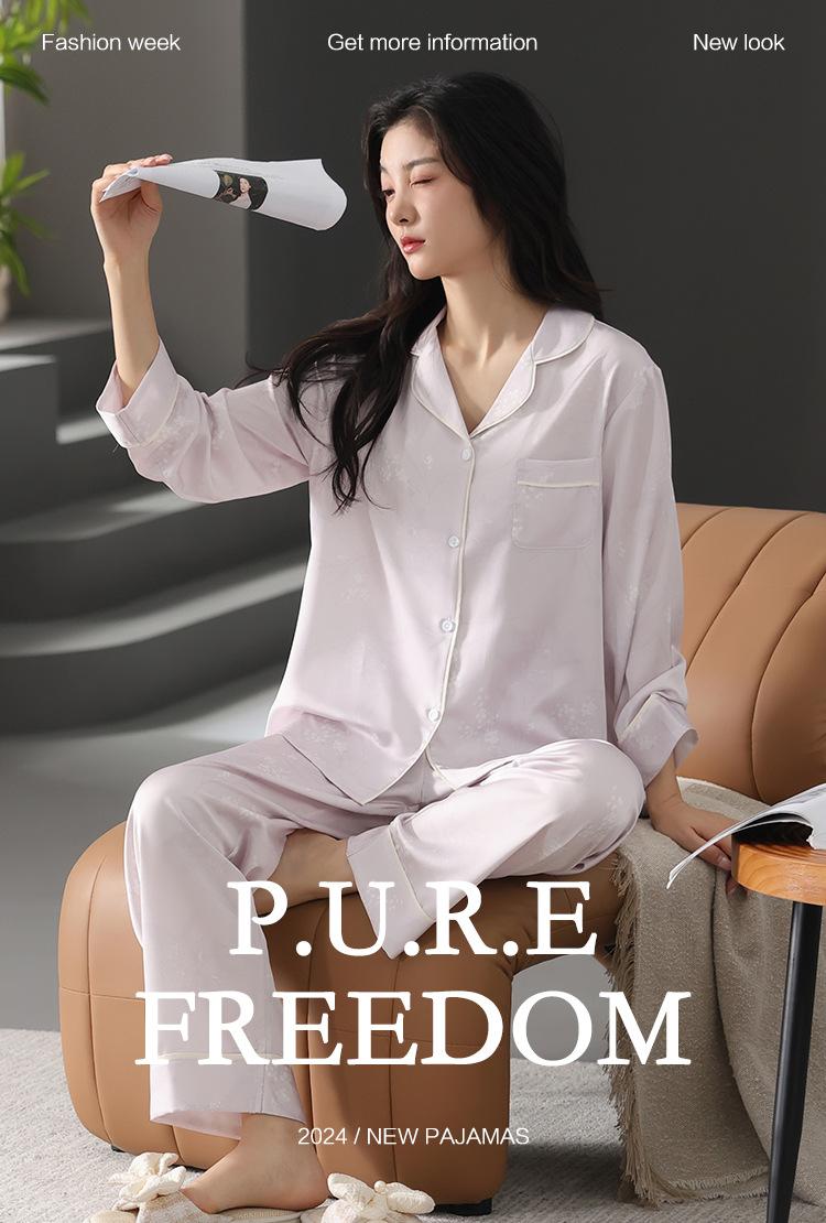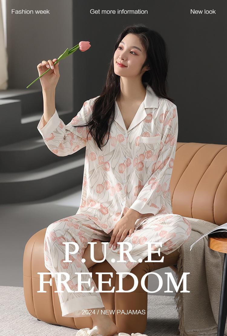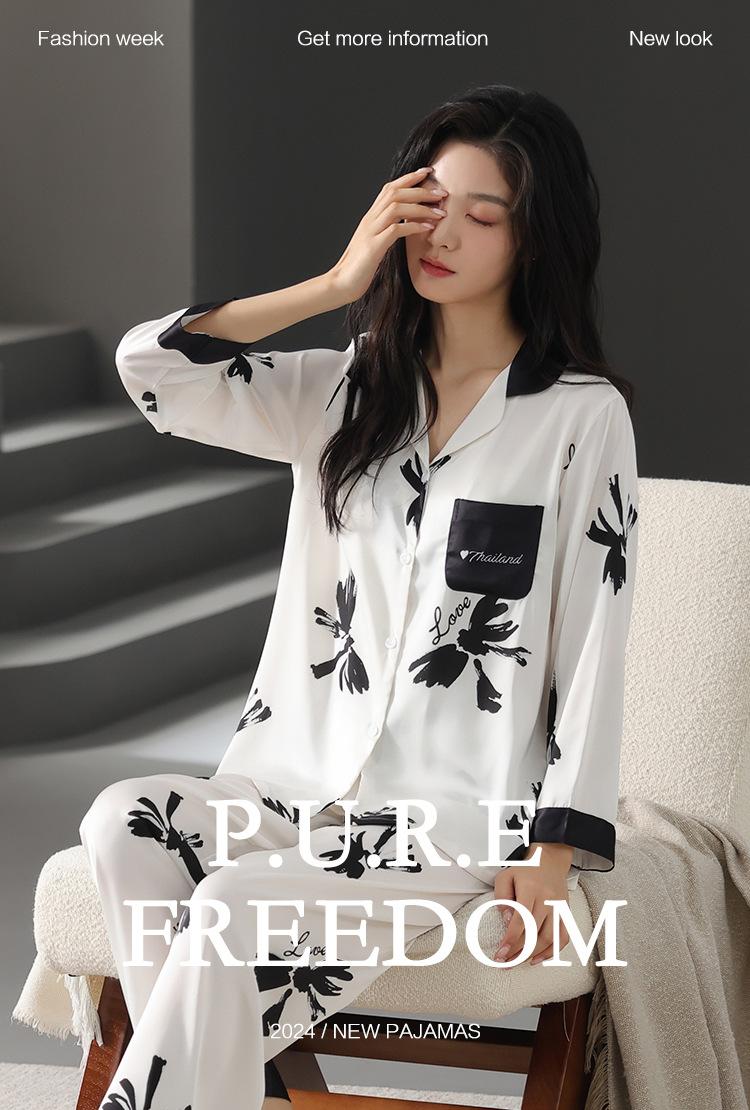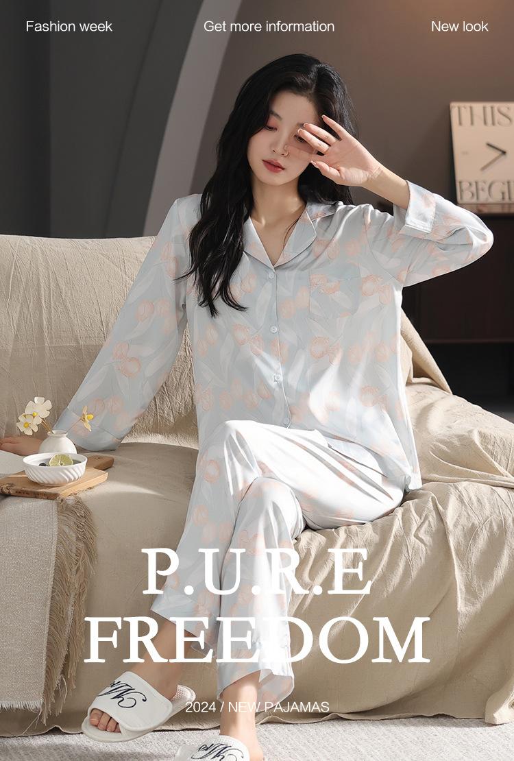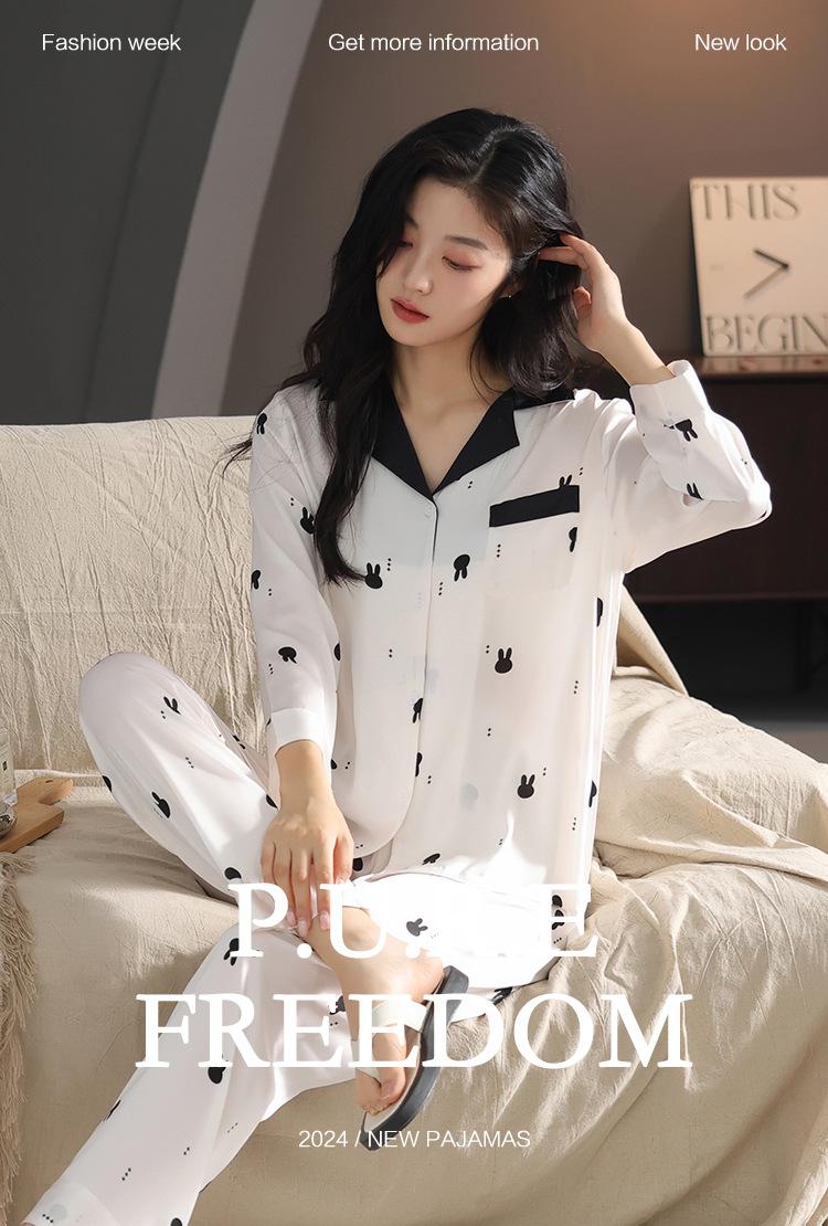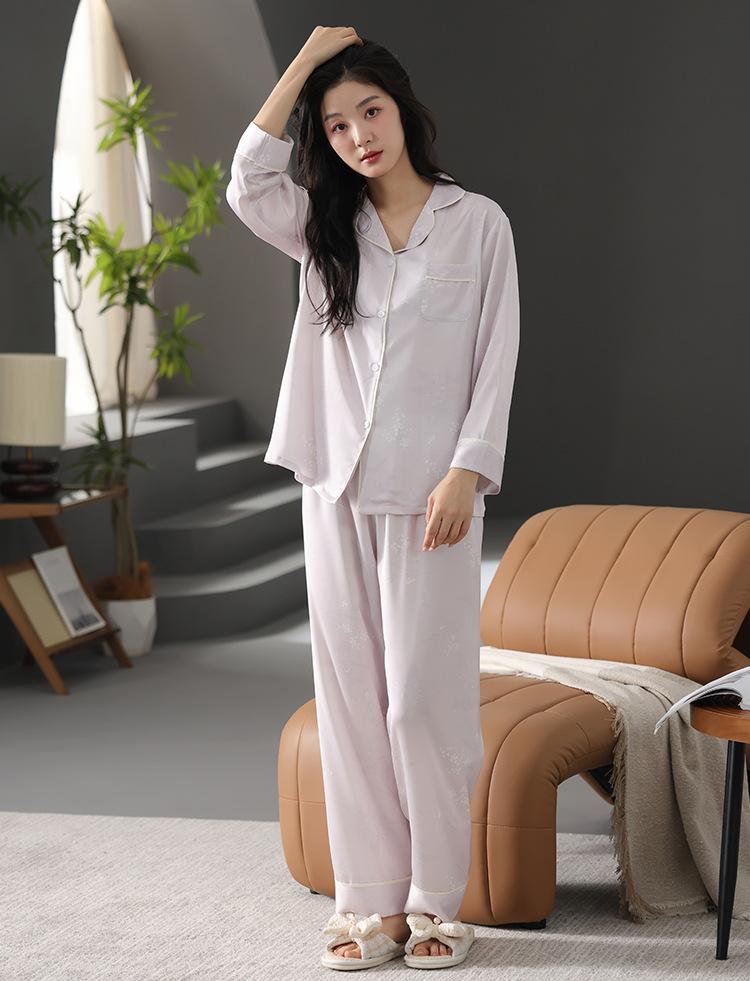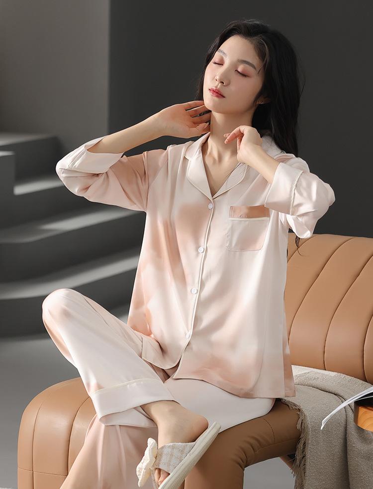 Pijamas de mujer primavera/verano seda hielo manga larga fina seda artificial ropa de hogar de alta calidad traje de moda coreana