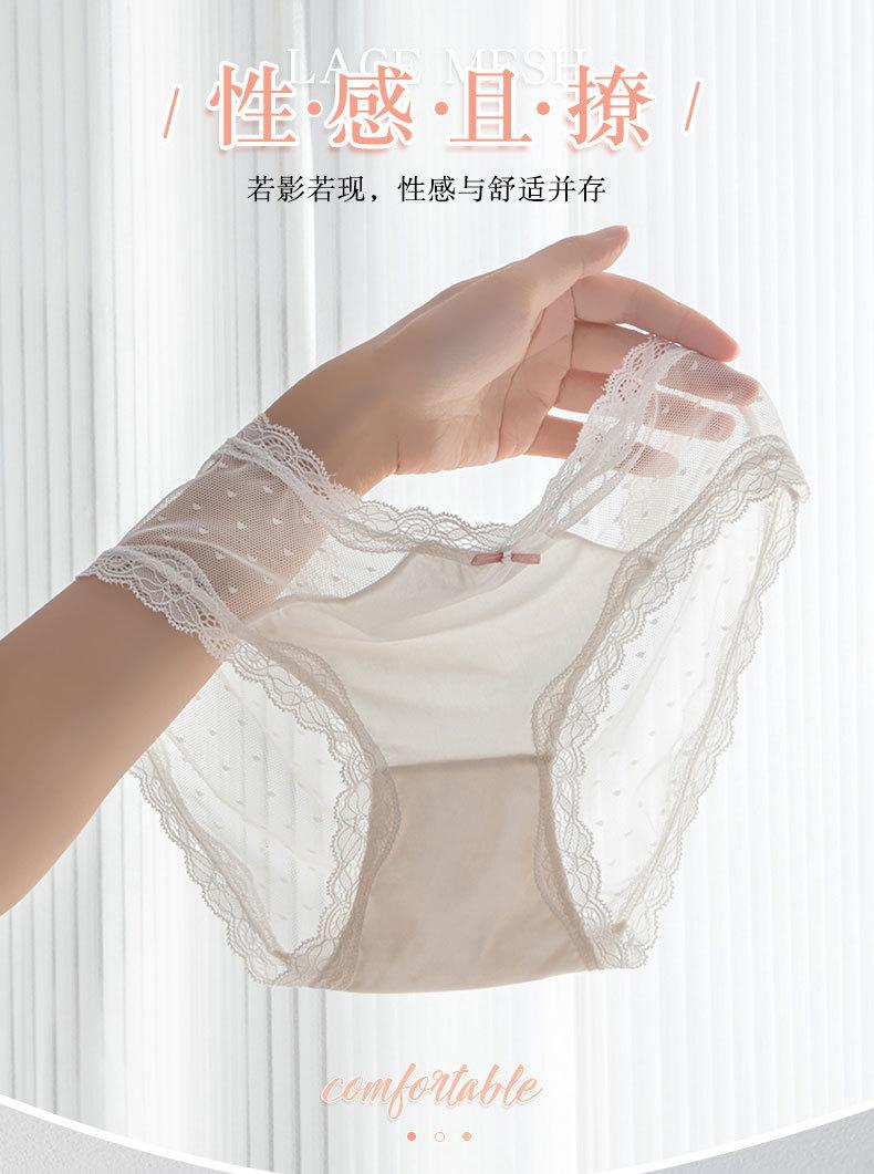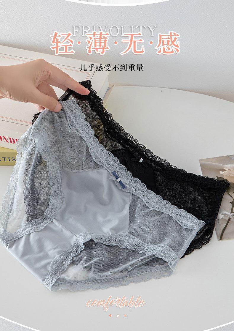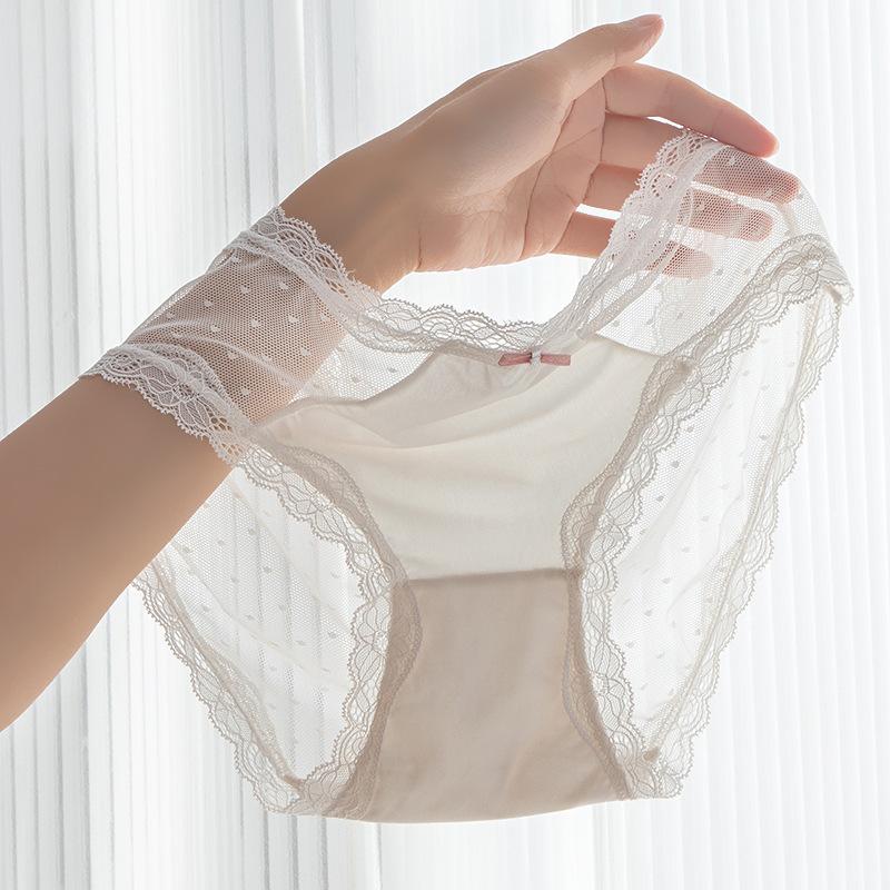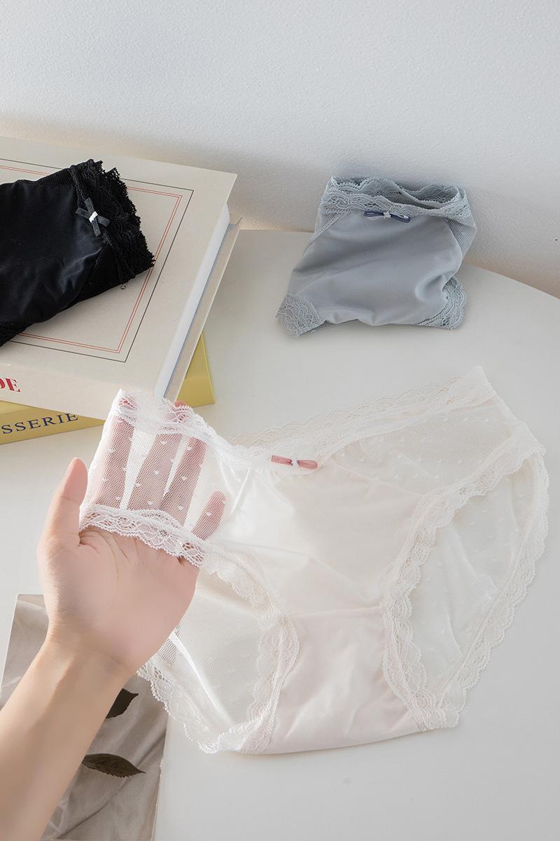 Ropa interior de verano fina de estilo francés, sexy, estilo puro deseo, de encaje, sin dejar marcas, de seda de hielo 7A, antibacteriana, de algodón puro, con entrepierna triangular.