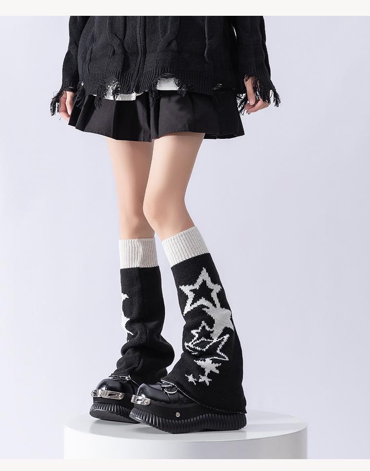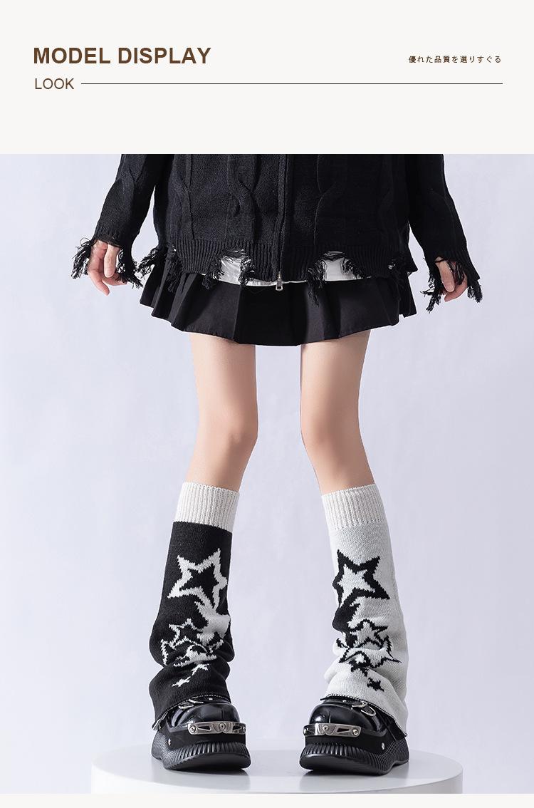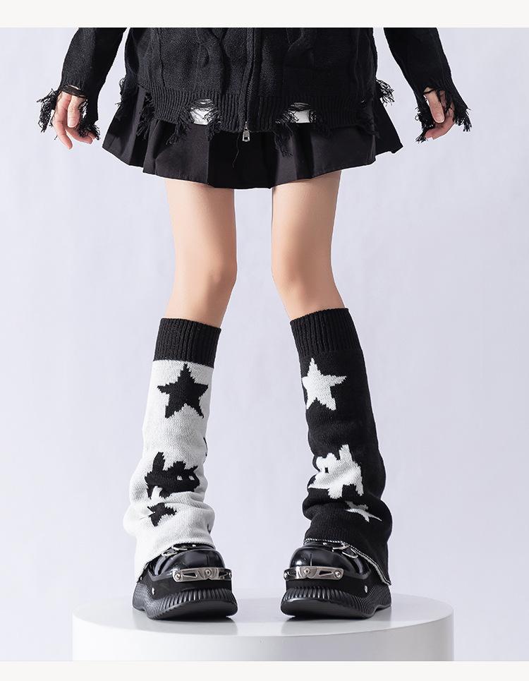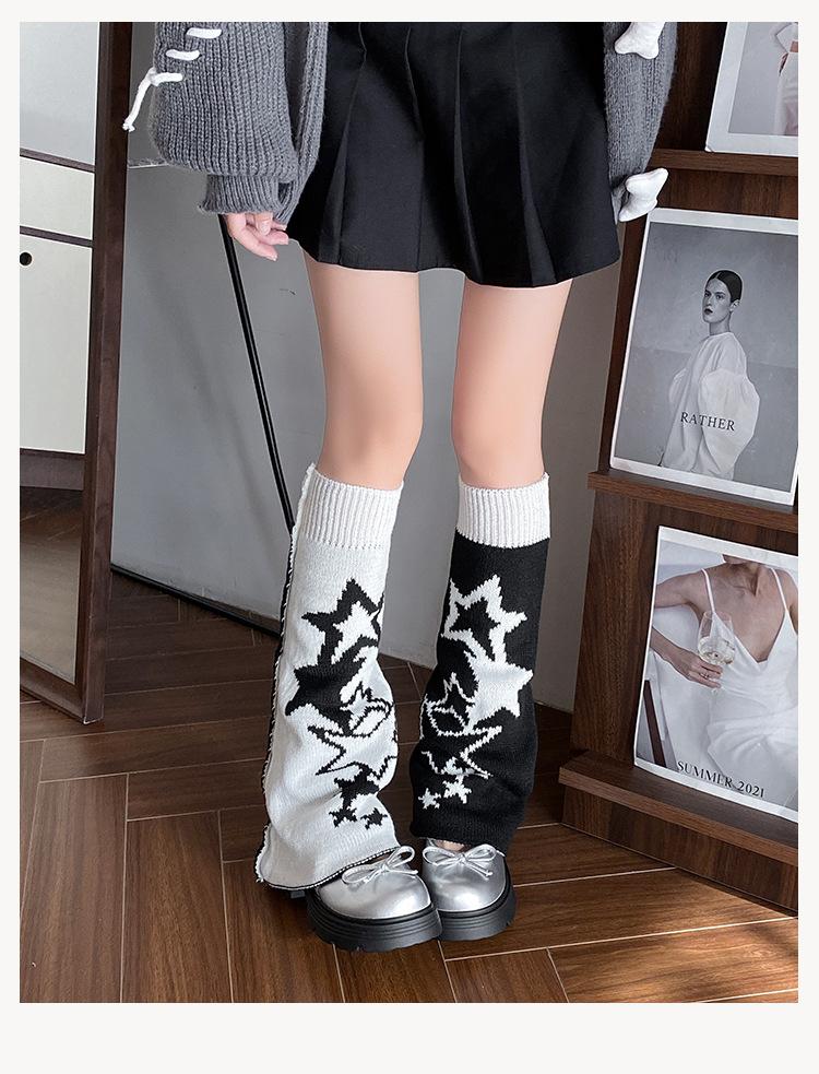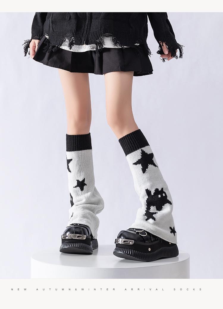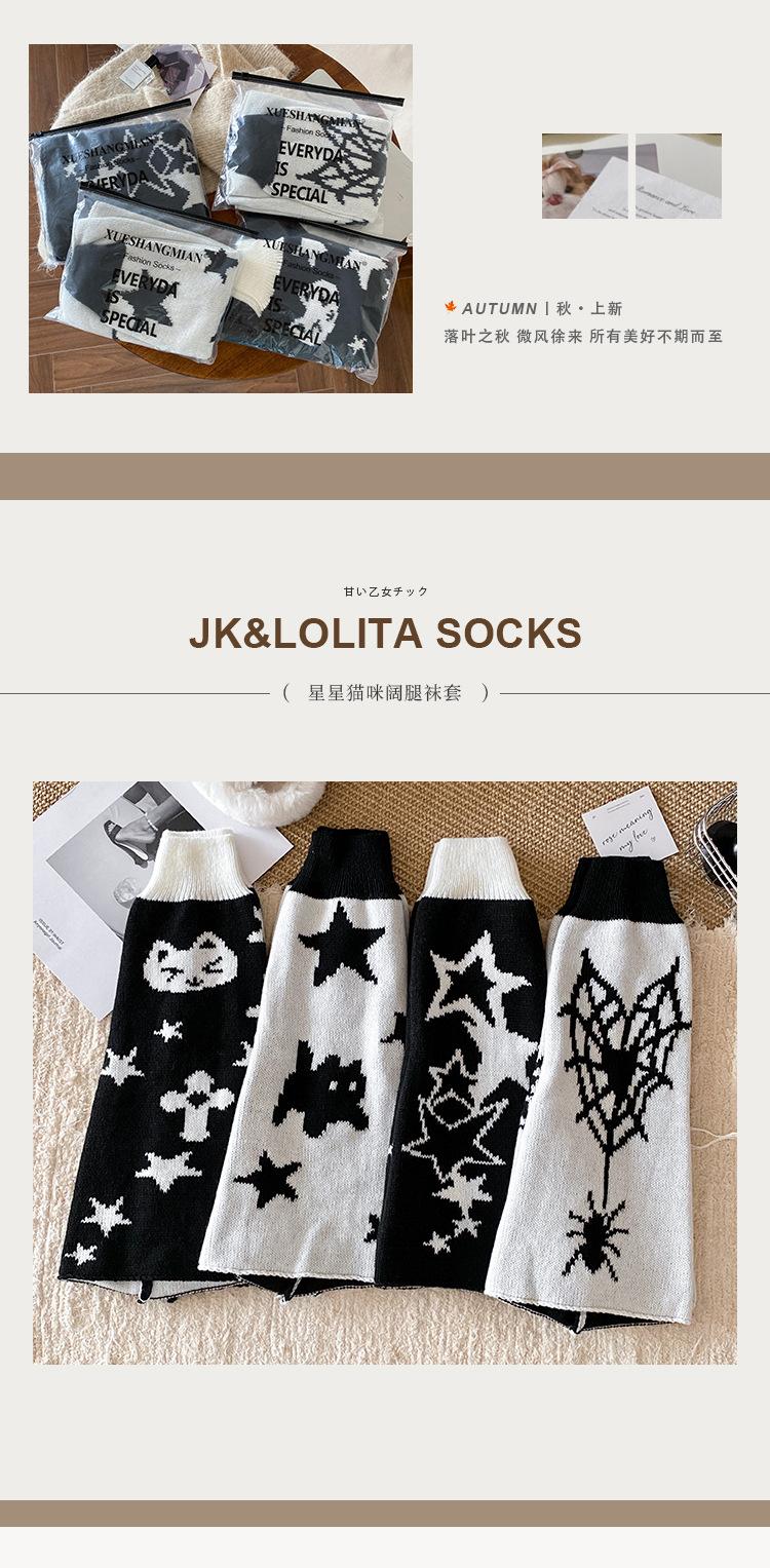 Calcetines de mujer otoño e invierno japoneses gatito estrella pierna subcultura y2k chica caliente primavera y otoño uso doble cara cubierta de pierna larga