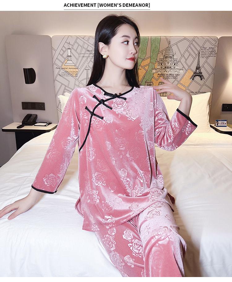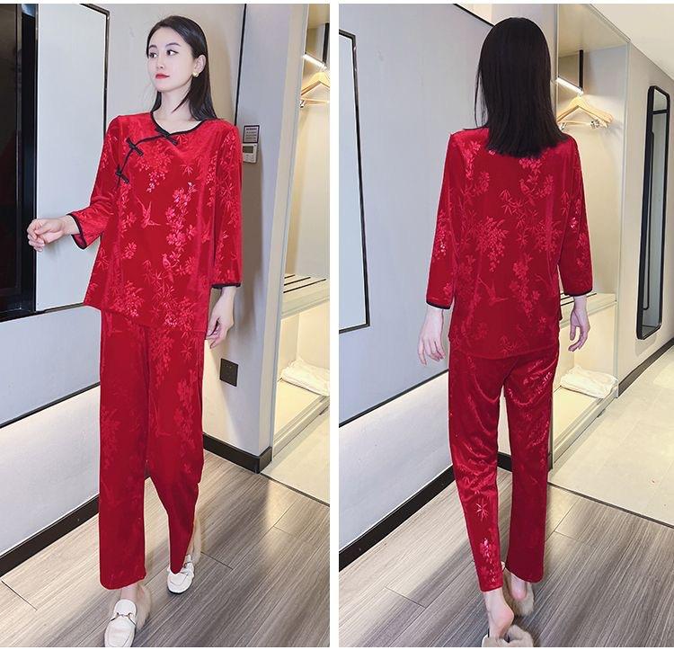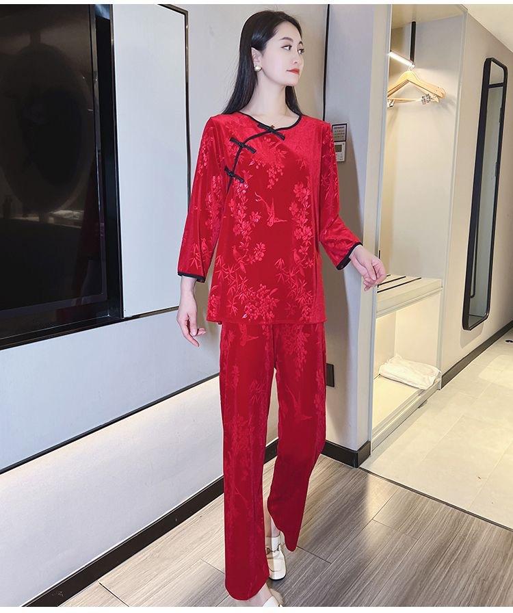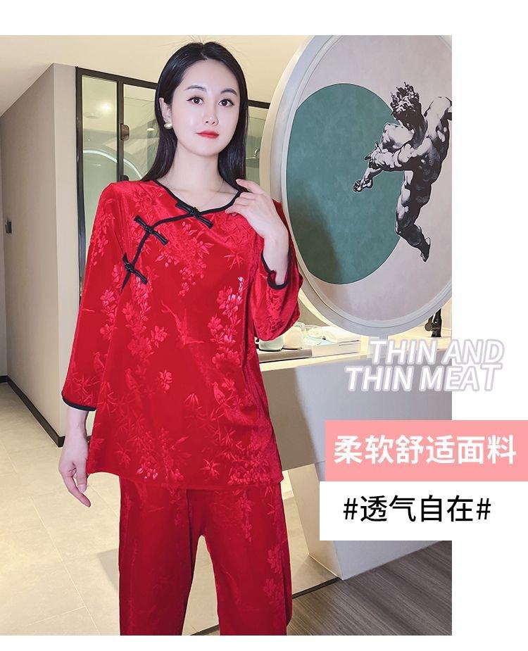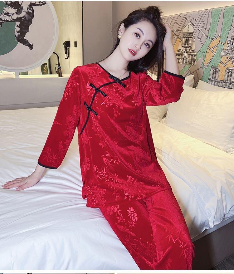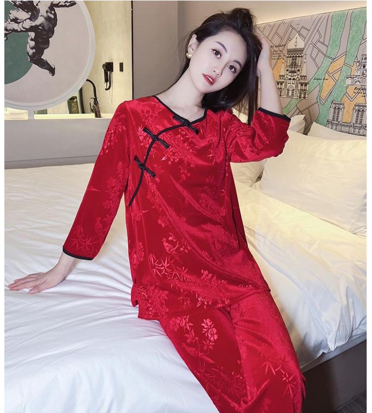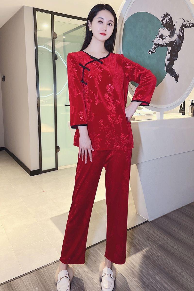 Pijama de estilo chino con hebilla para mujer, ropa de hogar, estilo occidental, clásico, antiedad, informal, a la moda, estilo nacional