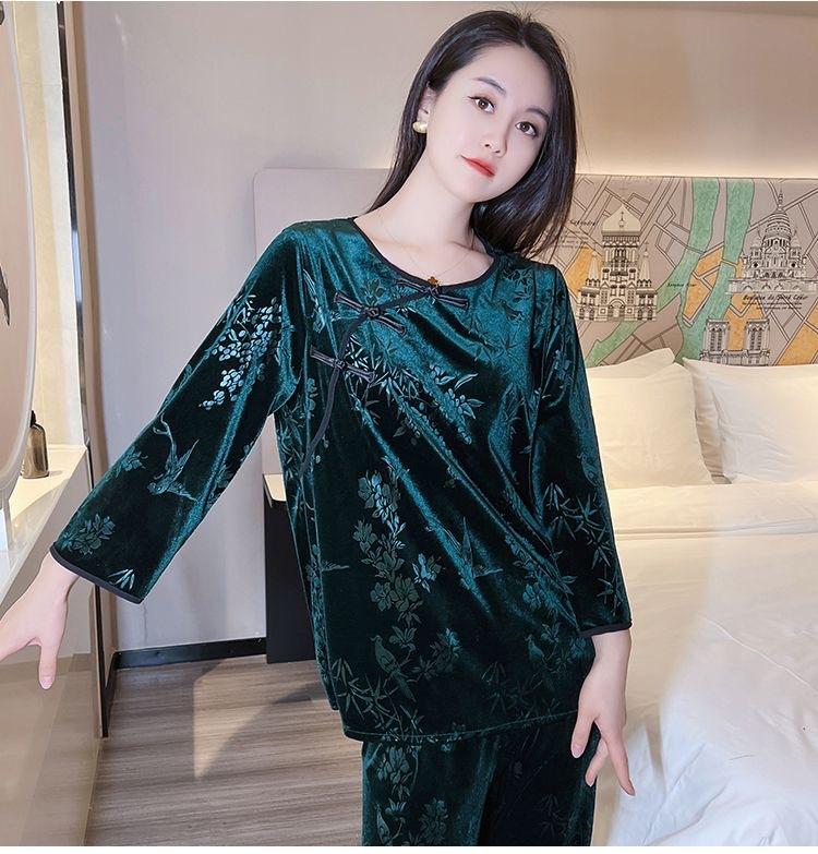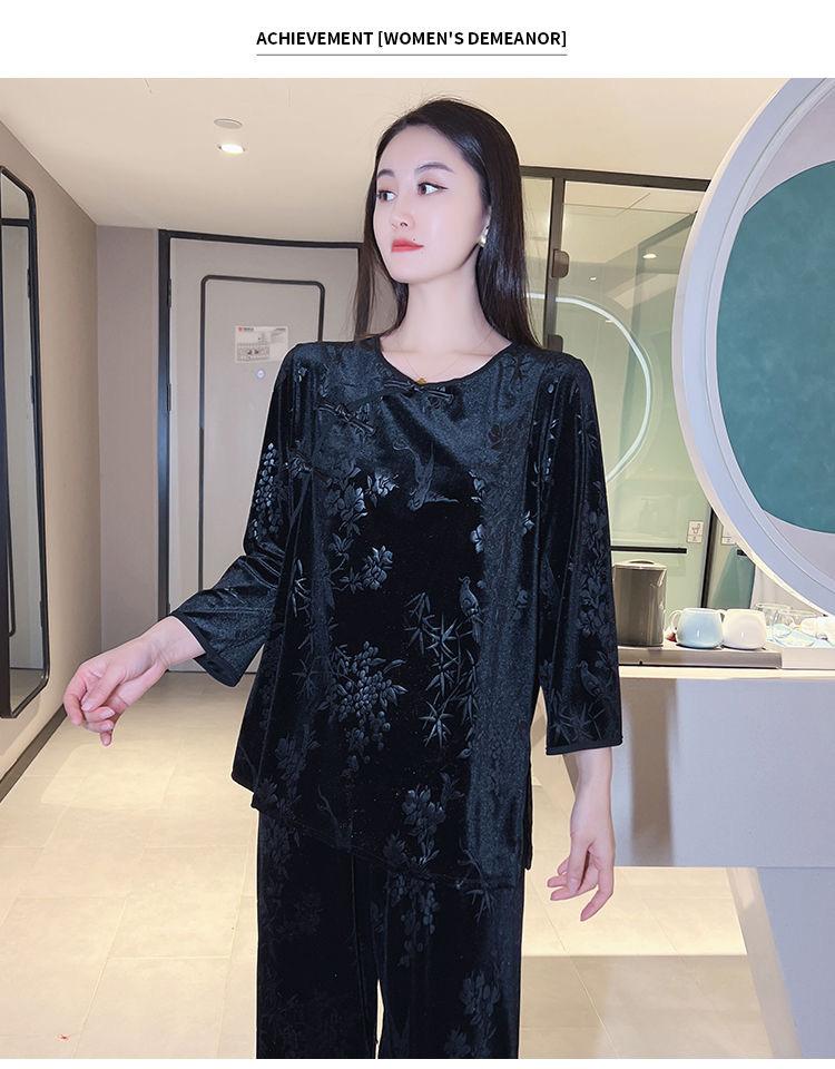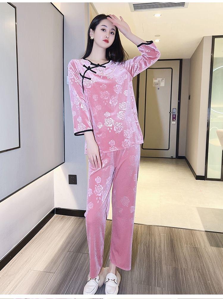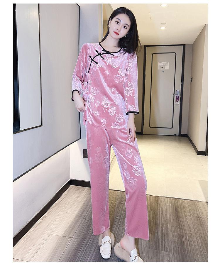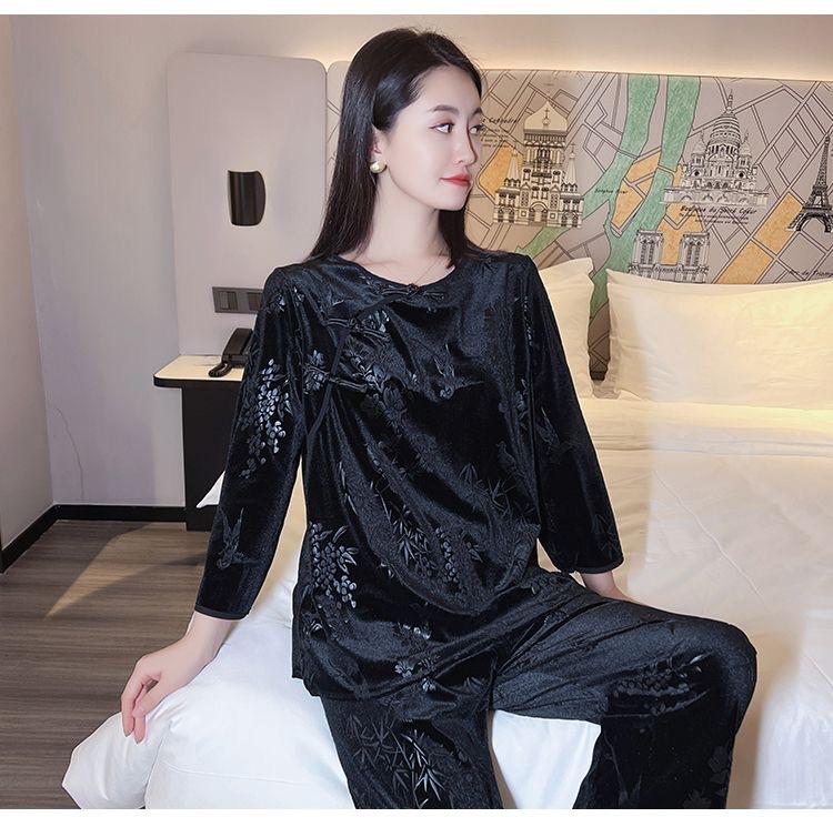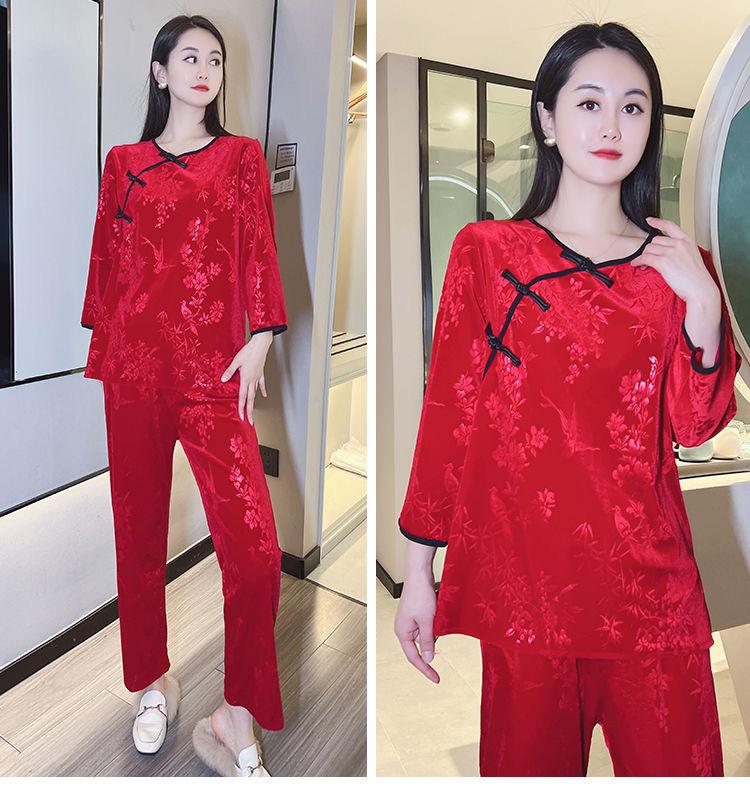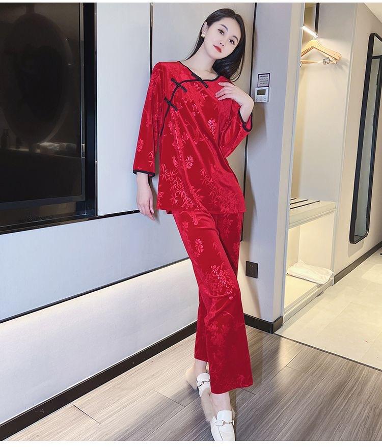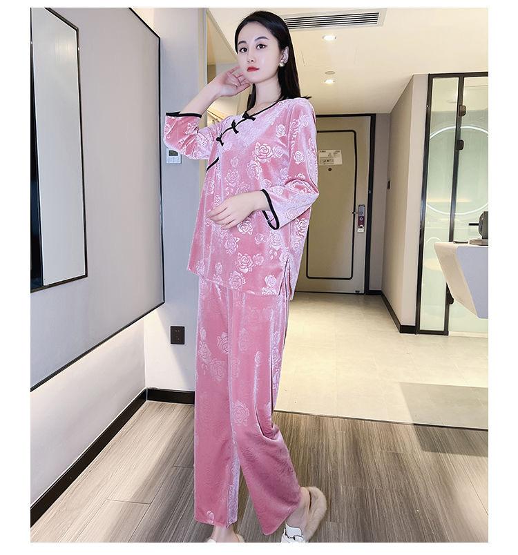 Pijama de estilo chino con hebilla para mujer, ropa de hogar, estilo occidental, clásico, antiedad, informal, a la moda, estilo nacional
