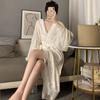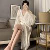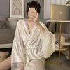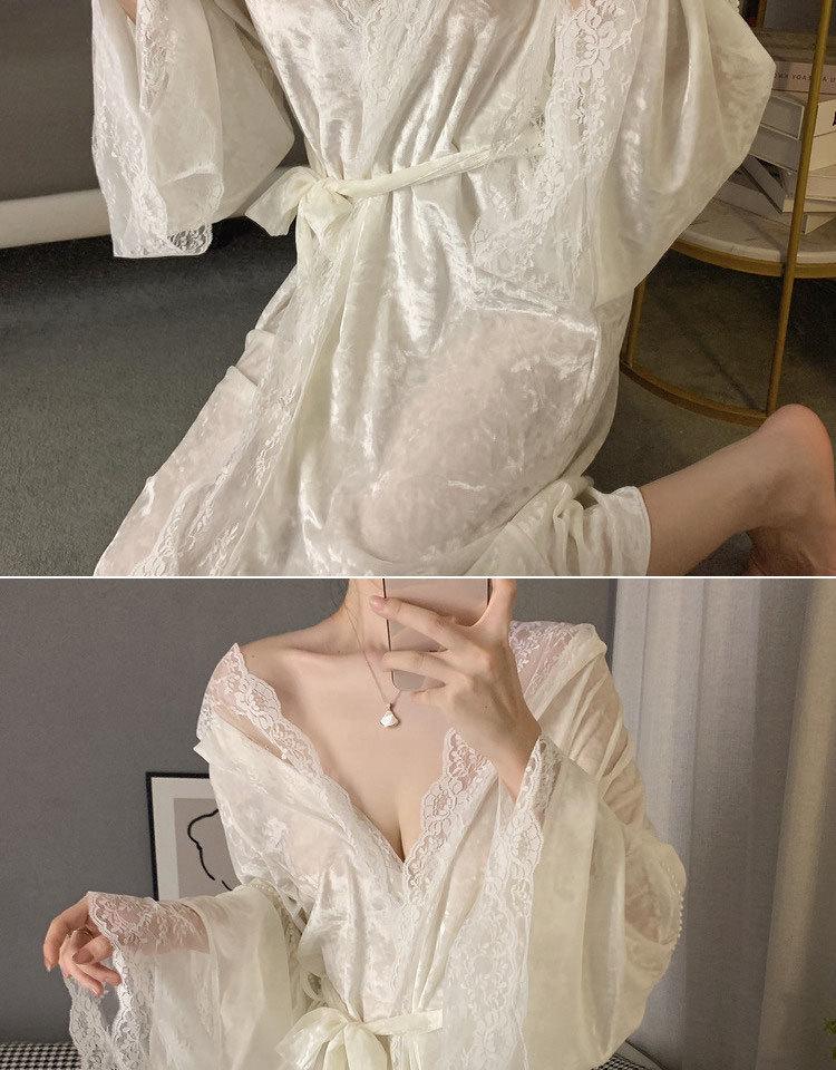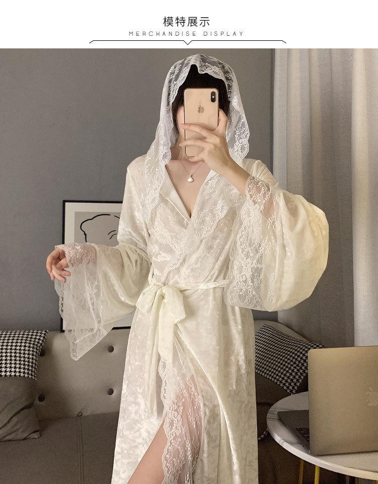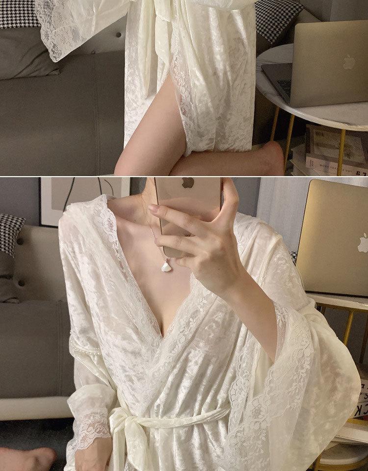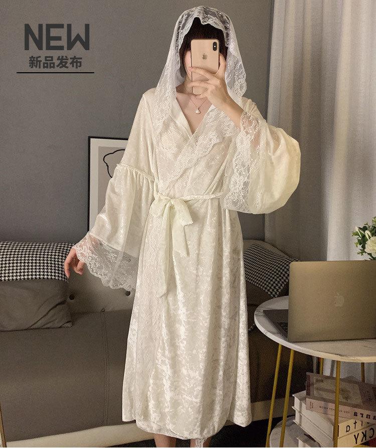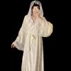 Pijama de Terciopelo Dorado para Mujer Otoño e Invierno Manga Larga Sexy Camisón Largo con Capucha Encaje Estilo Palacio Puro Bata Ropa de Casa