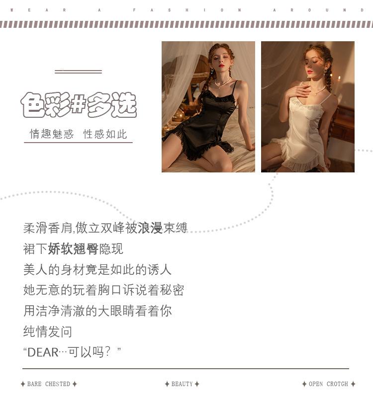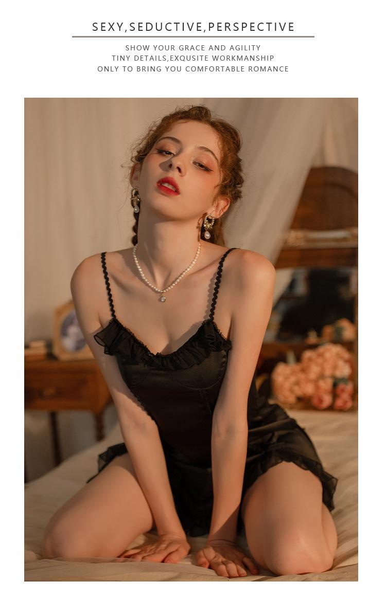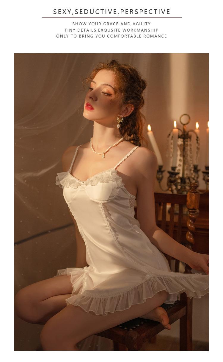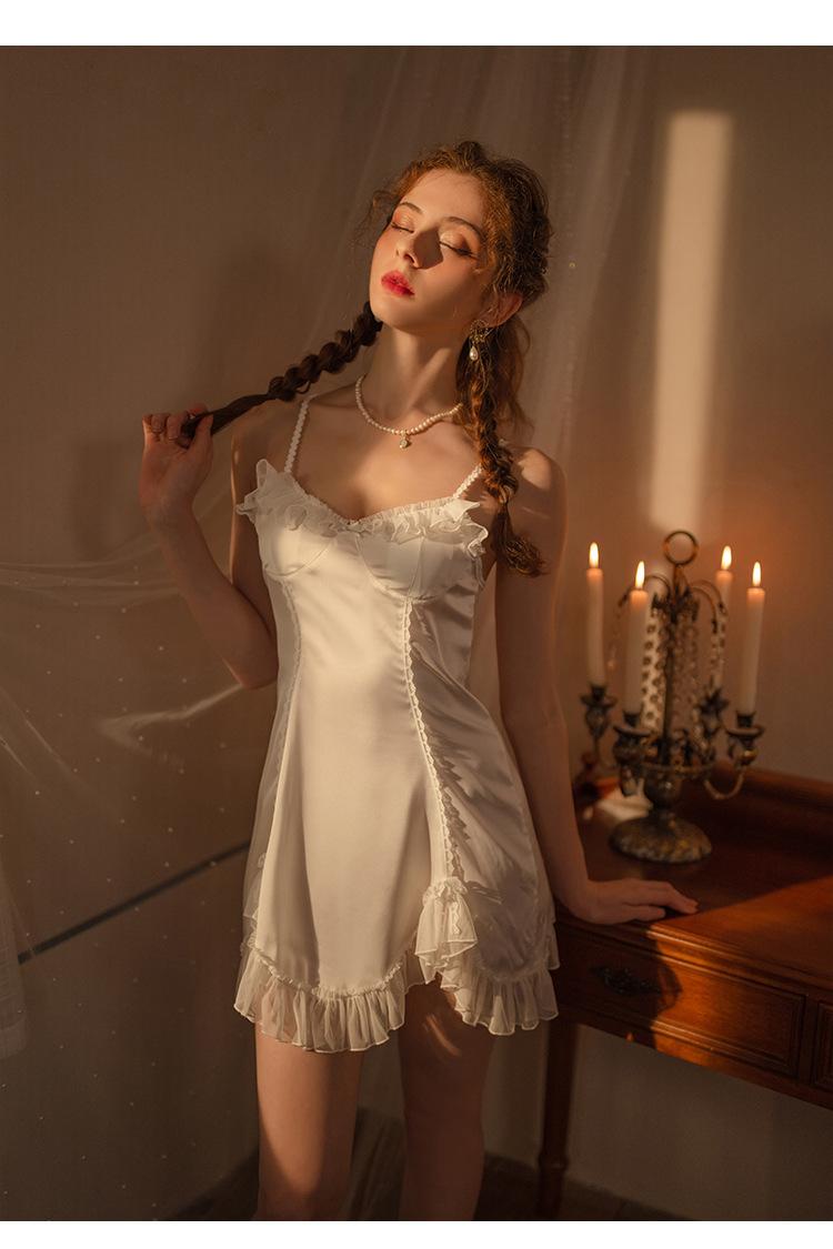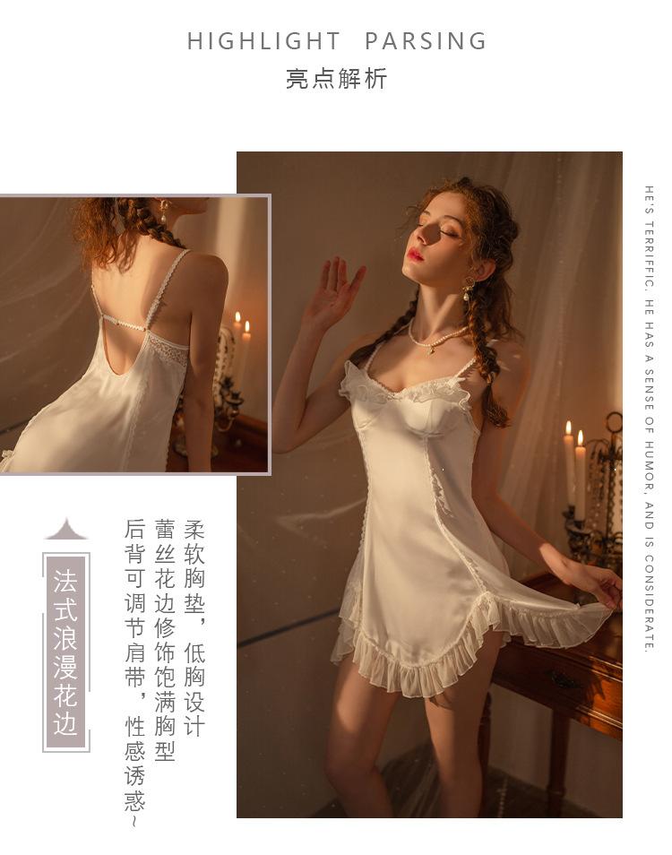 Nuevo camisón sexy de encaje estilo francés para mujer, camisón de verano con escote en V profundo y tirantes de encaje, camisón sexy sin espalda.