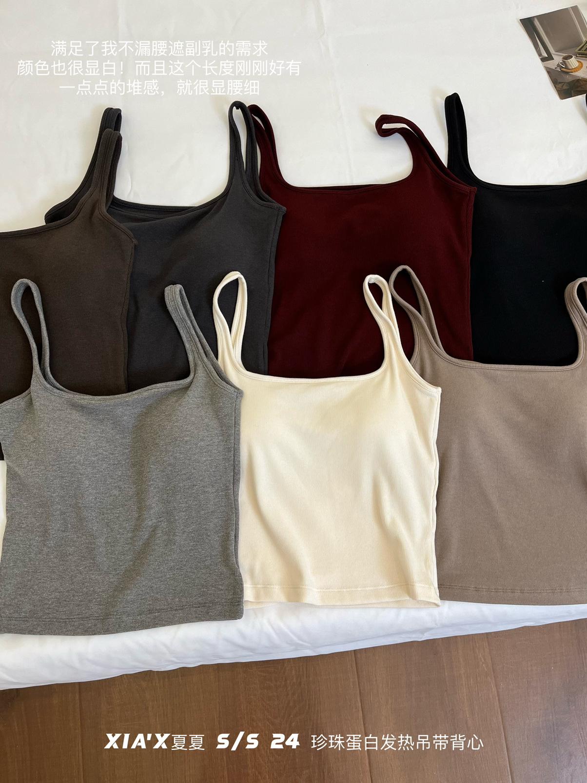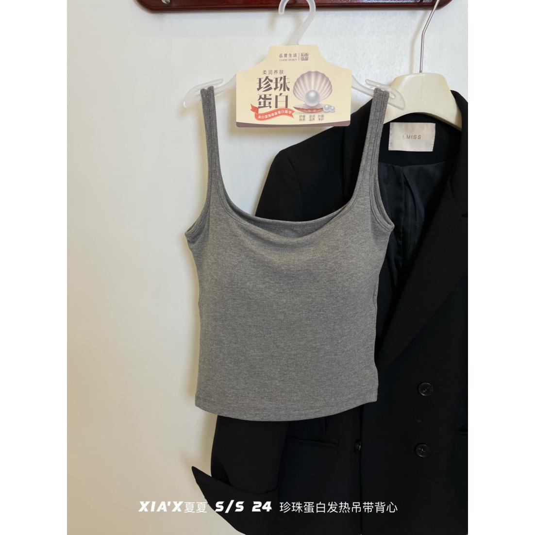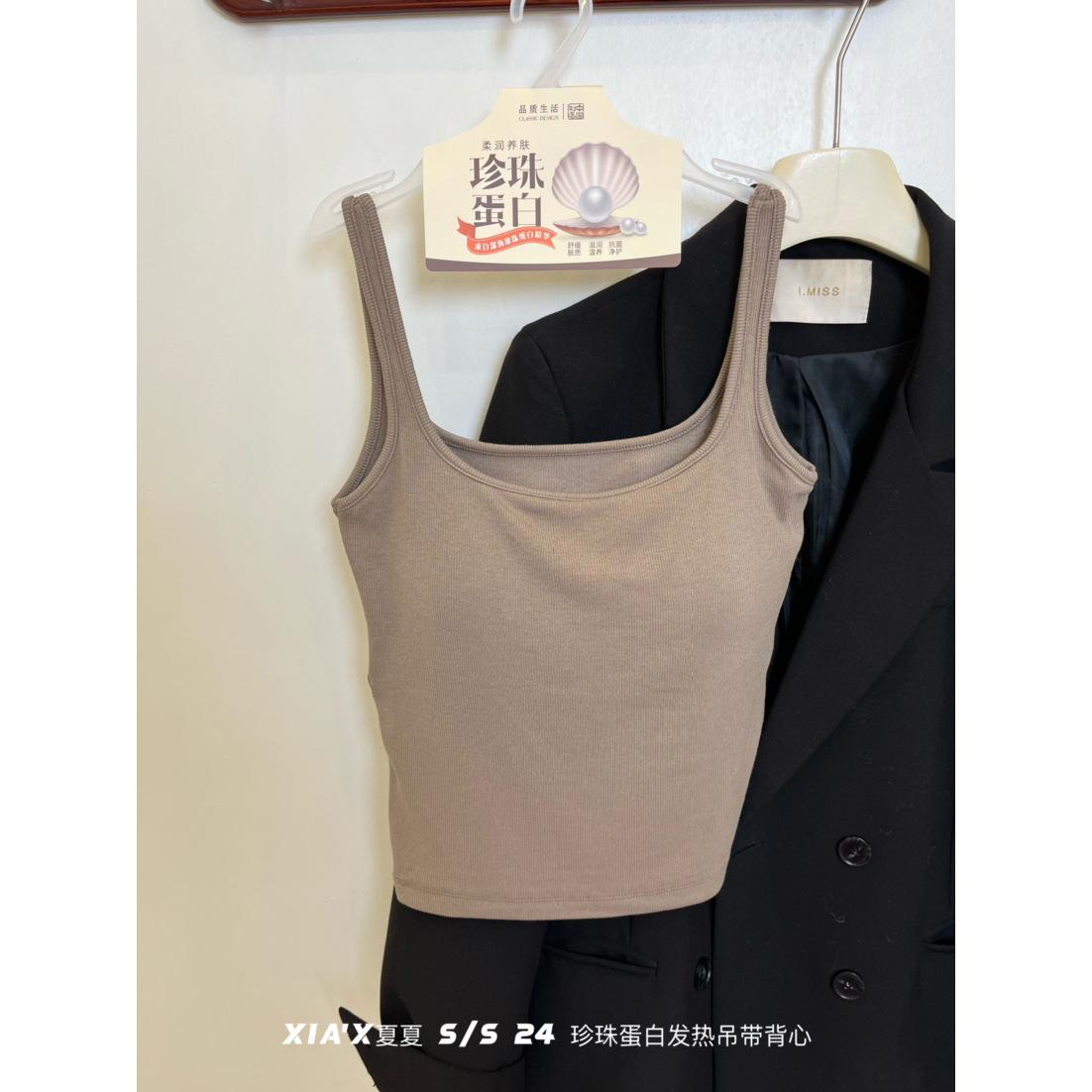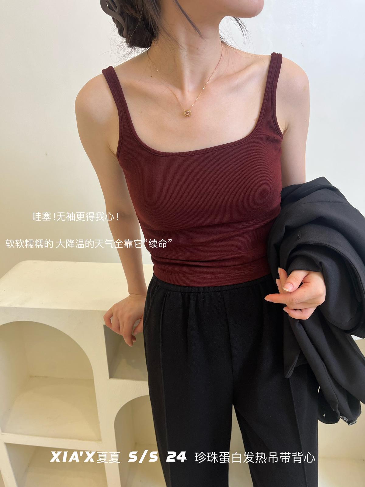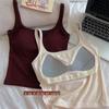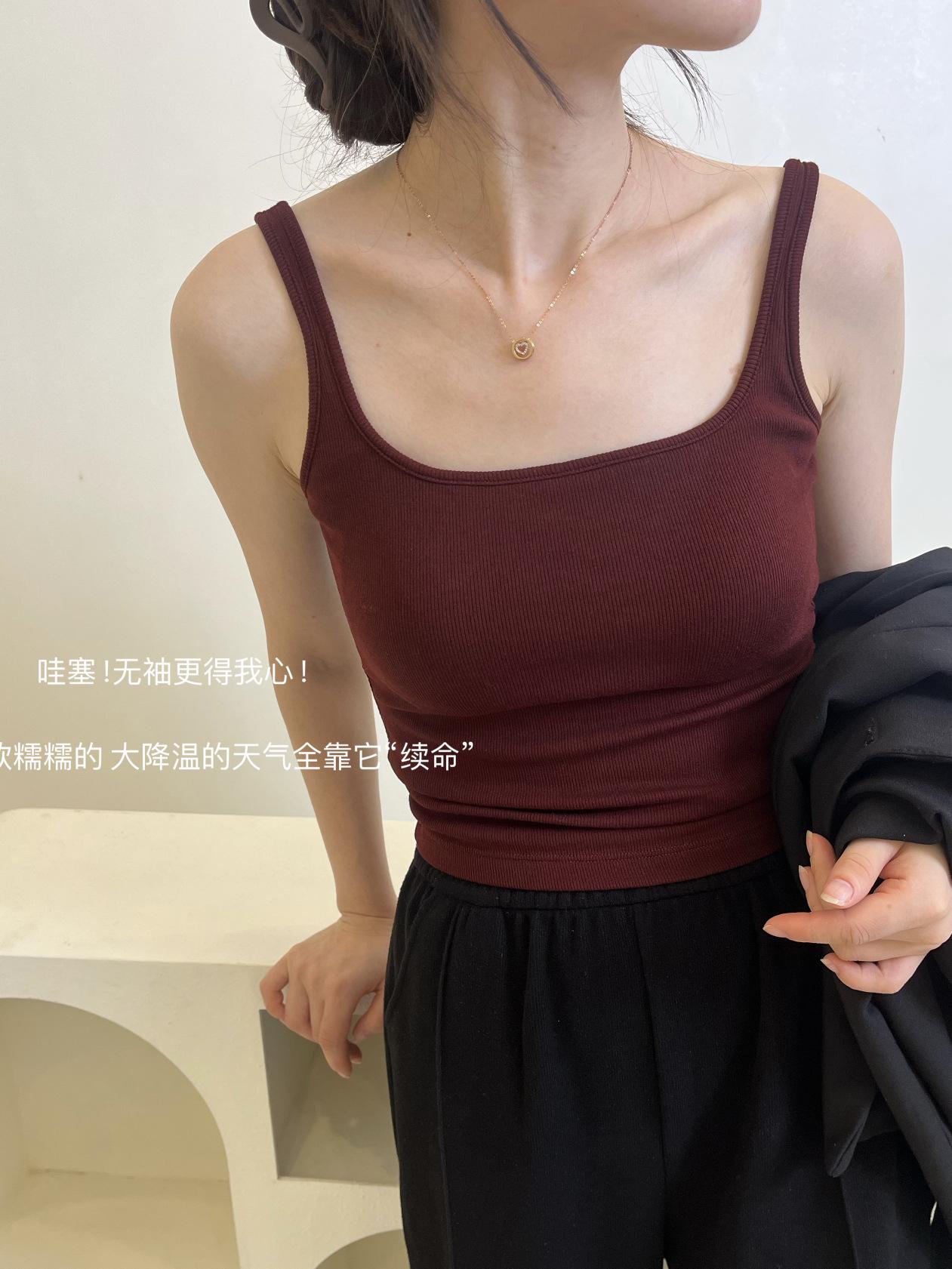 Chaleco Cálido Acolchado de Arena de Corte Slim con Cuello Cuadrado y Almohadilla en el Pecho Otoño e Invierno Nuevo Versátil Elástico Interior Tirantes Top Base