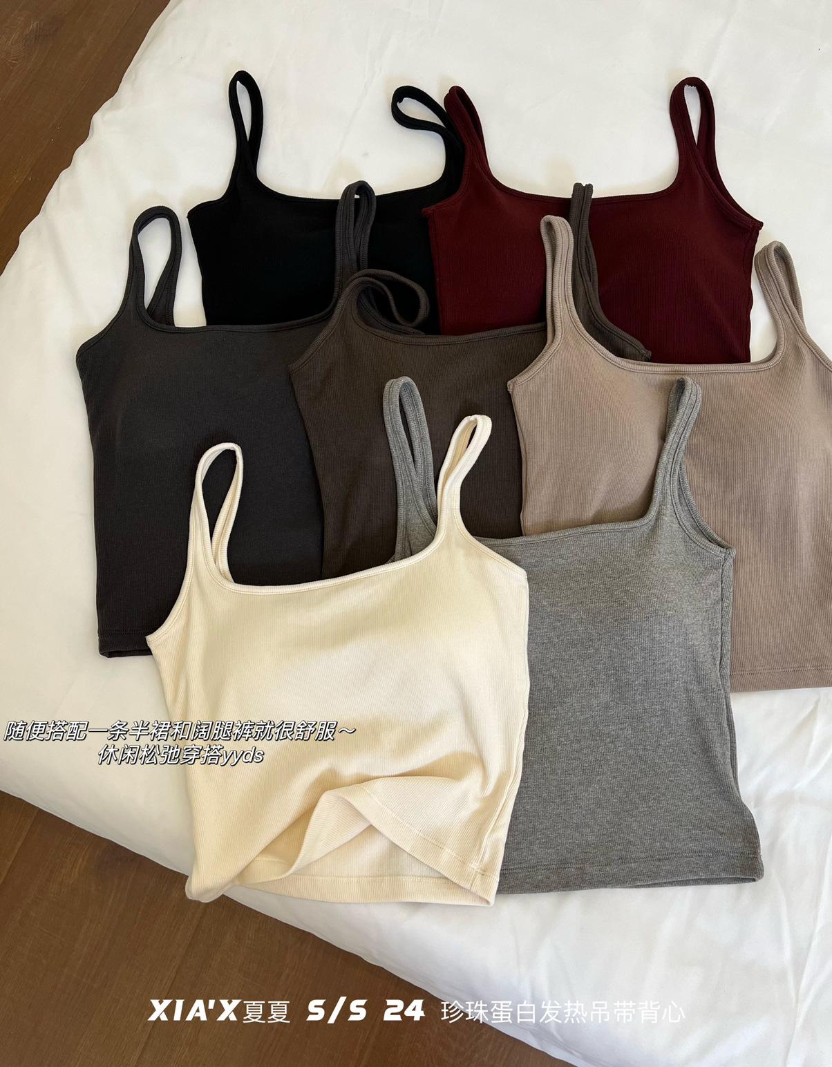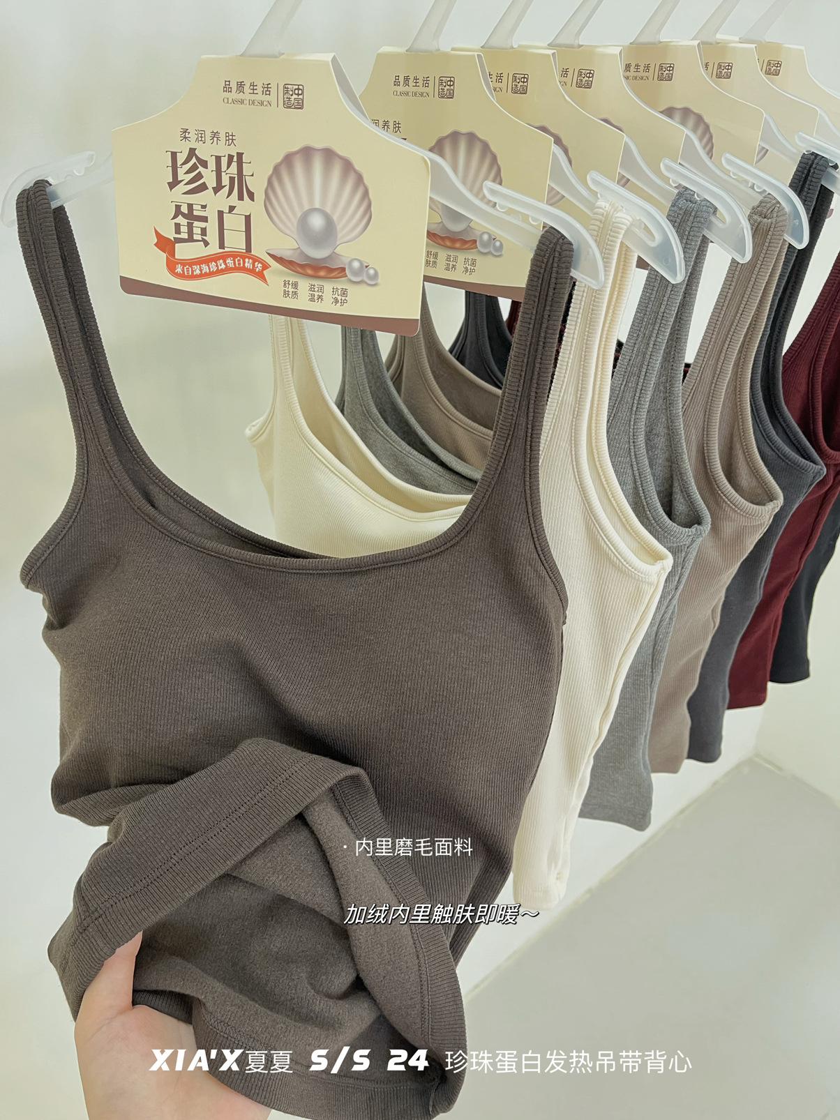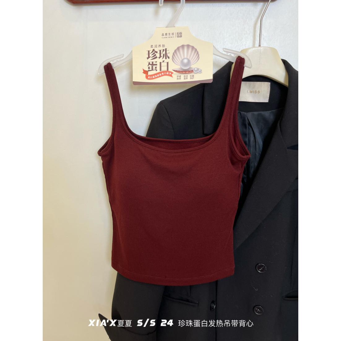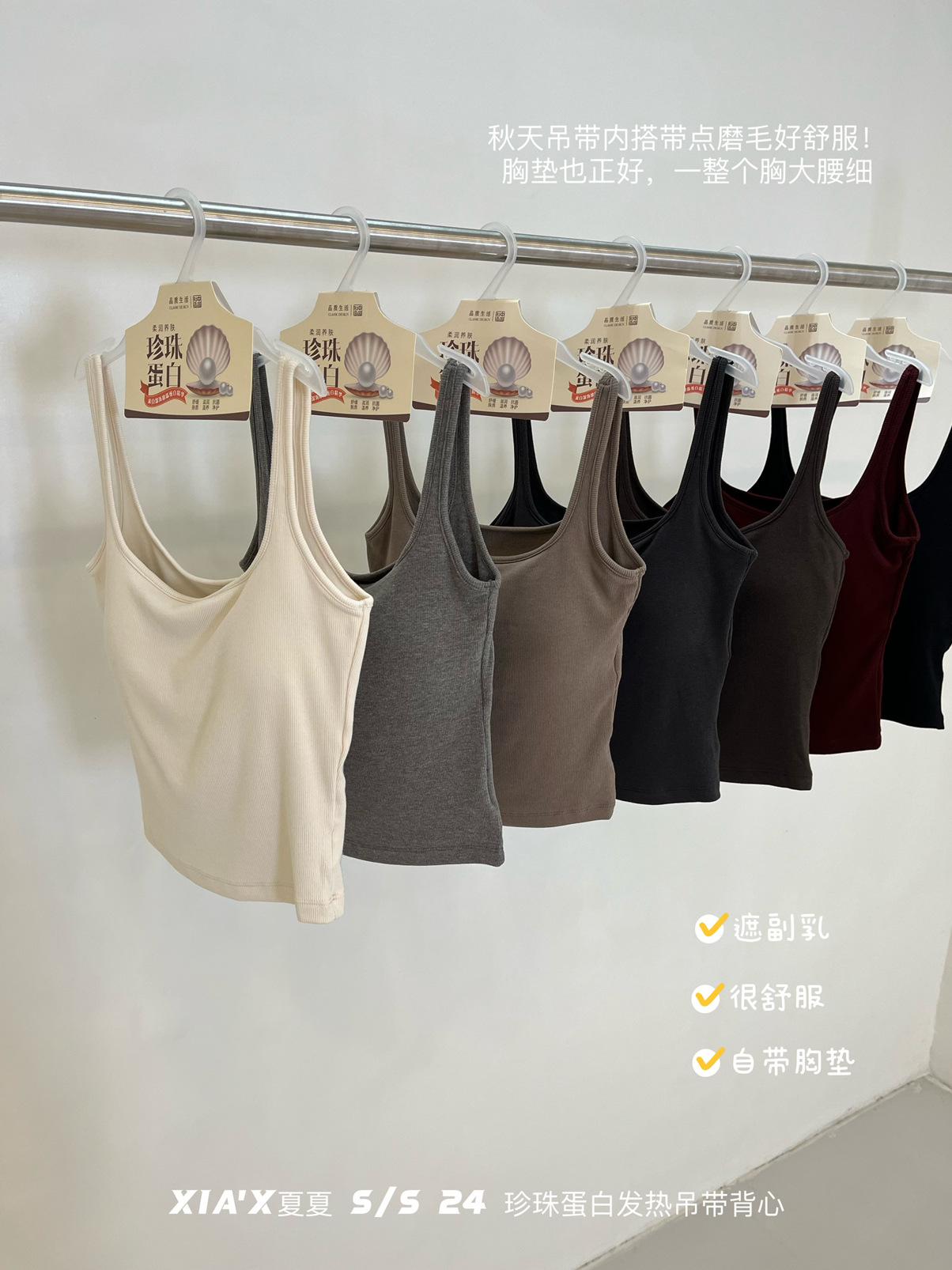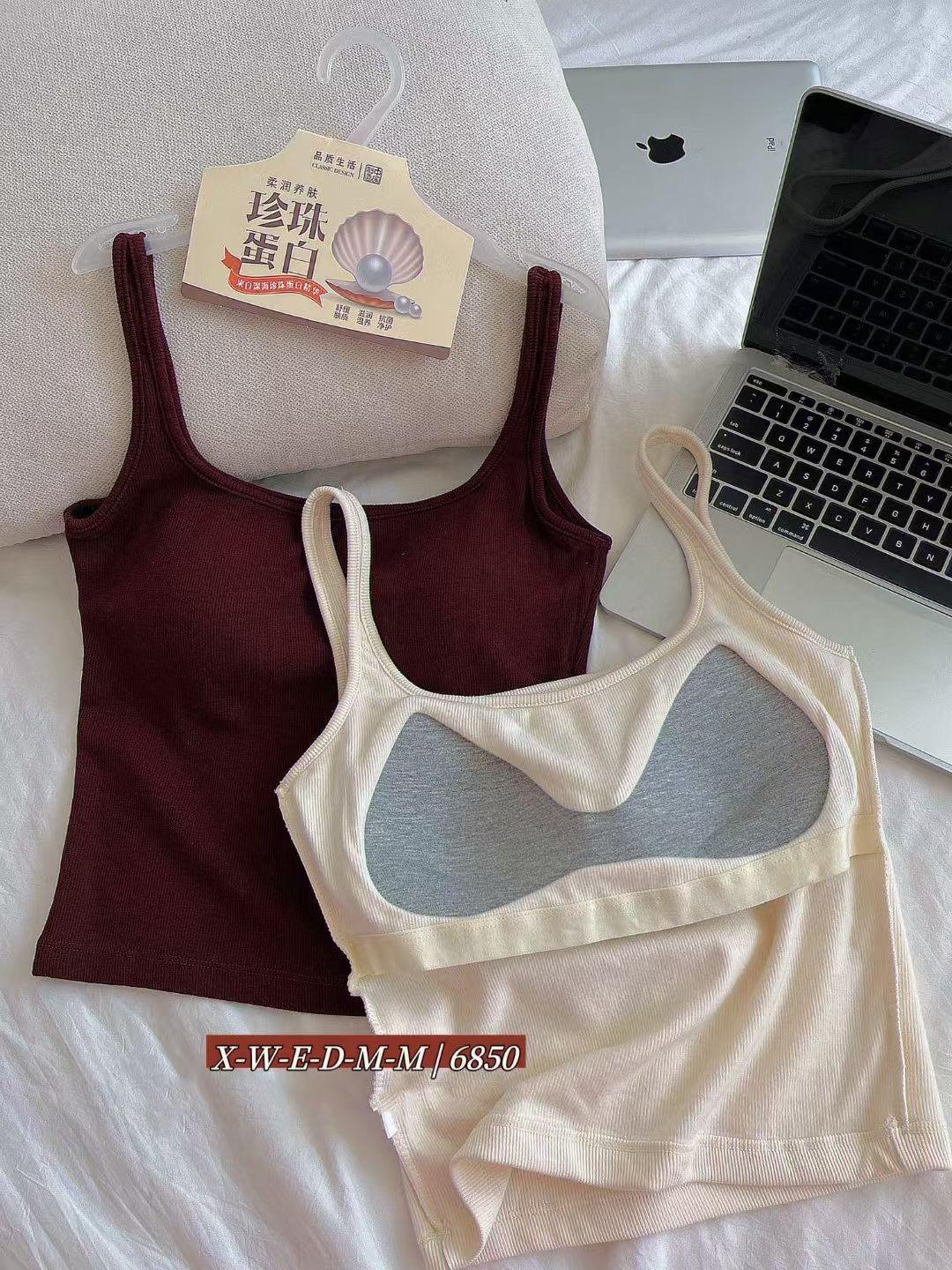 Chaleco Cálido Acolchado de Arena de Corte Slim con Cuello Cuadrado y Almohadilla en el Pecho Otoño e Invierno Nuevo Versátil Elástico Interior Tirantes Top Base