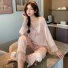 Pijamas de mujer de primavera y otoño de seda de hielo de manga larga para mujer de otoño e invierno de seda de imitación 2024 nuevo otoño ropa de hogar traje