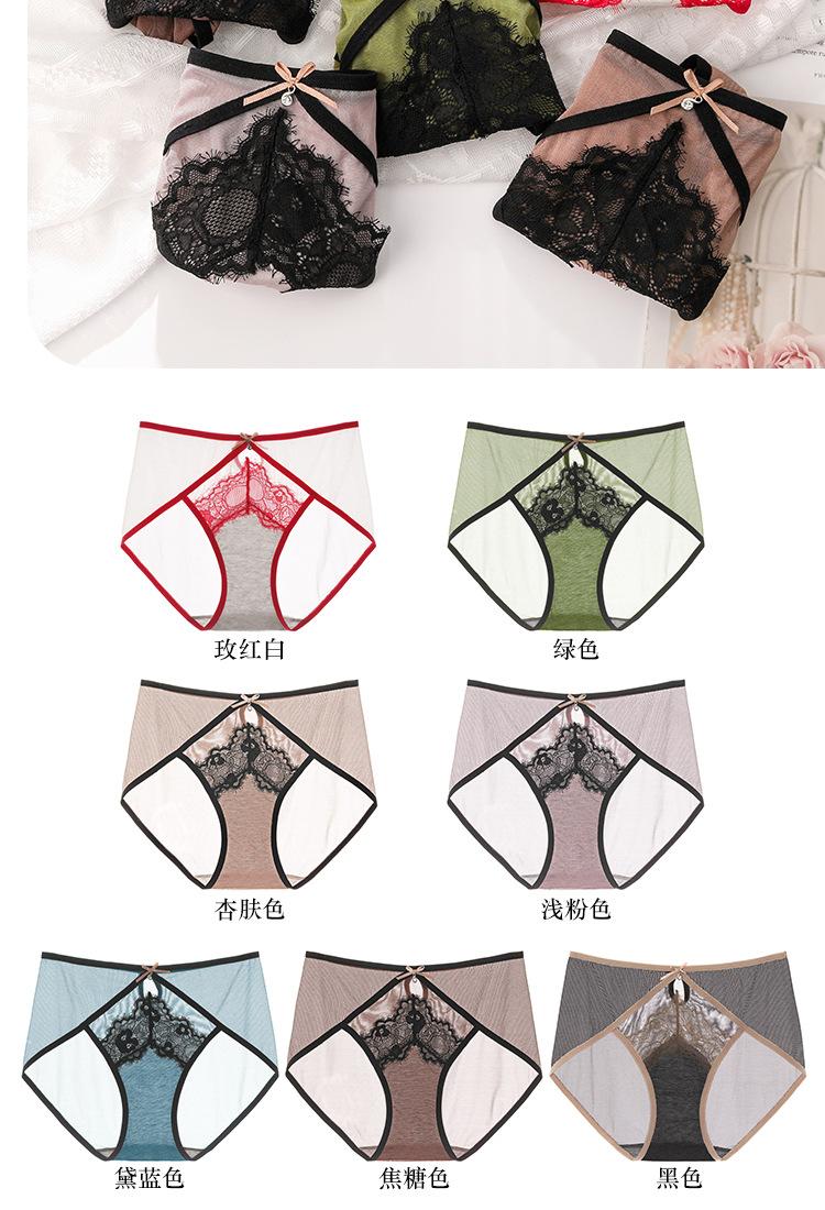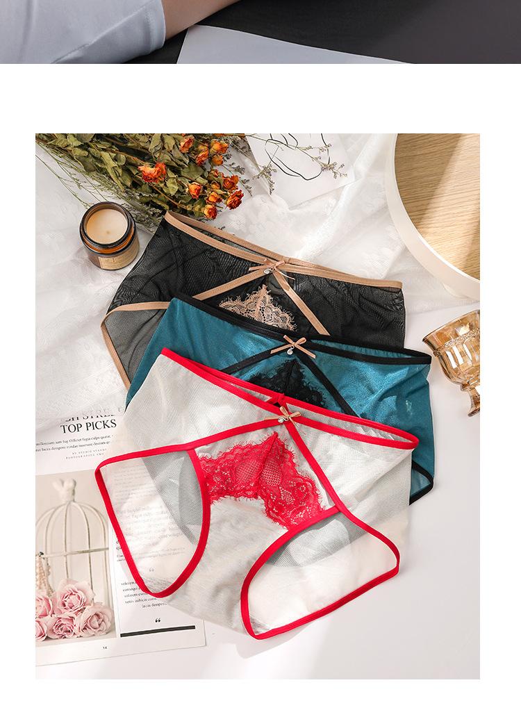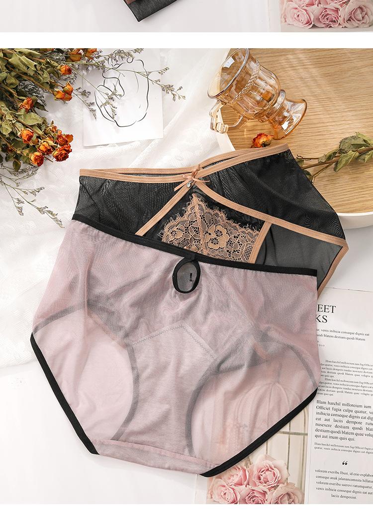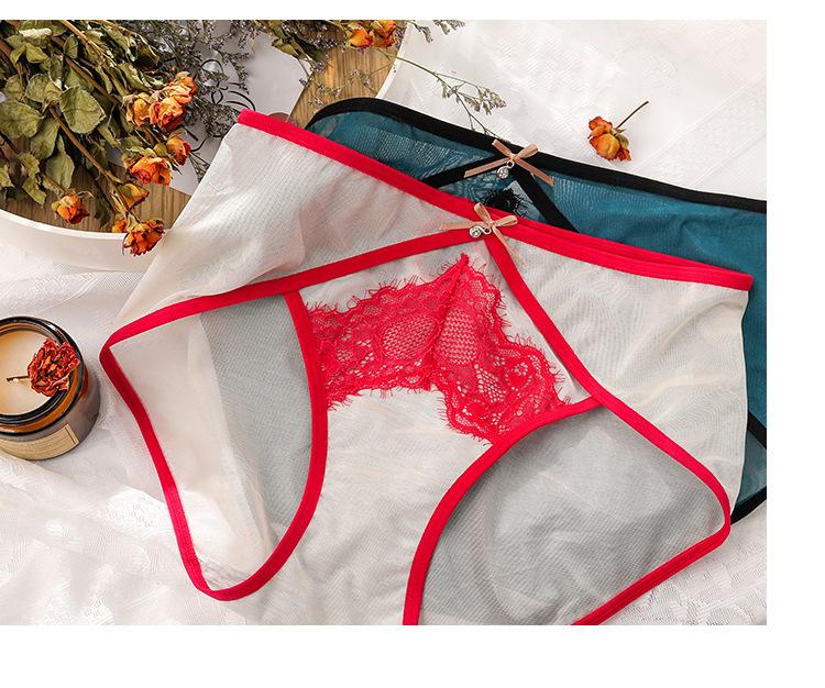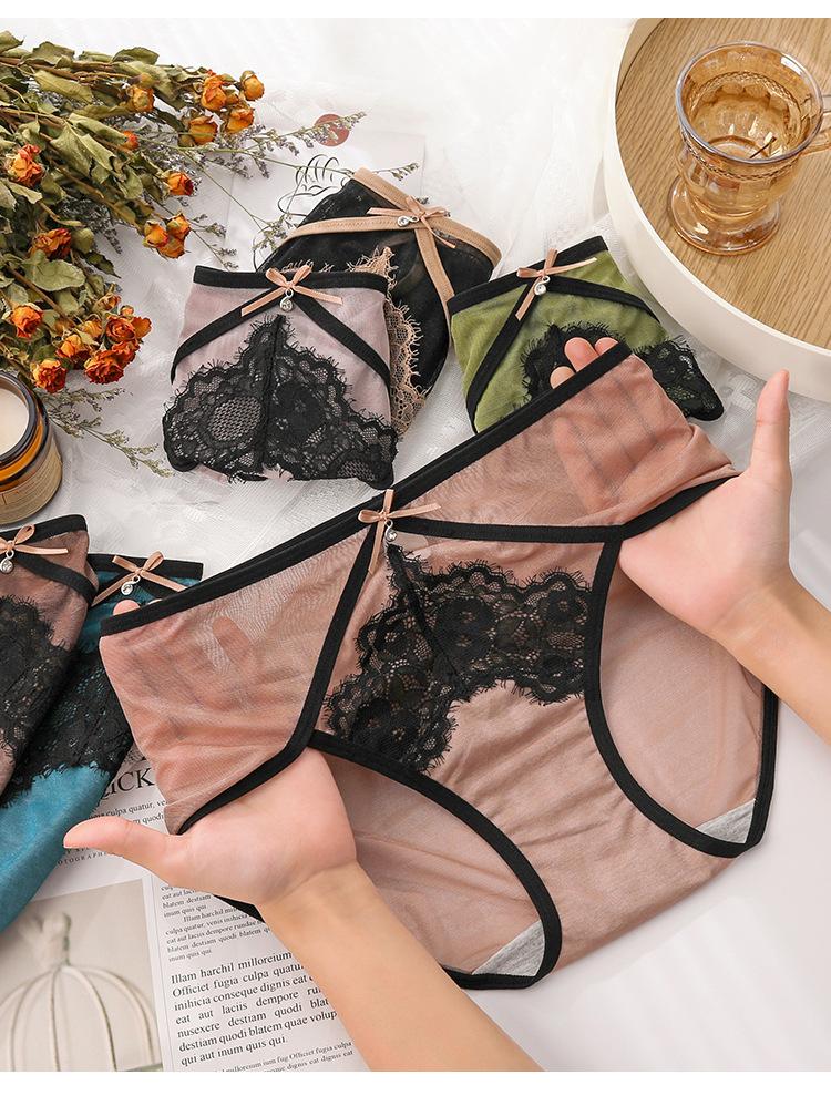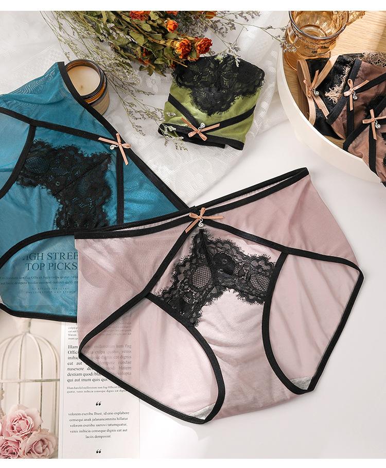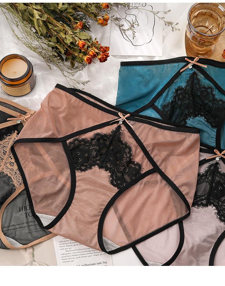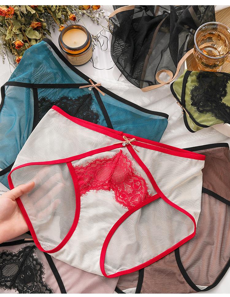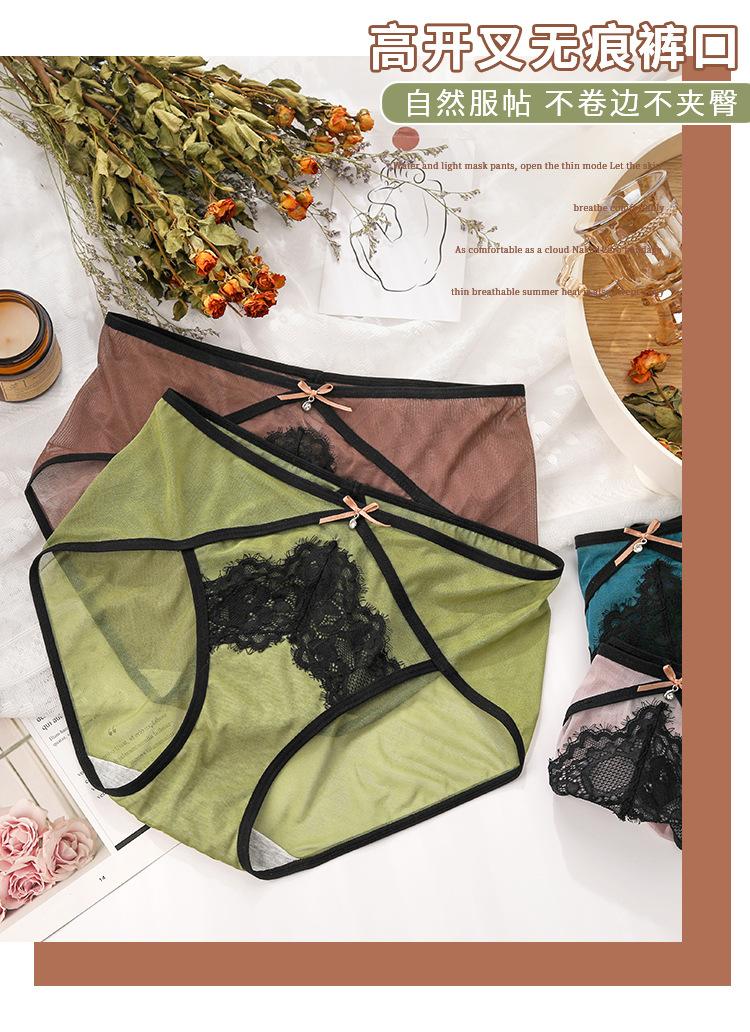 Ropa interior de mujer de encaje de cintura media, transpirable, sin costuras, sexy, de malla transparente, de algodón hueco, entrepierna, bragas para mujer