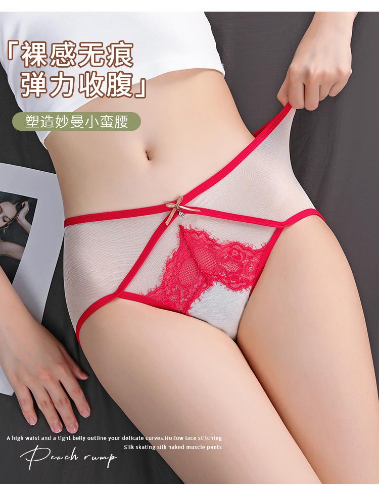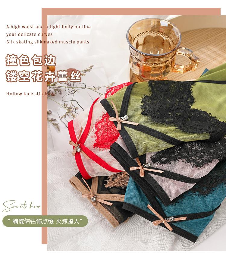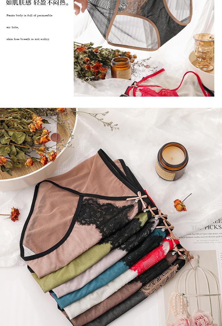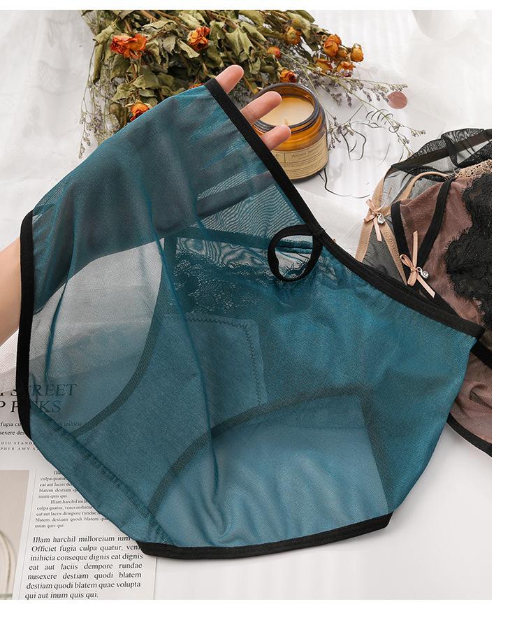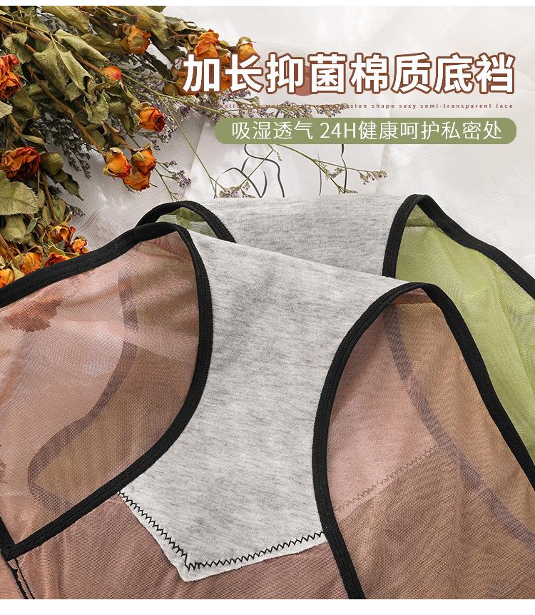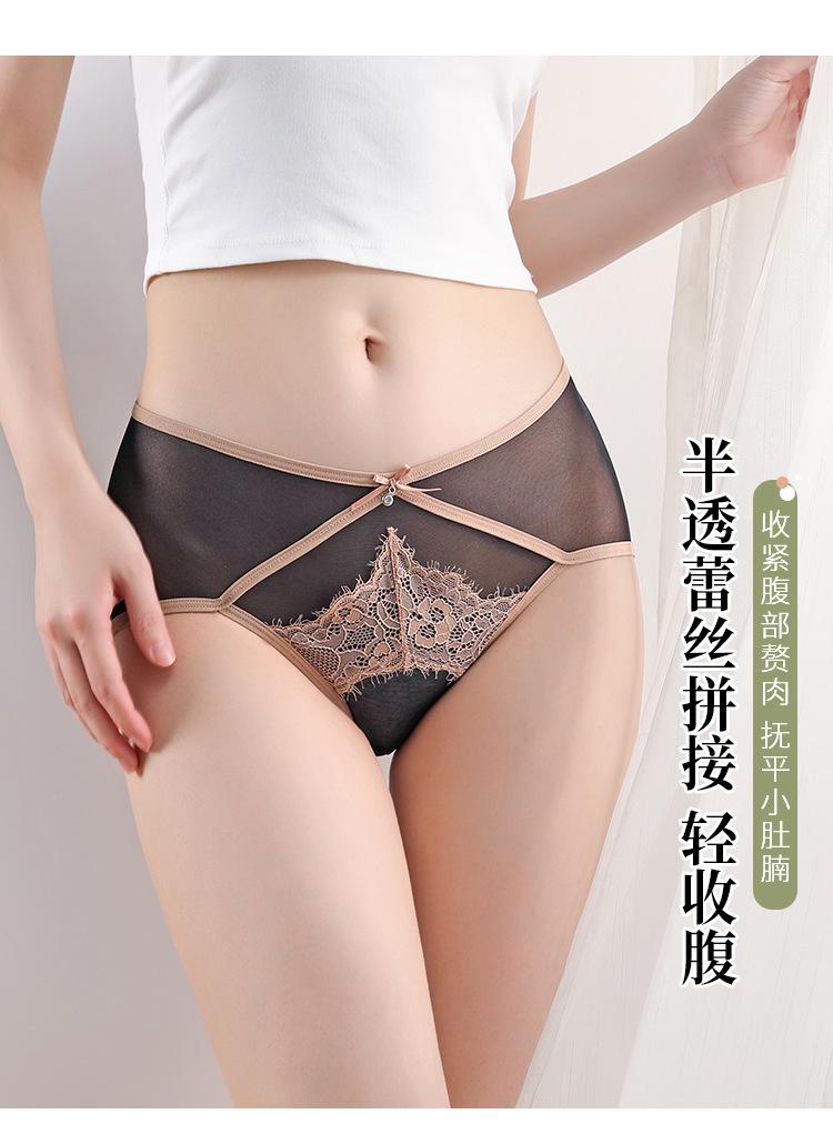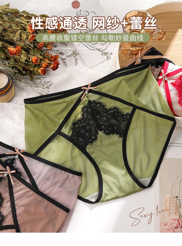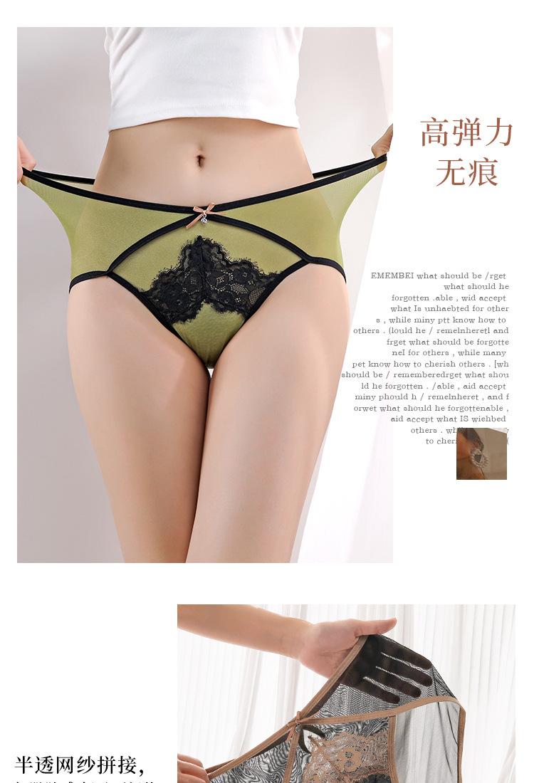Ropa interior de mujer de encaje de cintura media, transpirable, sin costuras, sexy, de malla transparente, de algodón hueco, entrepierna, bragas para mujer