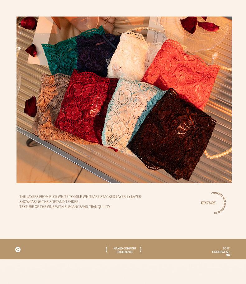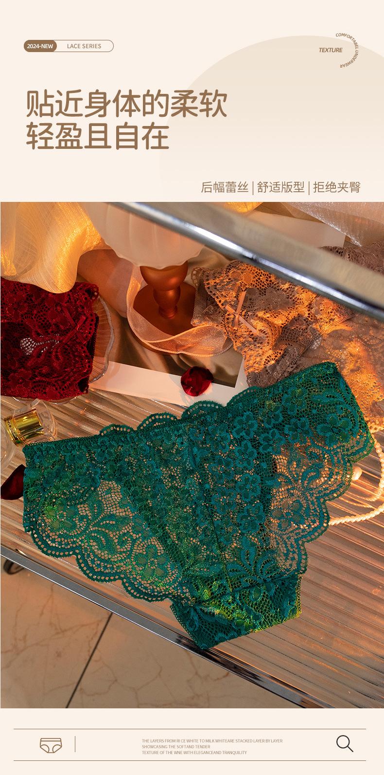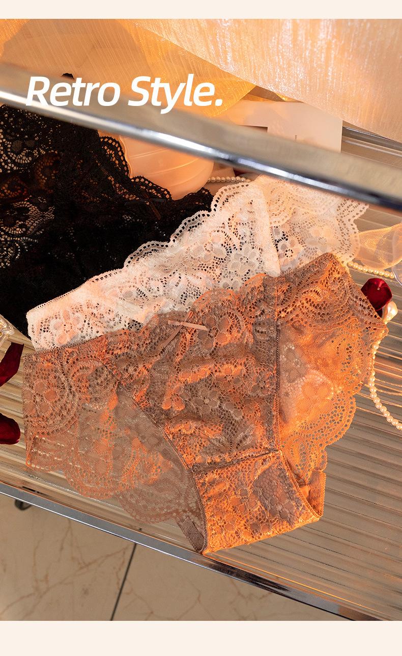 Ropa interior de encaje de lujo para mujer, ligera, de malla, sexy, de cintura baja, de algodón, cómoda, 2025