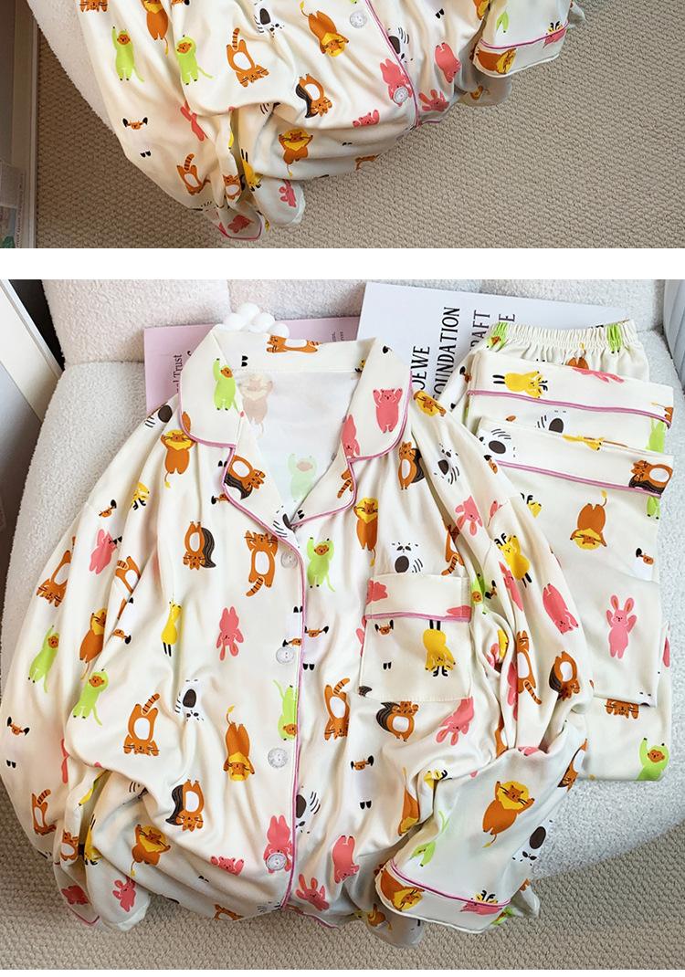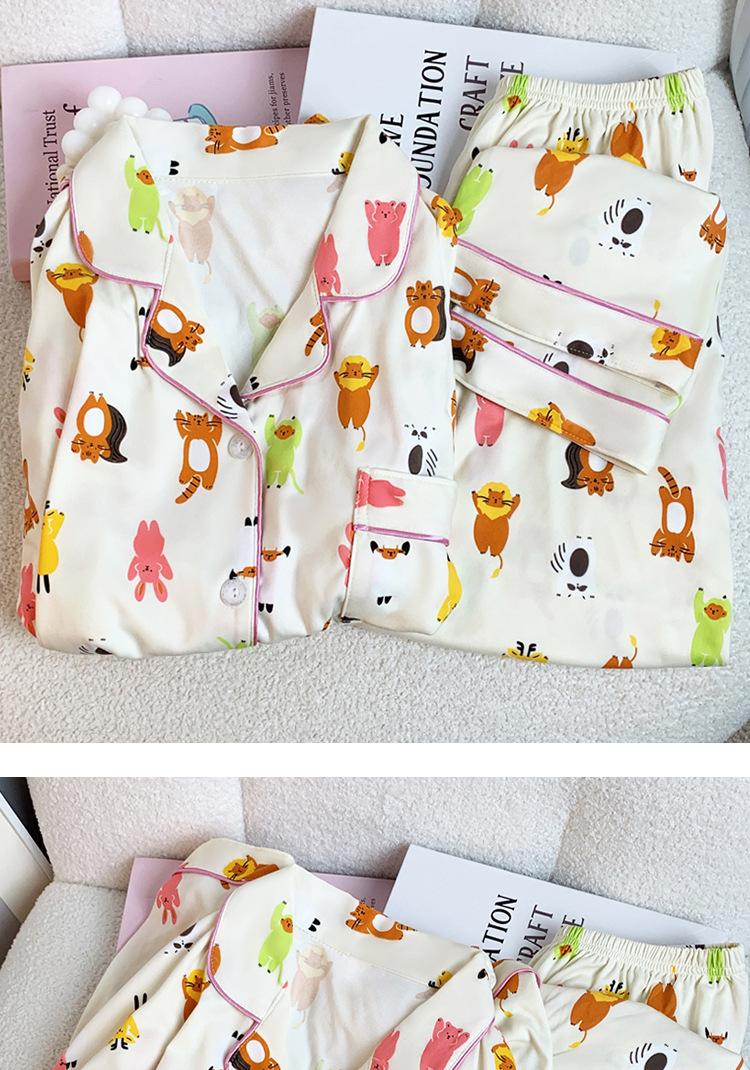 Pijama Perezoso con Estampado de Animales de Dibujos Animados para Mujer Primavera y Otoño Traje de Pantalones de Manga Larga Cómodo y Puede Usarse Afuera Foto Real Venta al por Mayor