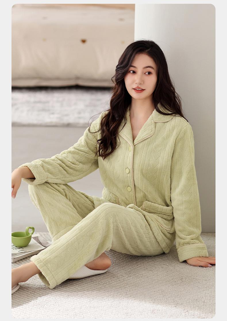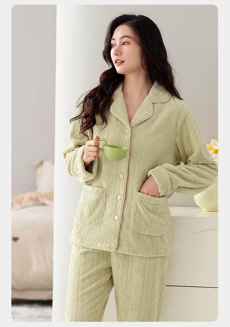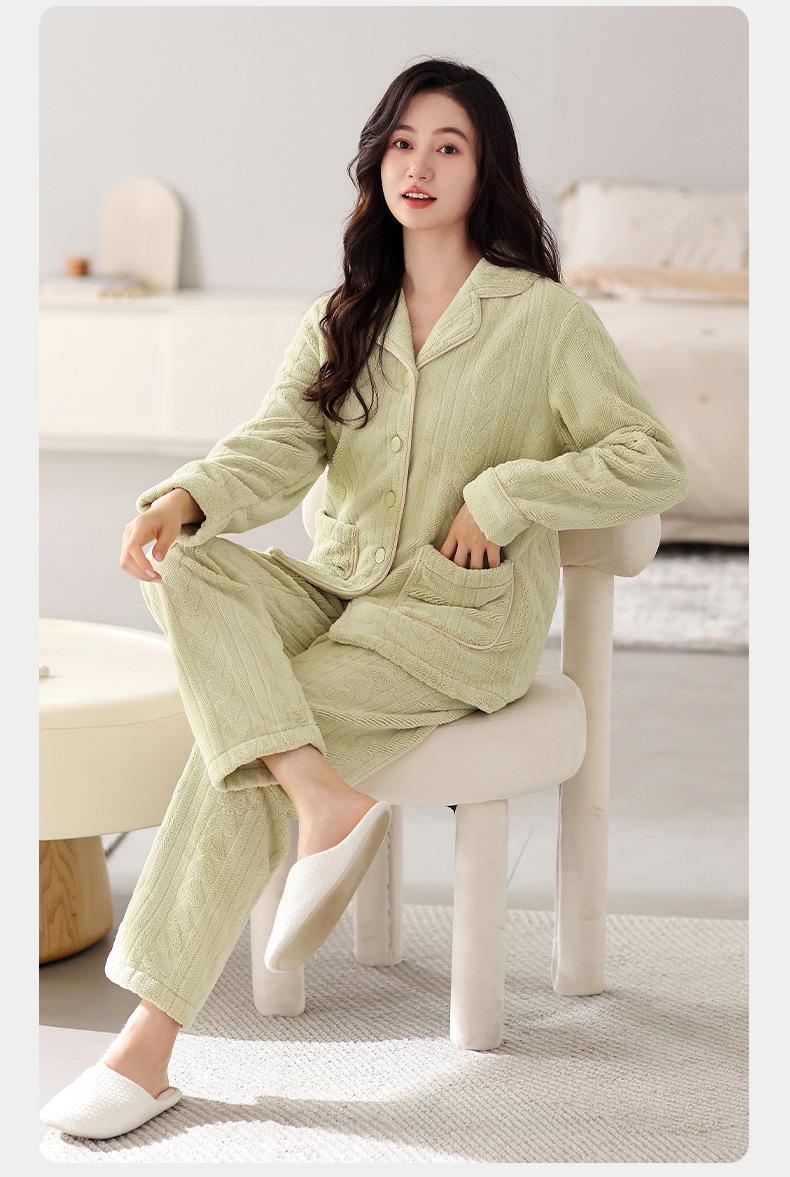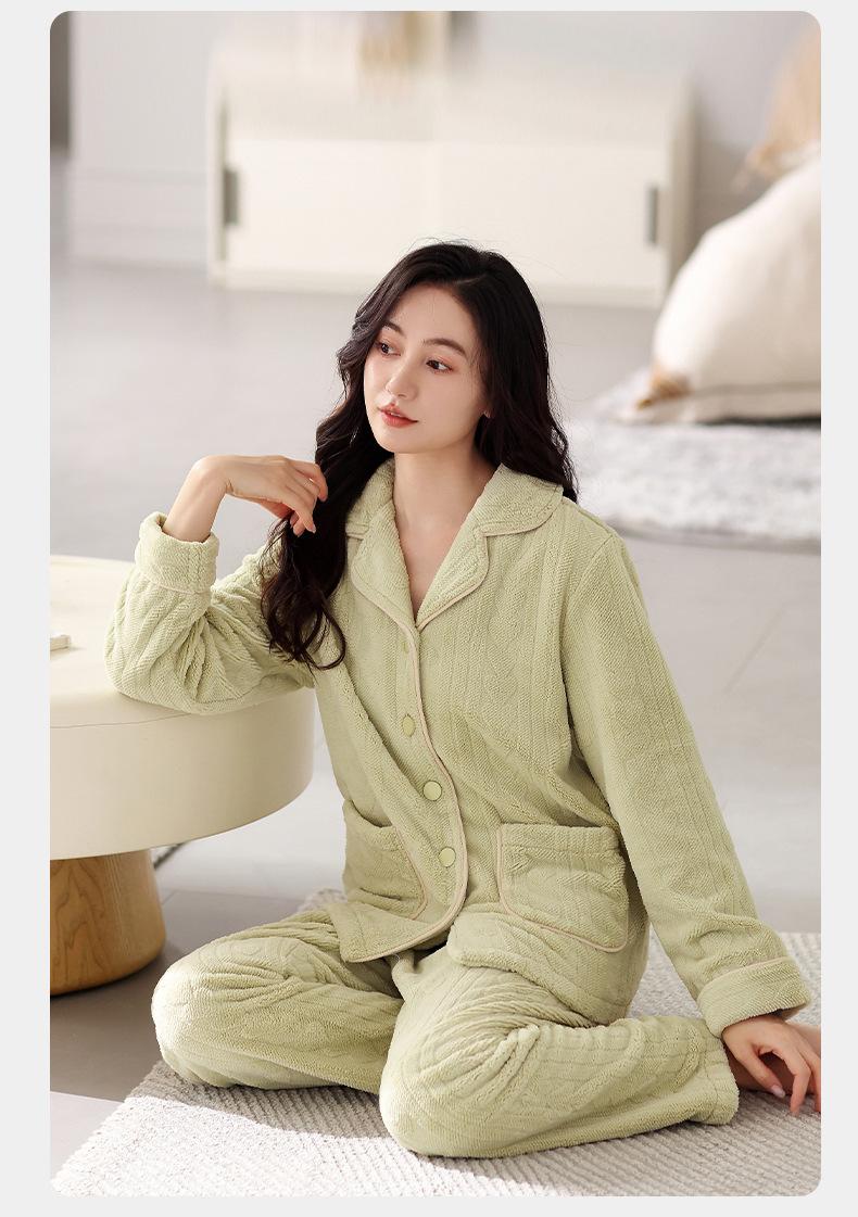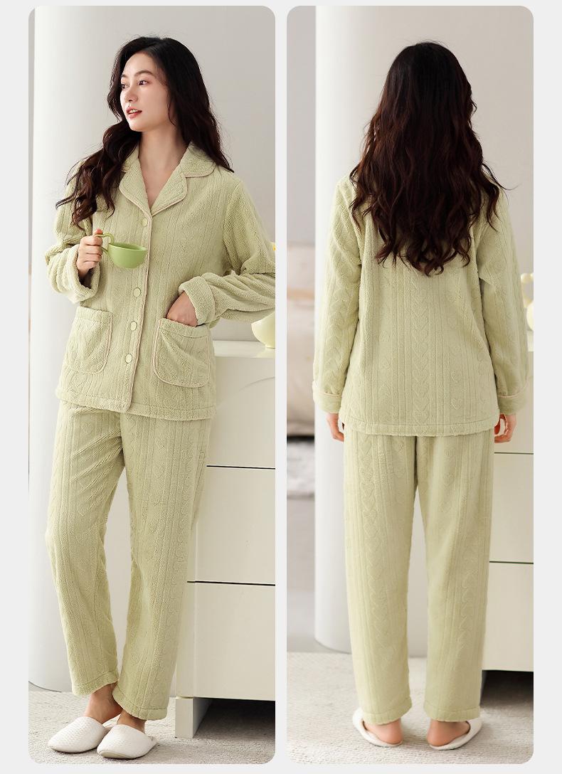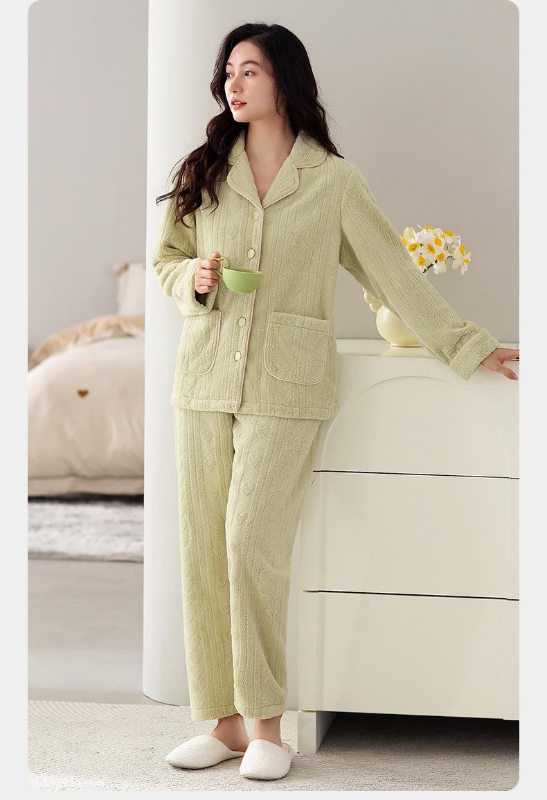 Pijama de terciopelo coral verde menta para mujer, otoño e invierno, forro polar grueso, nuevo traje de terciopelo cálido para el hogar 2024