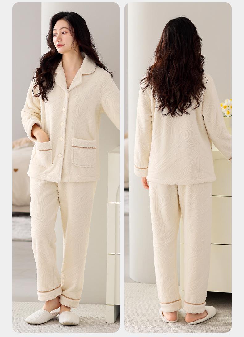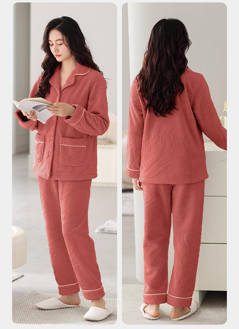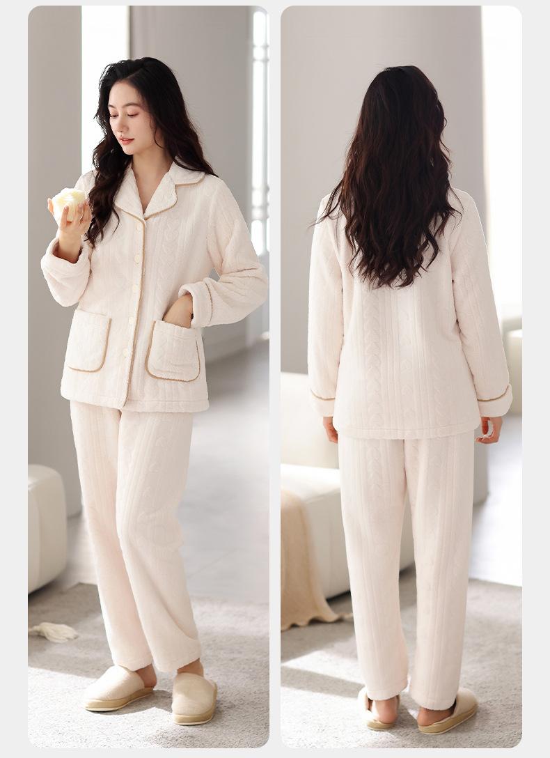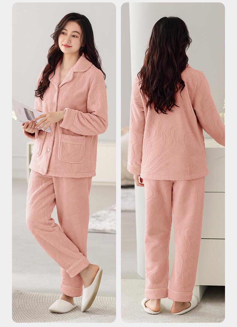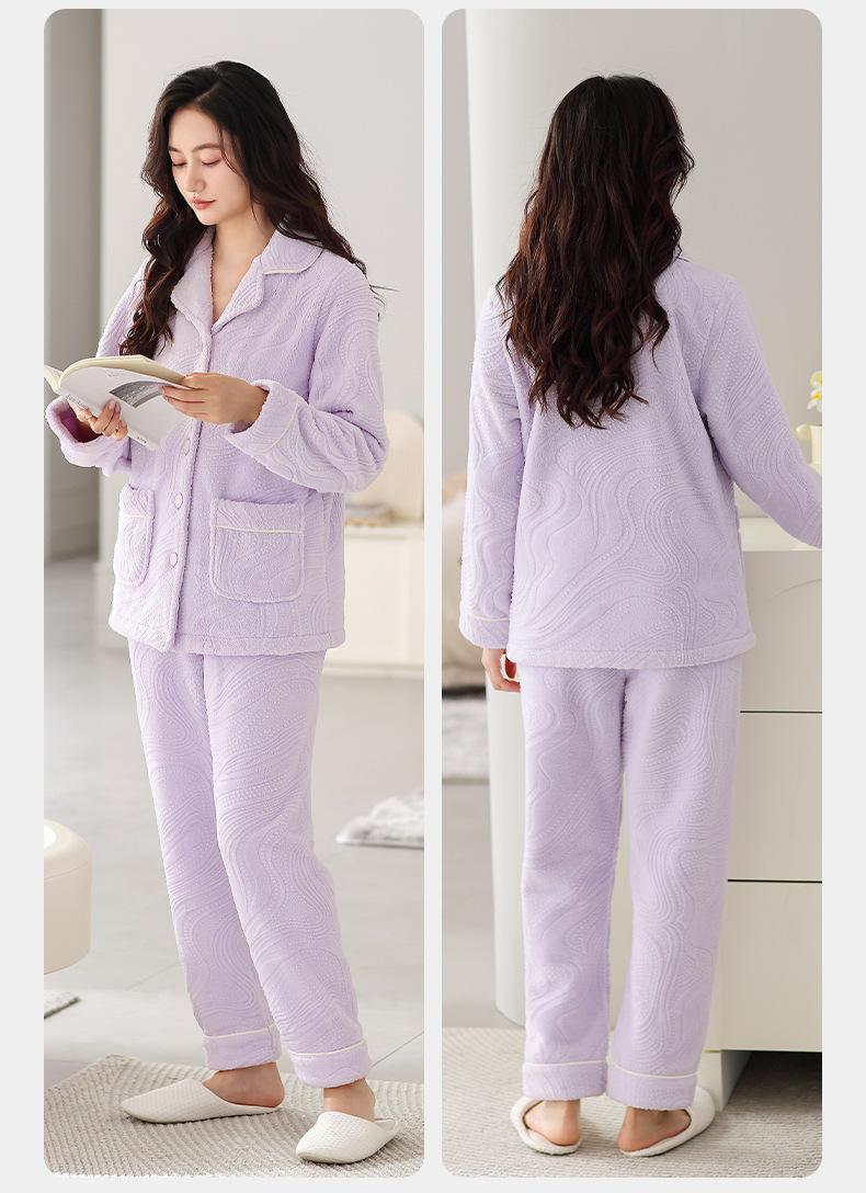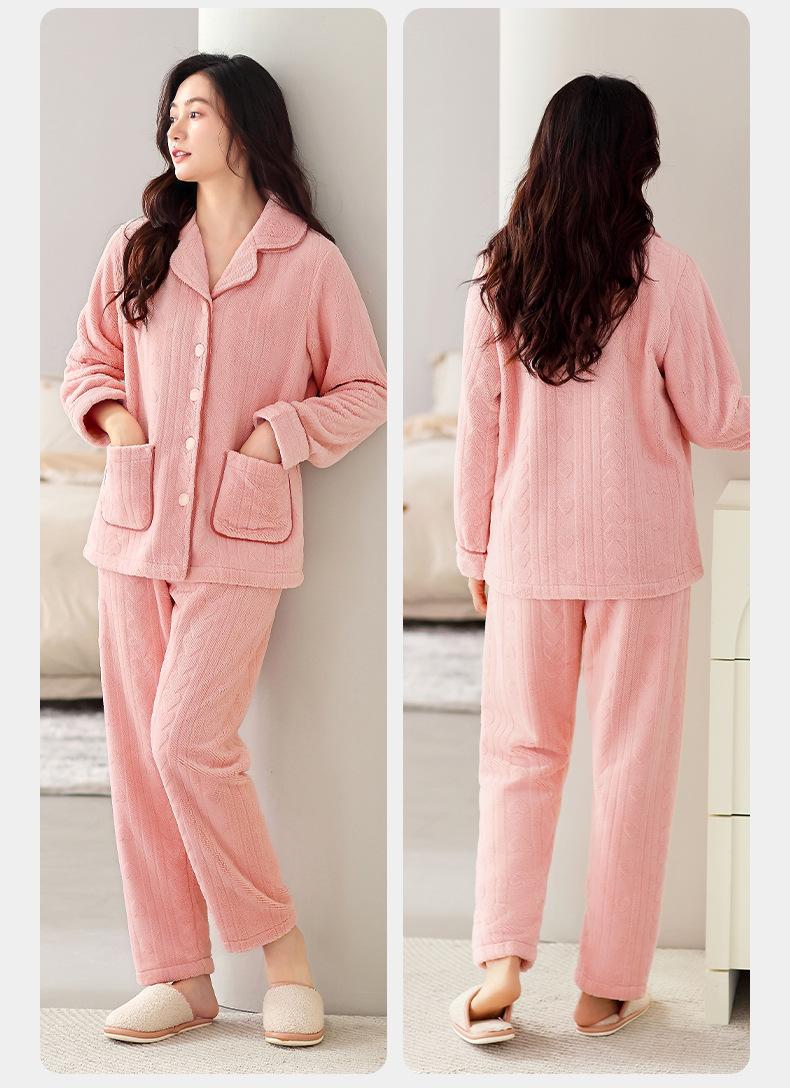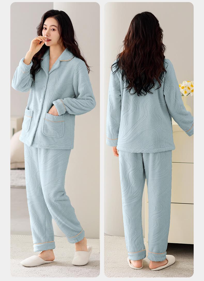Pijama de terciopelo coral verde menta para mujer, otoño e invierno, forro polar grueso, nuevo traje de terciopelo cálido para el hogar 2024