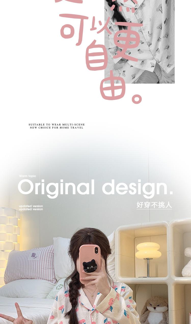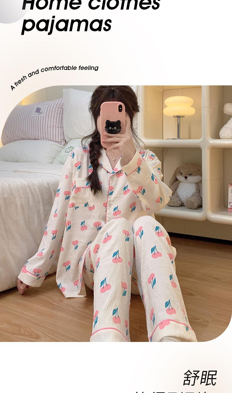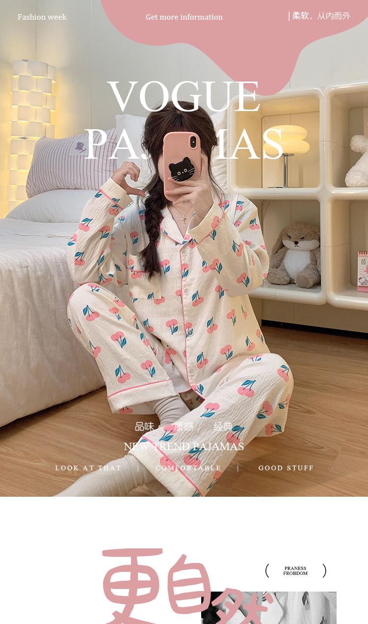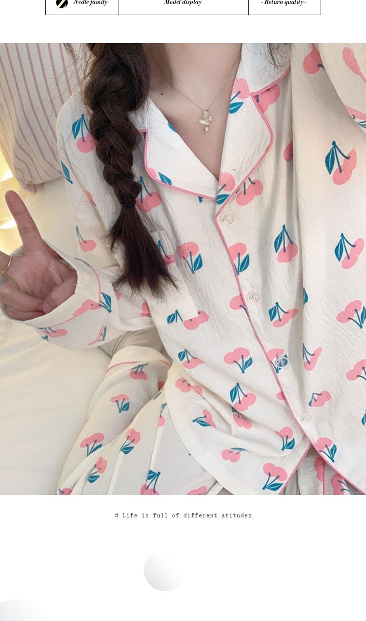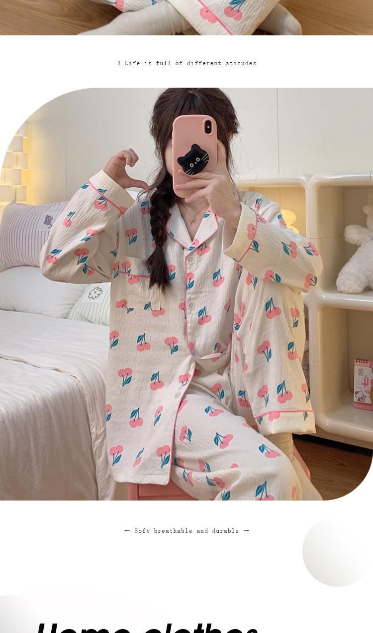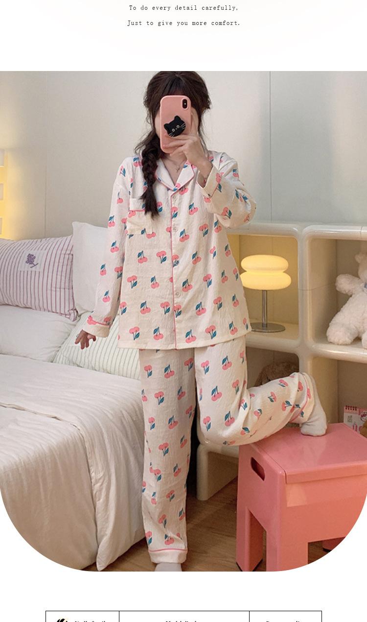 Pijama de cereza dulce para mujer, pantalones de manga larga de algodón con nubes de otoño, para fiestas de estudiantes, se puede usar como traje al por mayor