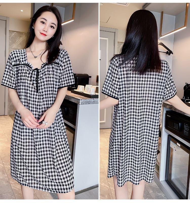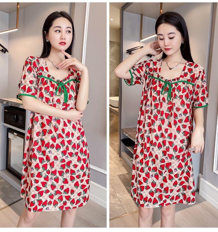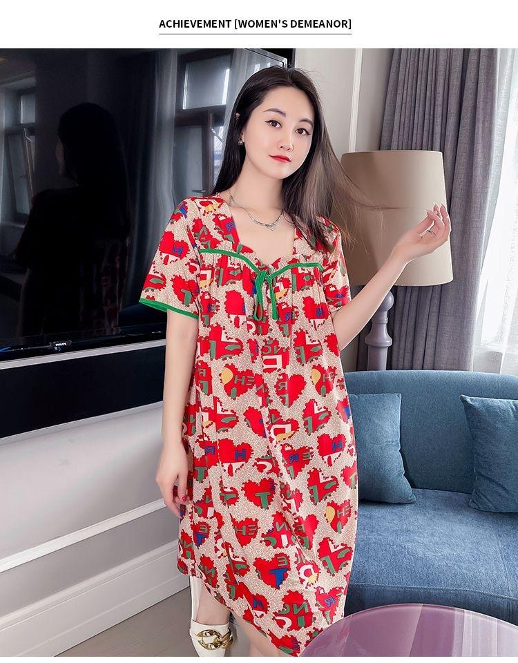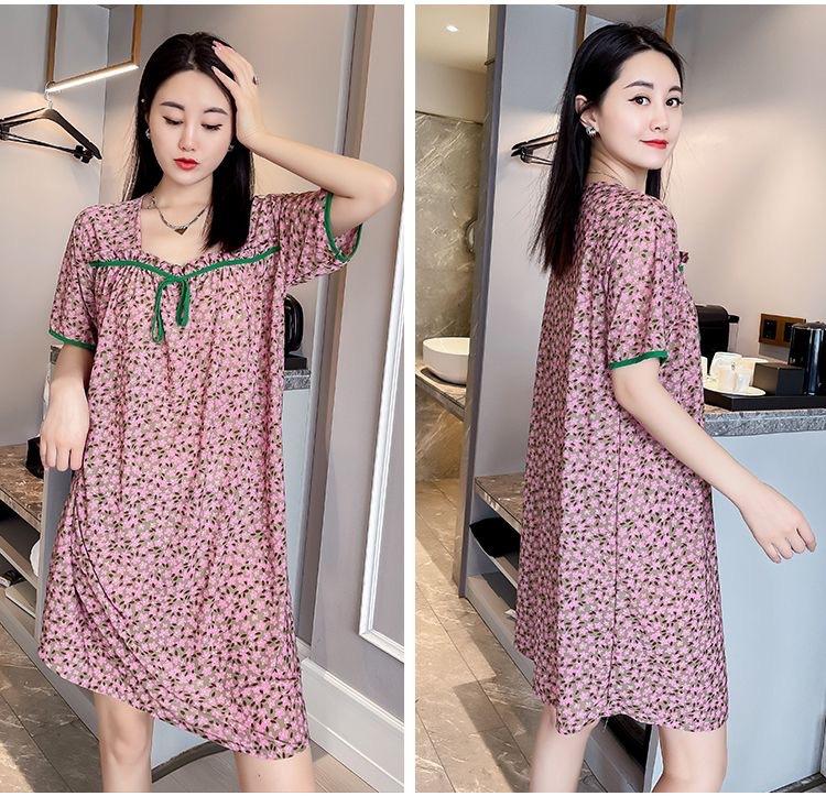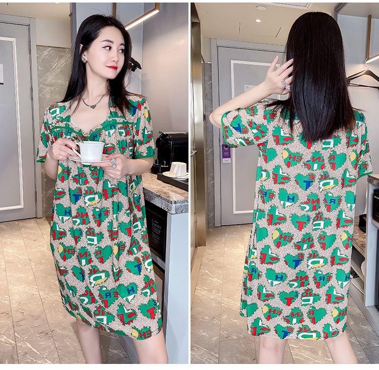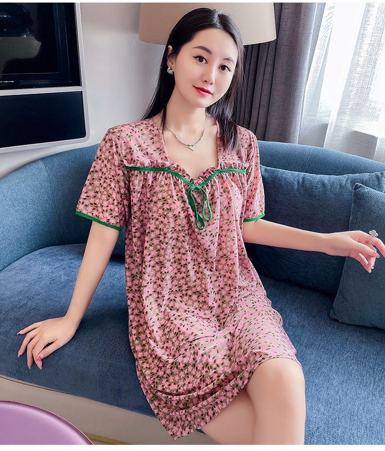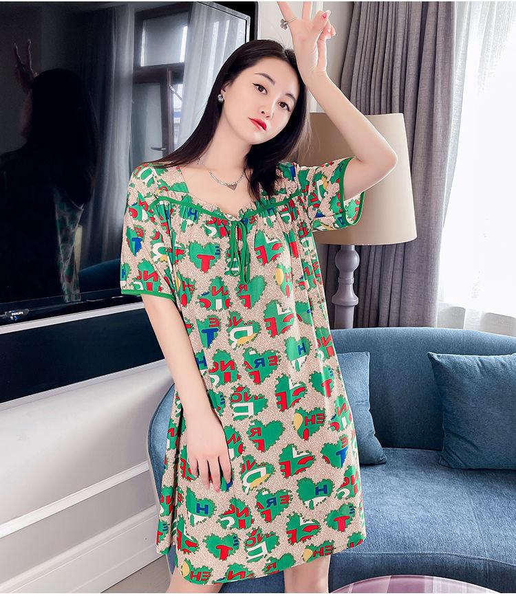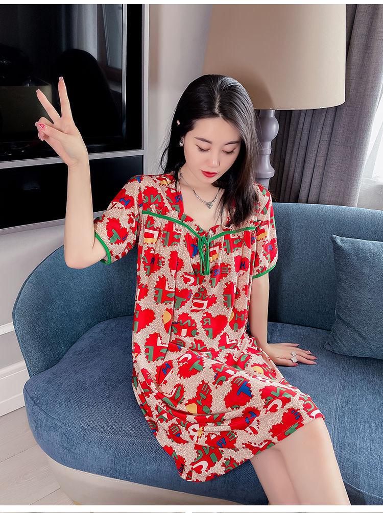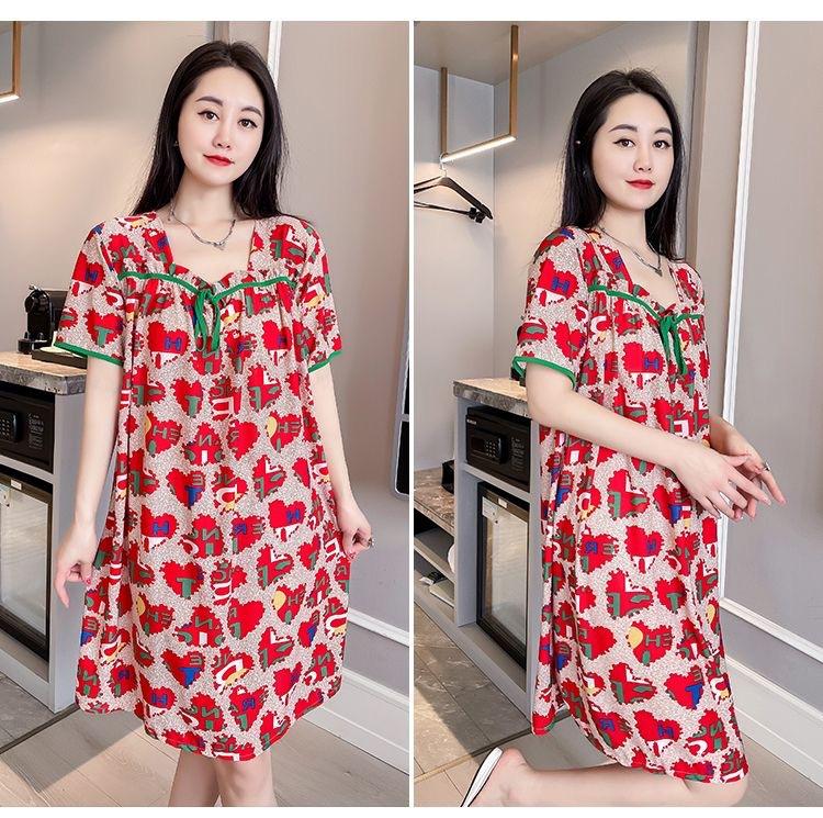 2025 Nuevo Camisón de Verano para Mujer, Pijama de Moda Adelgazante Holgado Fino de Seda de Hielo que se Puede Usar Fuera Ropa para el Hogar Vestido