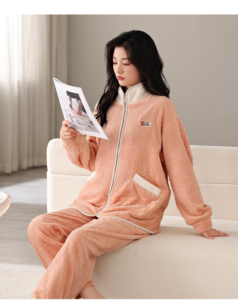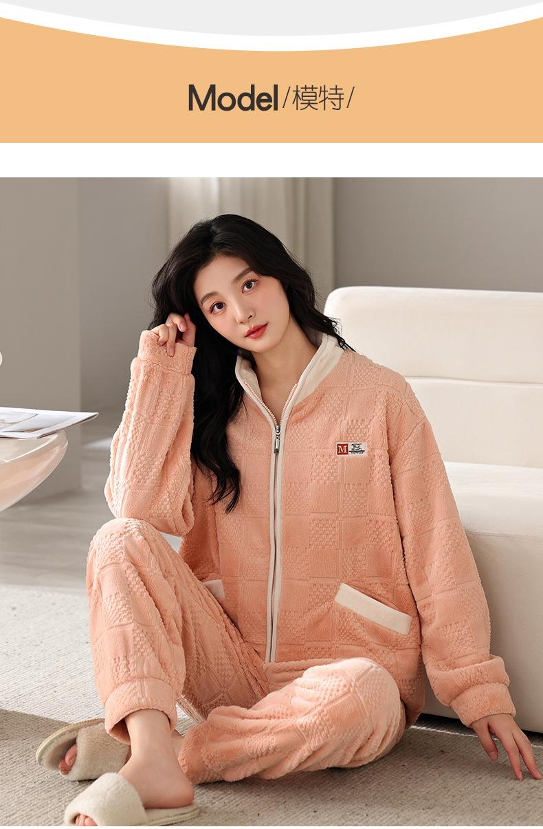Pijama Invierno Mujer Forro Polar Coral Mujer Forrado de Polar Grueso Cálido Otoño/Invierno Franela Mujer Nuevo Traje Ropa de Casa