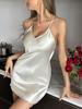 Camisón de verano con falda de seda sexy sin espalda, estilo europeo y americano, de estilo transfronterizo, de seda hielo fina mediana
