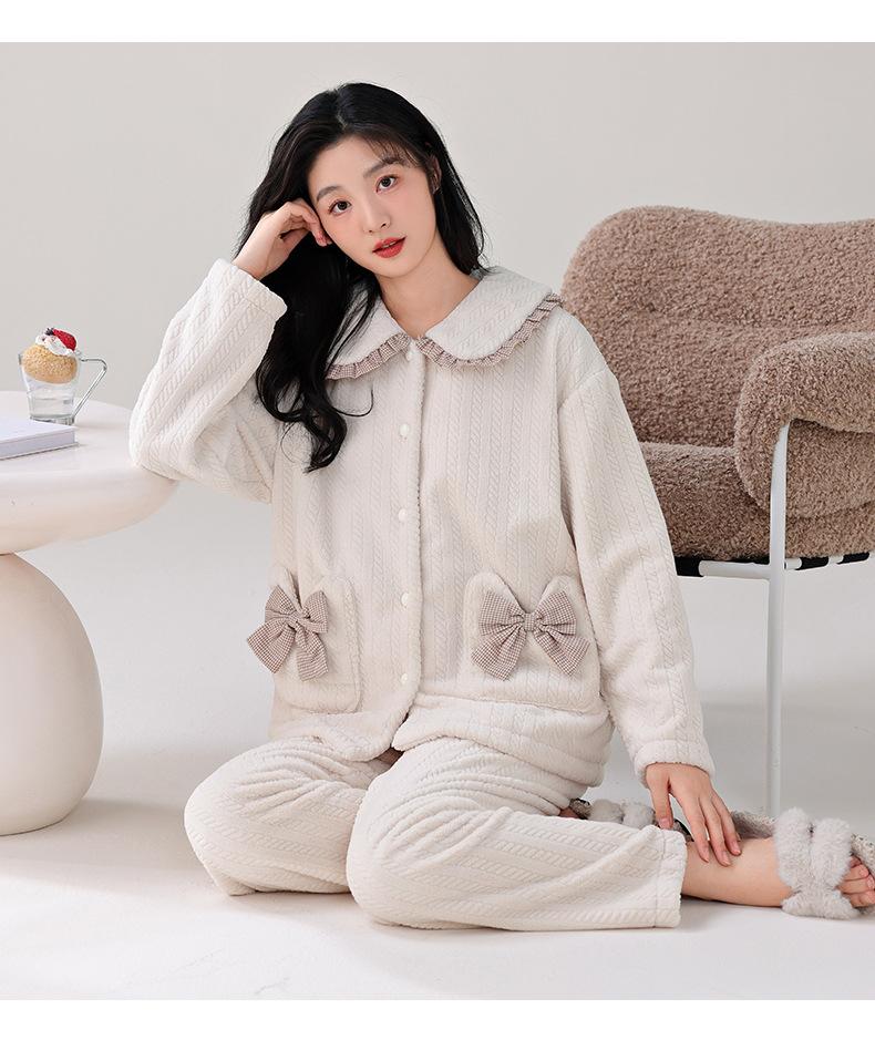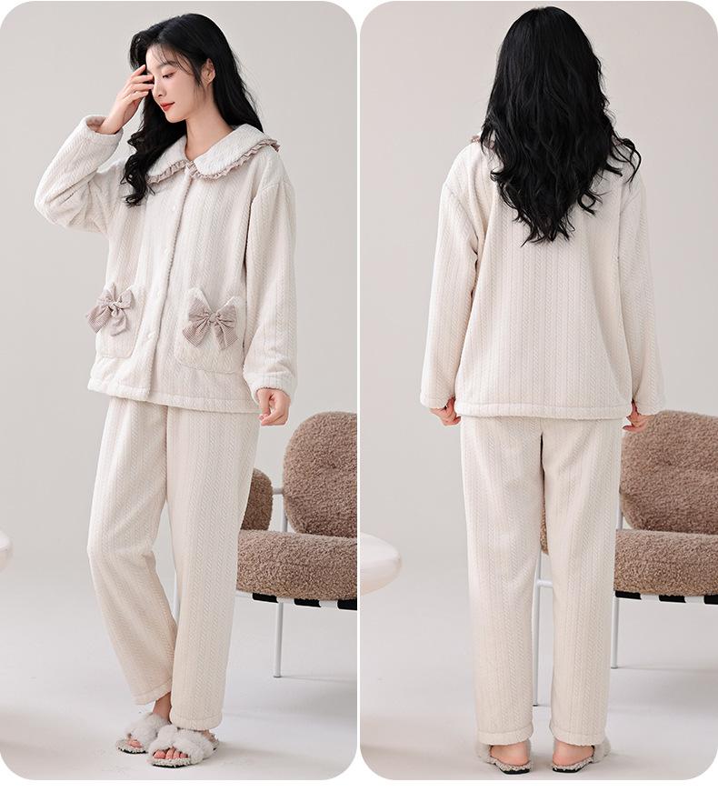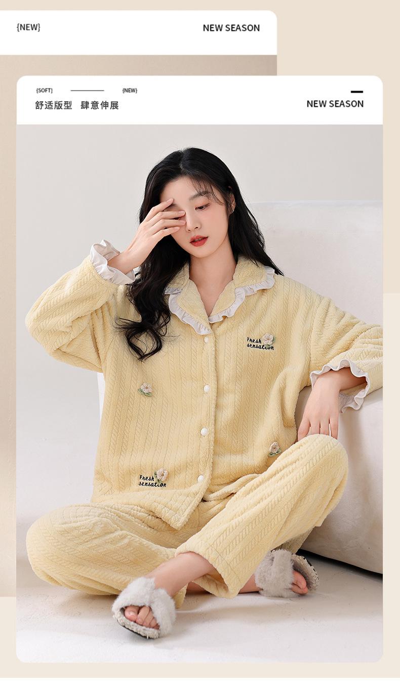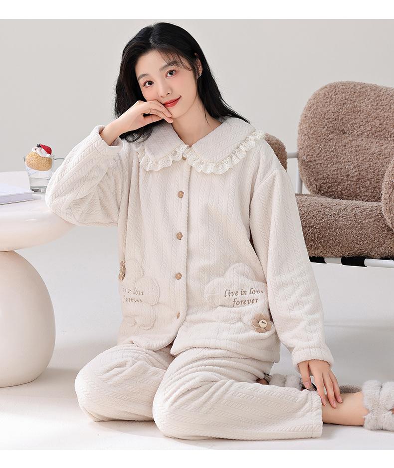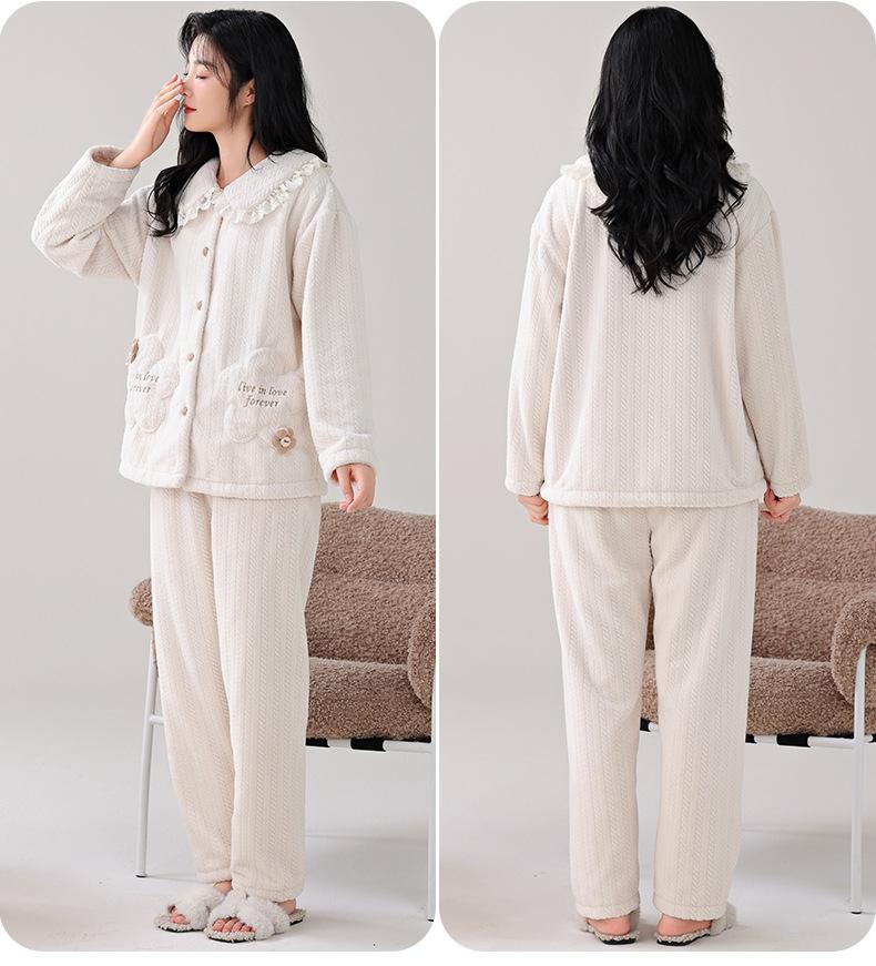 Coral velvet pajamas flannel pajamas winterthickened pajamas for women