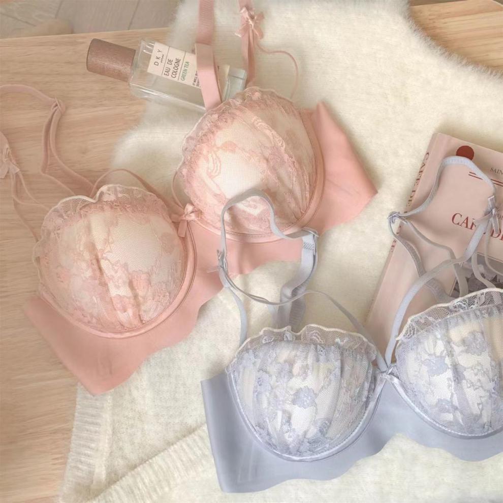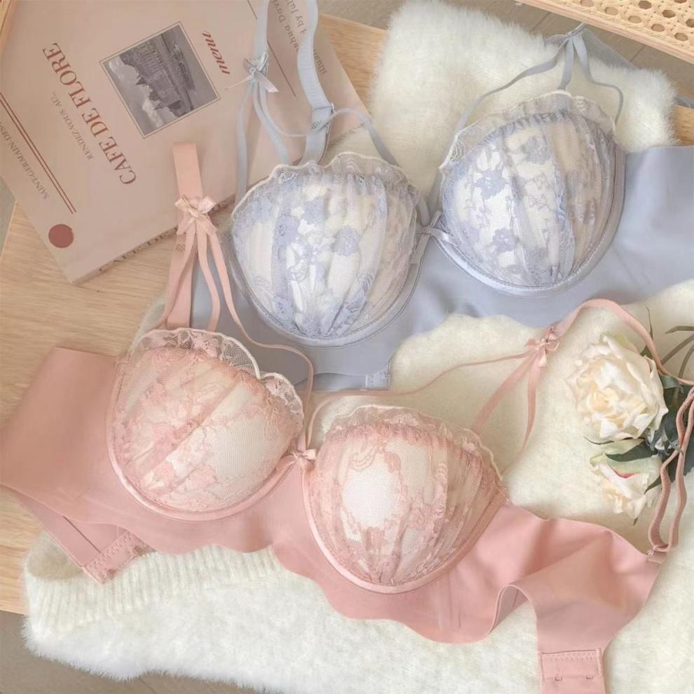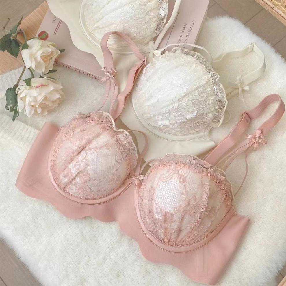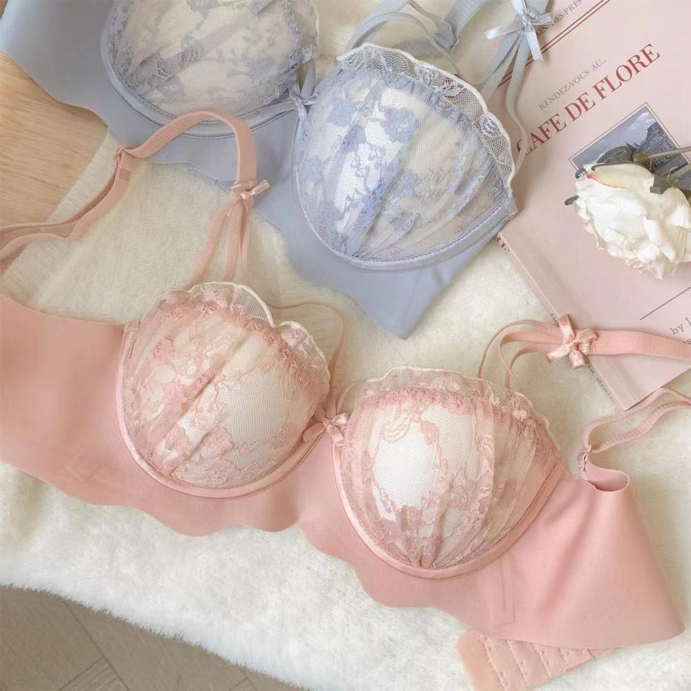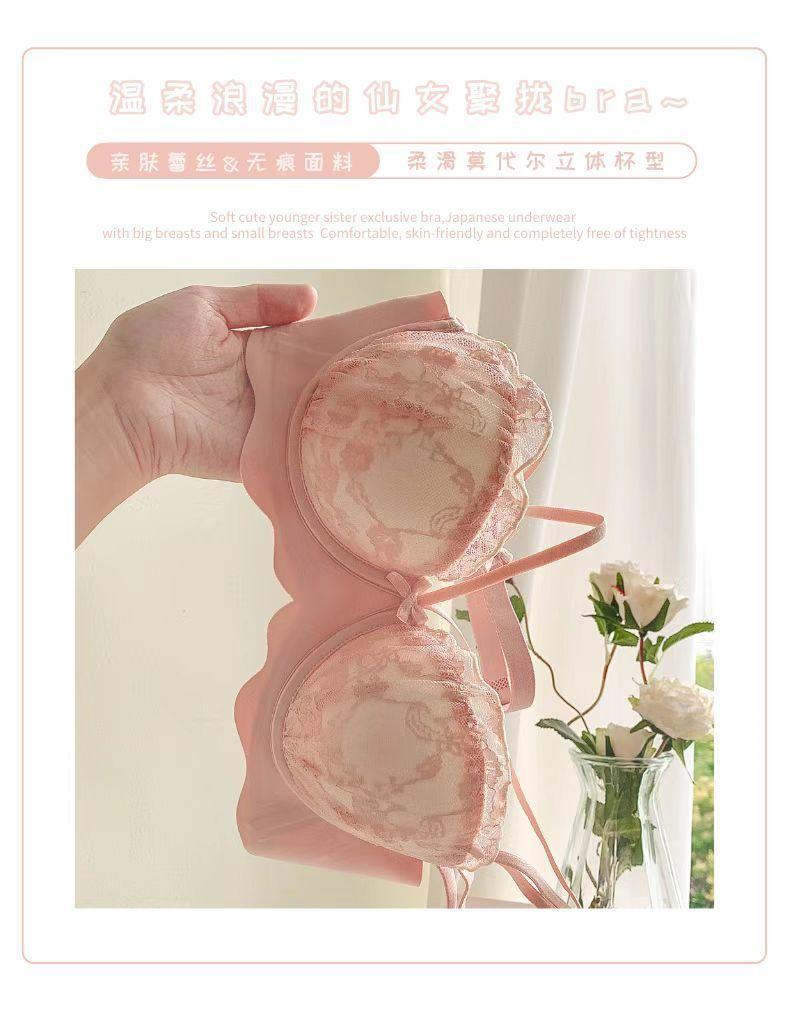 Conjunto de lencería de encaje dulce sin aros para niña, sujetador push-up con pecho pequeño y antiflacidez.