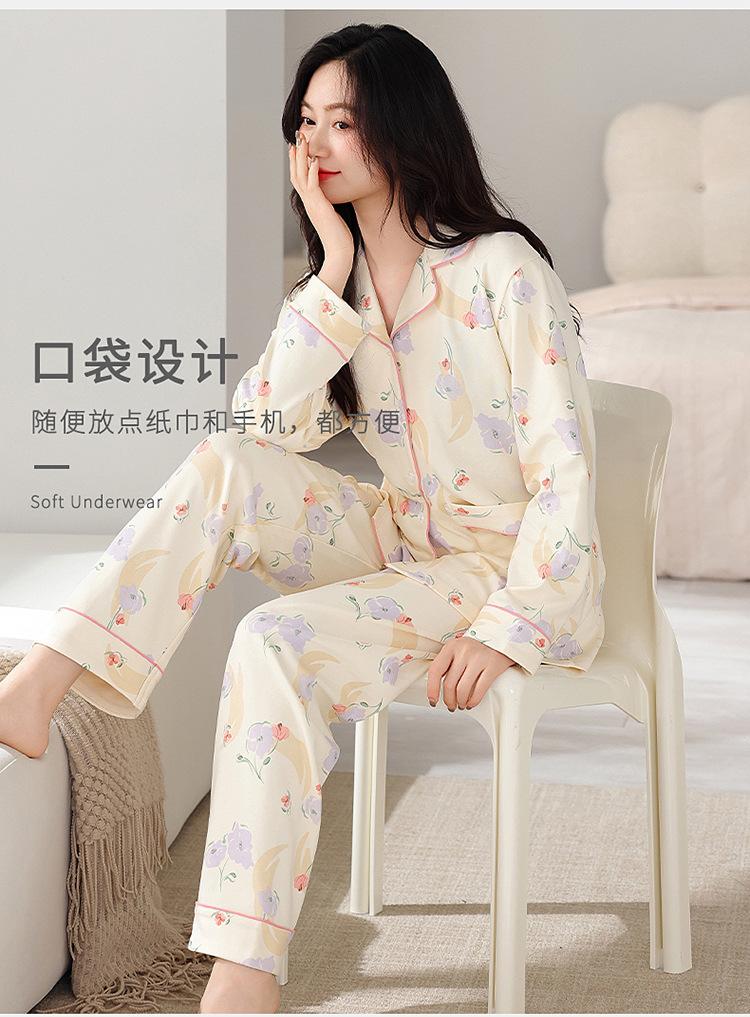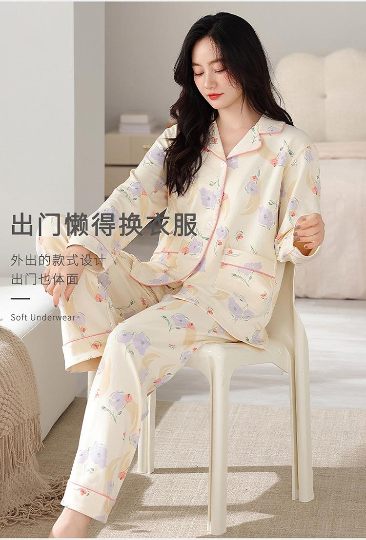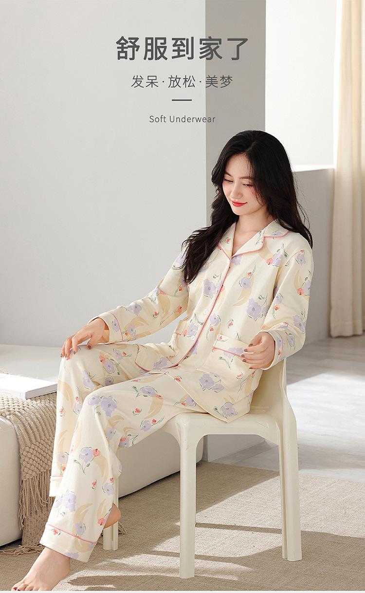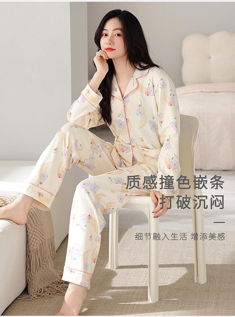 Pijama de algodón para mujer, otoño e invierno, nuevo cárdigan de manga larga con estampado dulce, ropa informal de talla grande de algodón para el hogar, traje de mujer