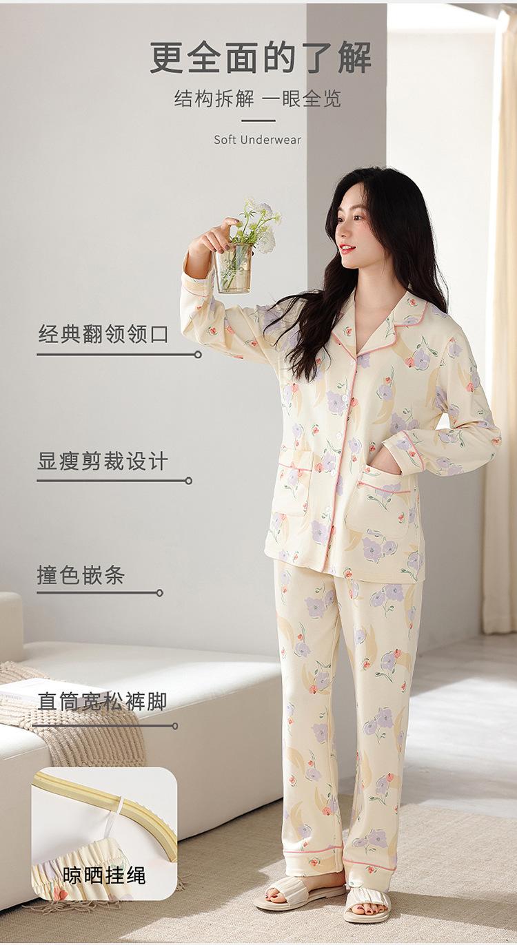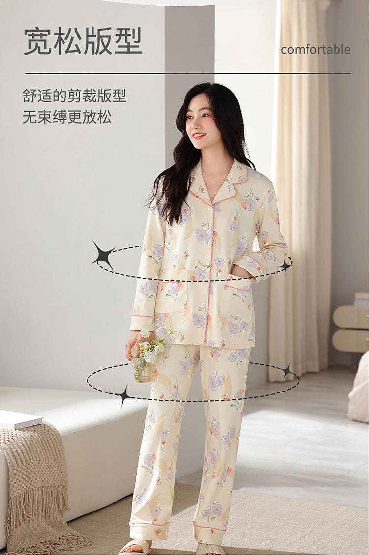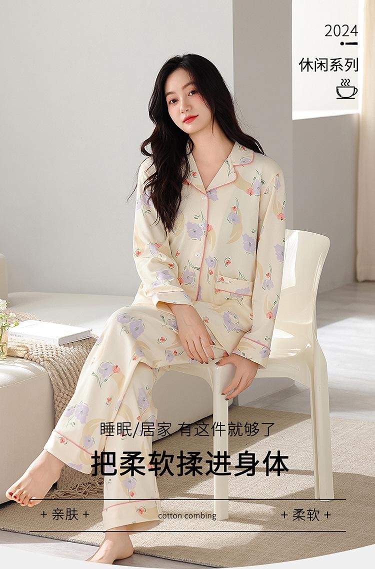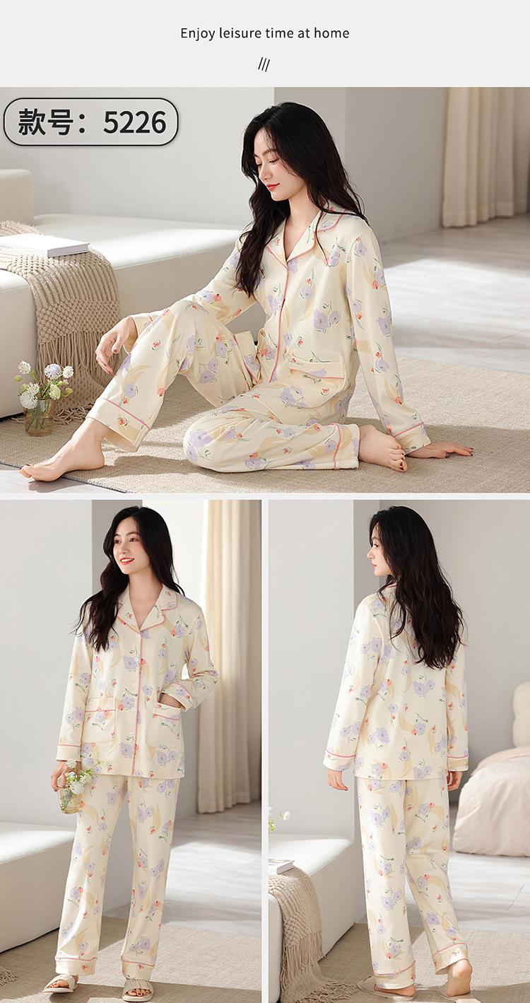 Pijama de algodón para mujer, otoño e invierno, nuevo cárdigan de manga larga con estampado dulce, ropa informal de talla grande de algodón para el hogar, traje de mujer