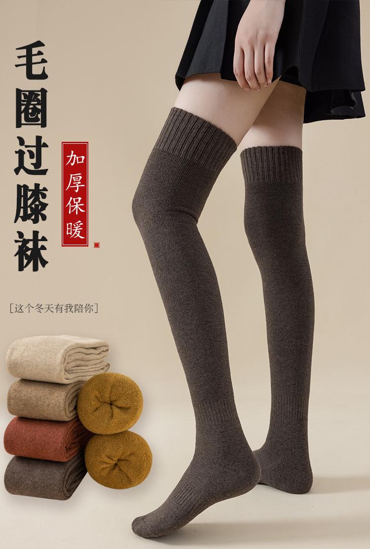 Calcetines Largos para Mujer para Otoño e Invierno Terry Gruesos Cálidos Calcetines por Encima de la Rodilla Color Puro Look Adelgazante Rodilleras Antideslizantes Calcetines Hasta el Muslo