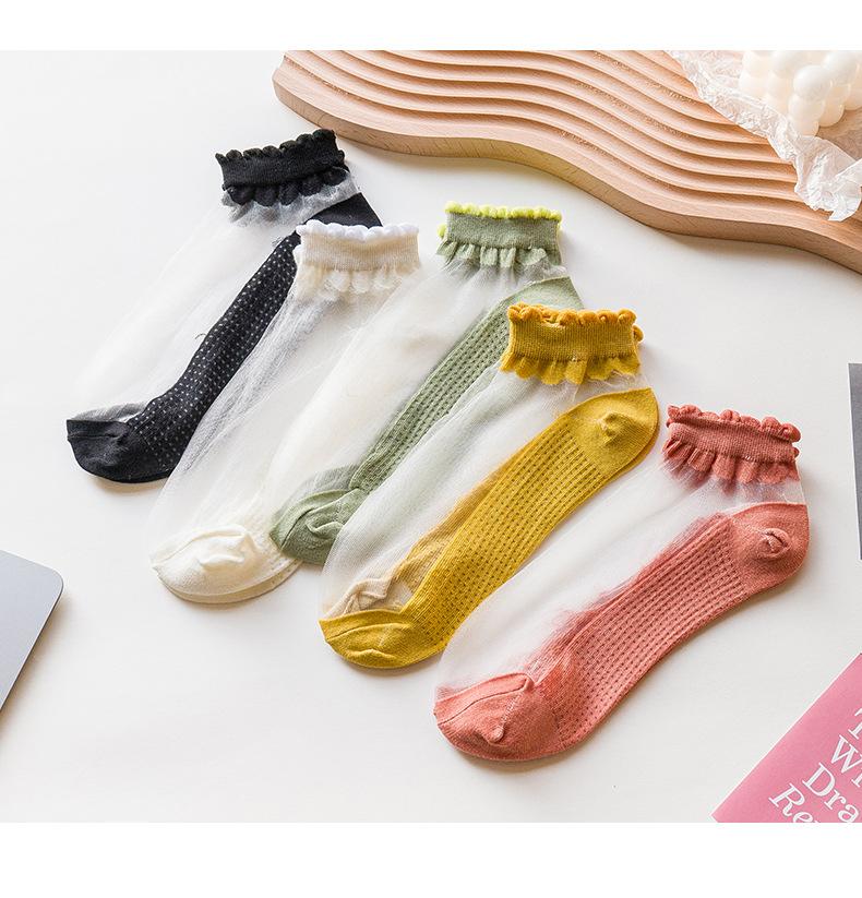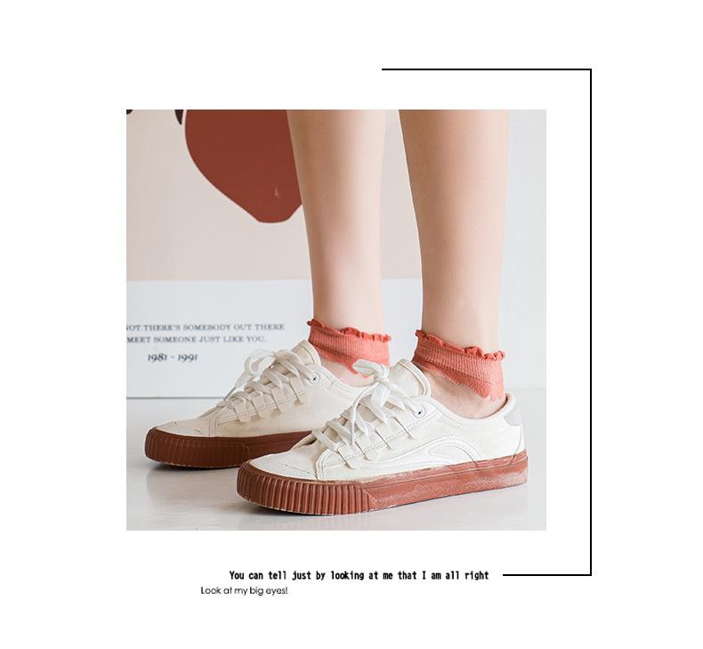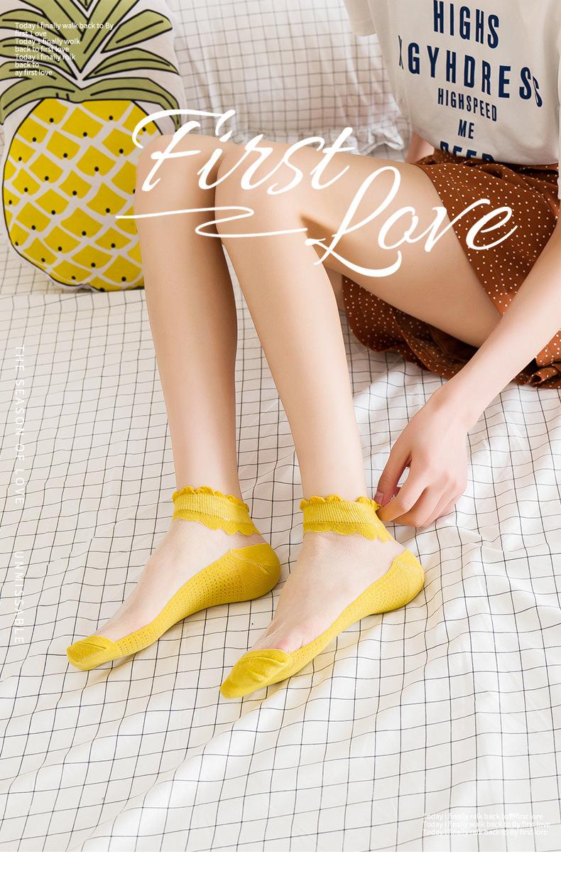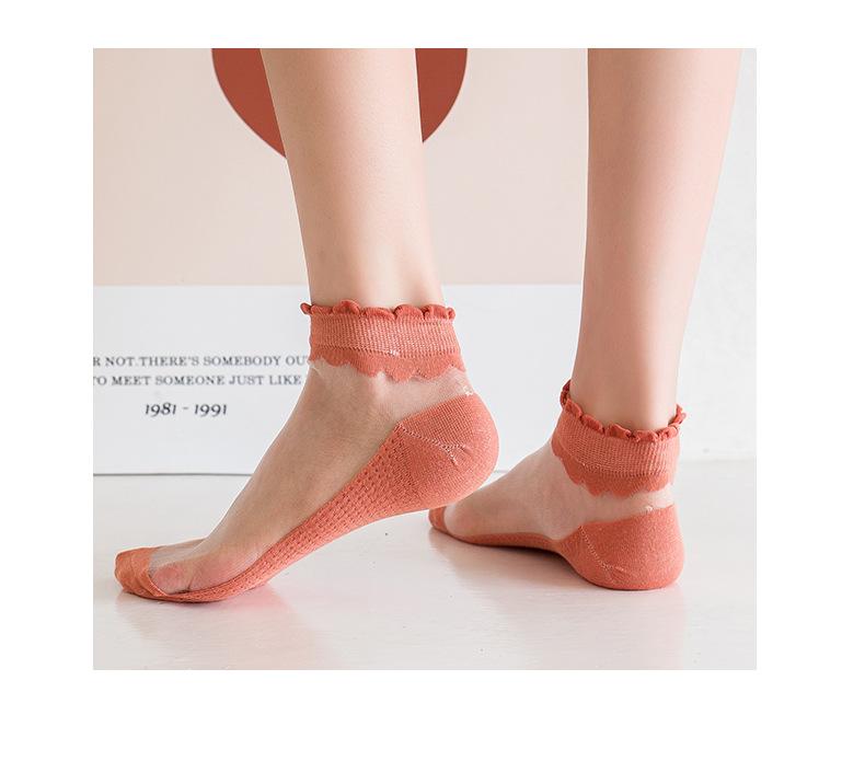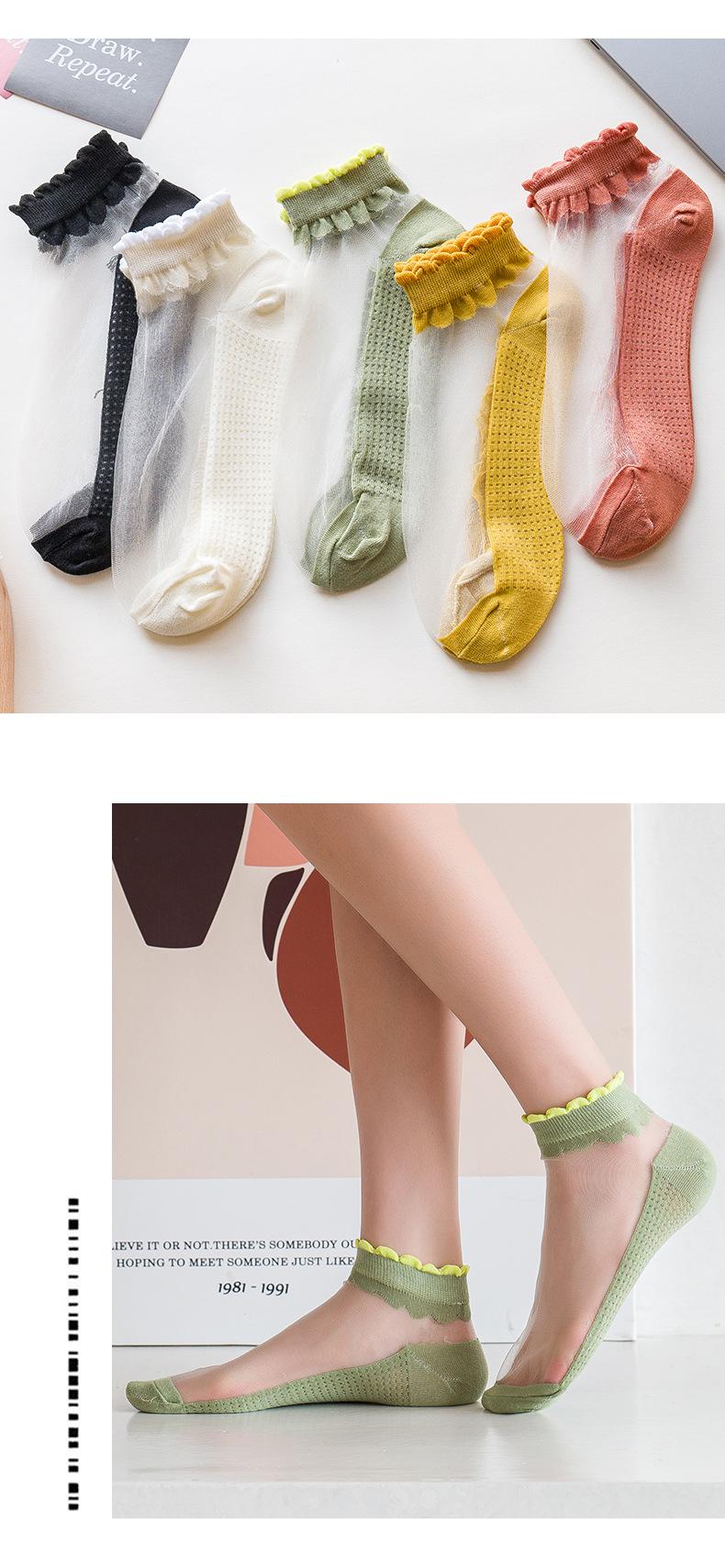 Calcetines de algodón de seda de vidrio de primavera y verano calcetines delgados caqui de moda para mujer calcetines japoneses transpirables transparentes estilo preppy para mujer al por mayor