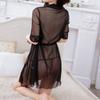 Lencería sexy tentadora para mujer, camisón tipo kimono de encaje de malla transparente, cárdigan de talla grande, pijama sexy, bata de baño para el cabello