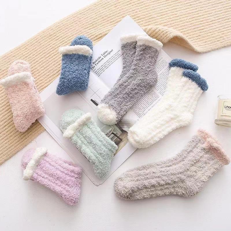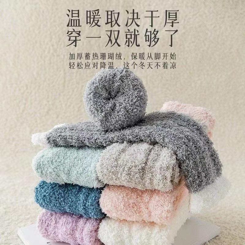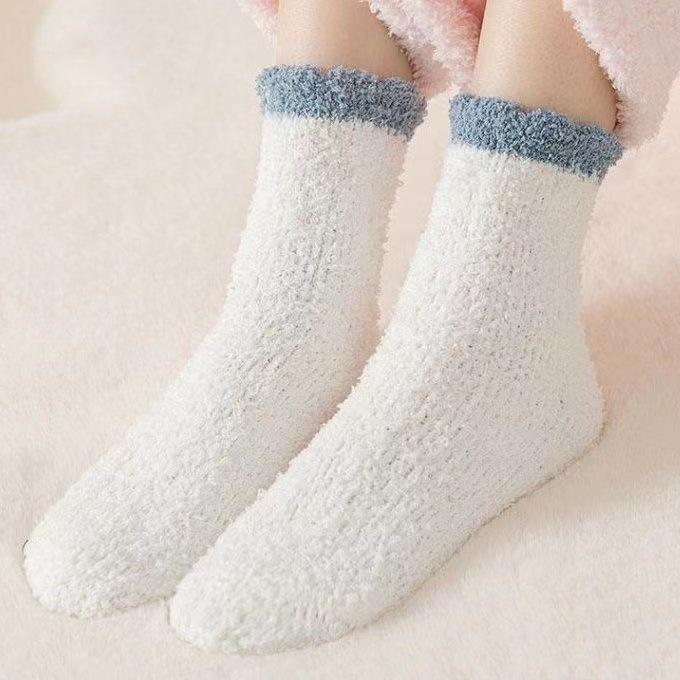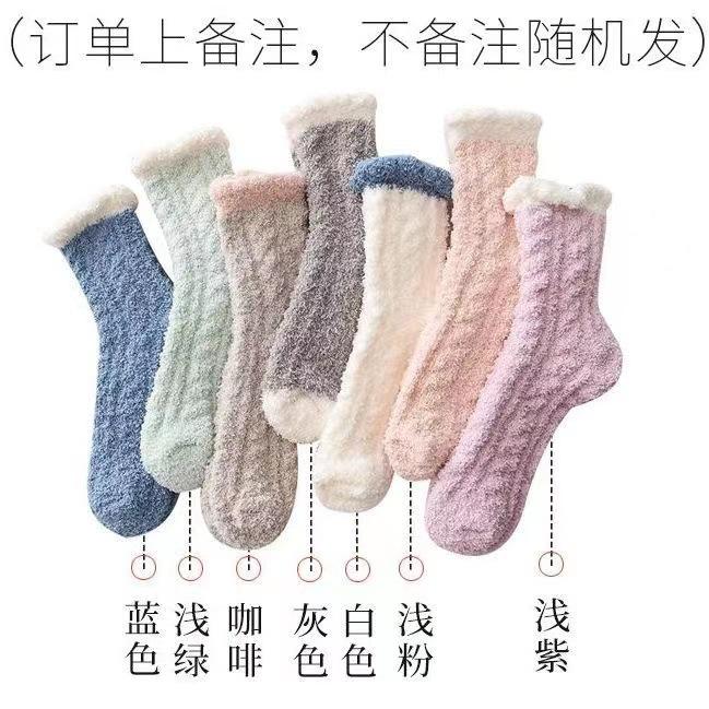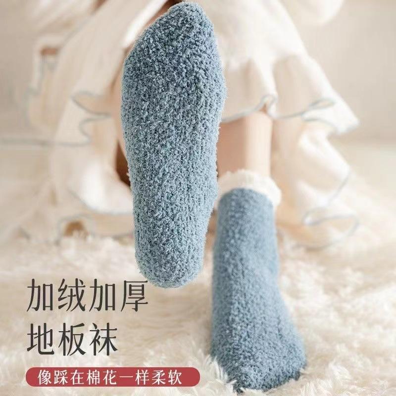 Calcetines Rellenos para Mujer en Otoño e Invierno Cálidos de Terciopelo Coral para Dormir Calcetines Gruesos Antideslizantes para Casa Transpirables para Piso Forrados de Lana