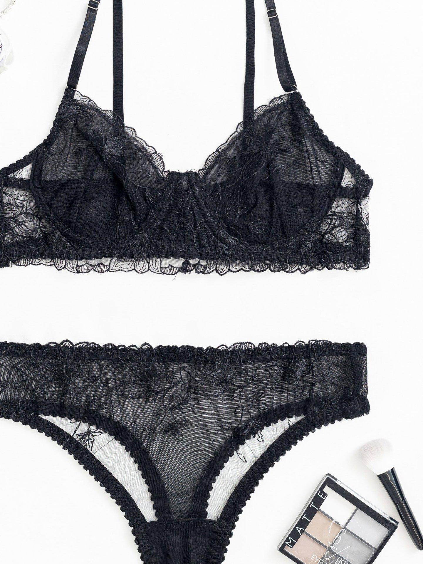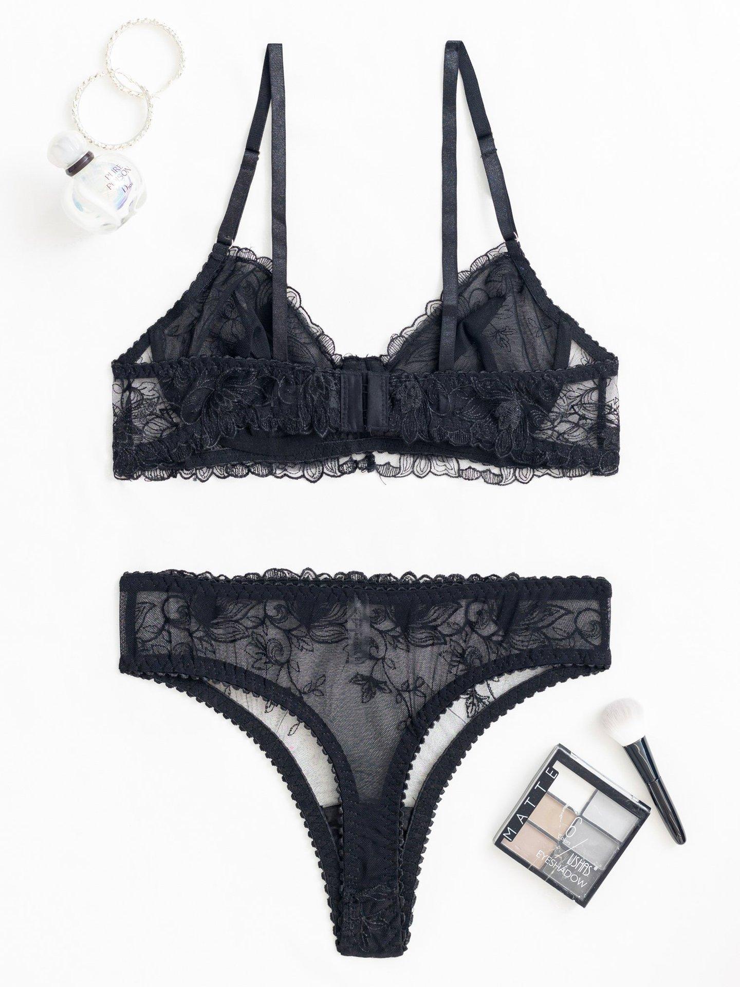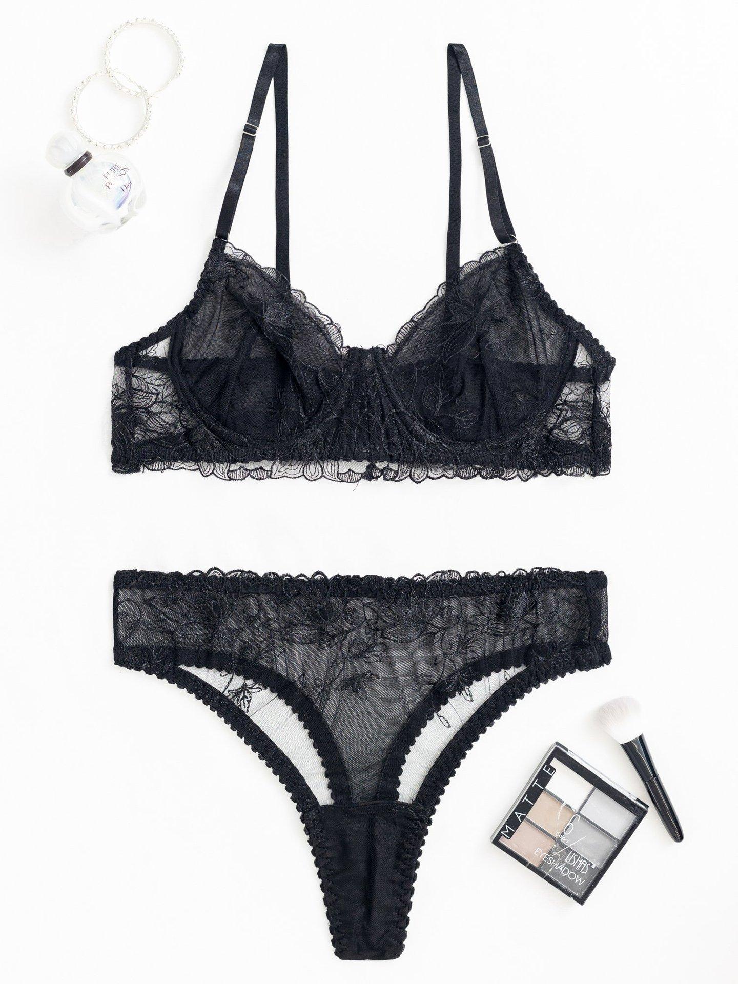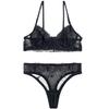 Conjunto de dos piezas de sujetador y tanga con perspectiva de malla de encaje bordado sexy europeo y americano transfronterizo, ropa interior sexy francesa