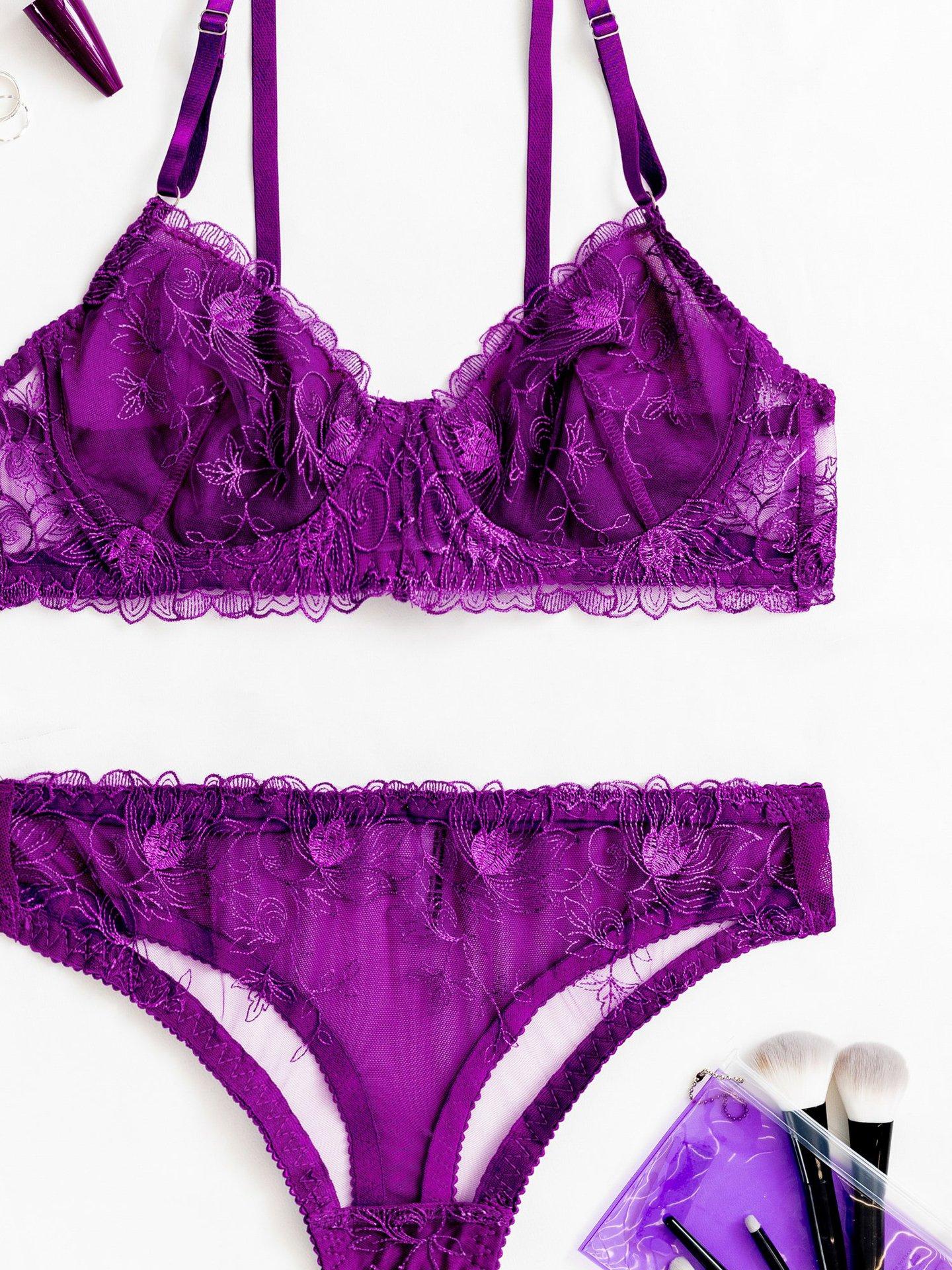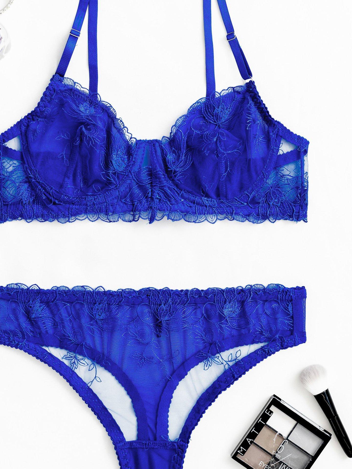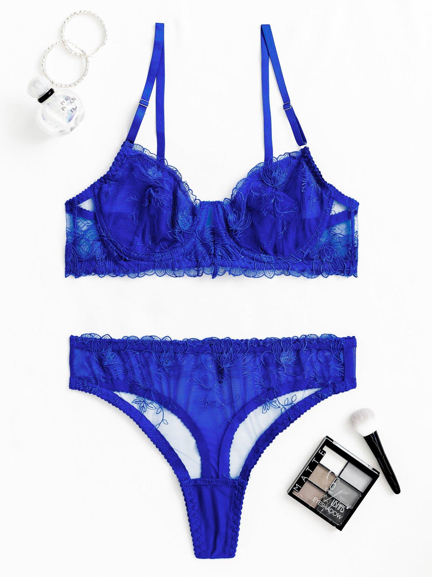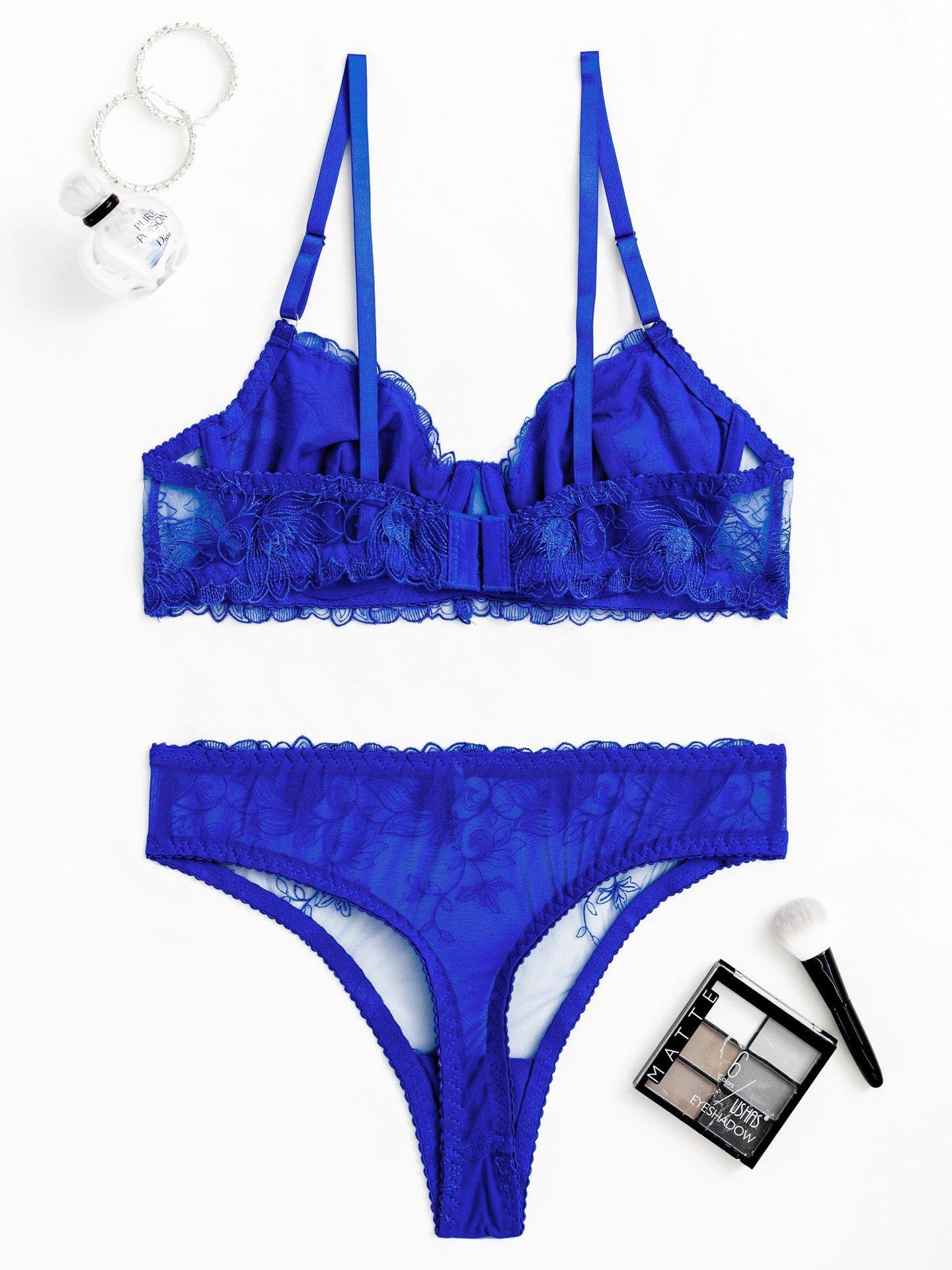 Conjunto de dos piezas de sujetador y tanga con perspectiva de malla de encaje bordado sexy europeo y americano transfronterizo, ropa interior sexy francesa