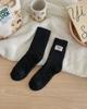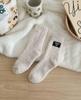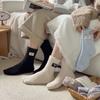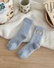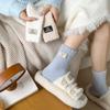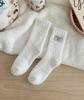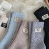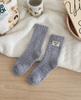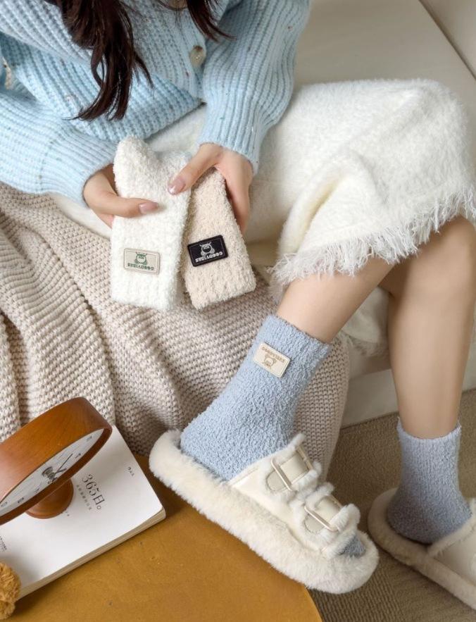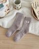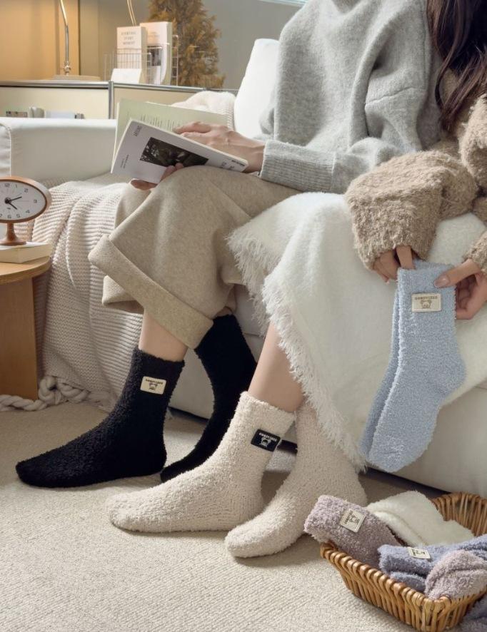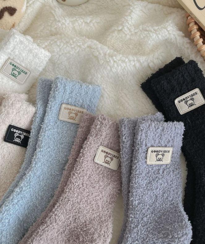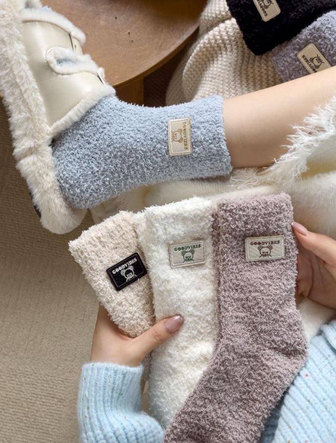 Calcetines de lana coral de tubo medio para mujer, calcetines con etiquetas de oso y forro polar, calcetines para el hogar, calcetines gruesos y cálidos para mujer, otoño e invierno.